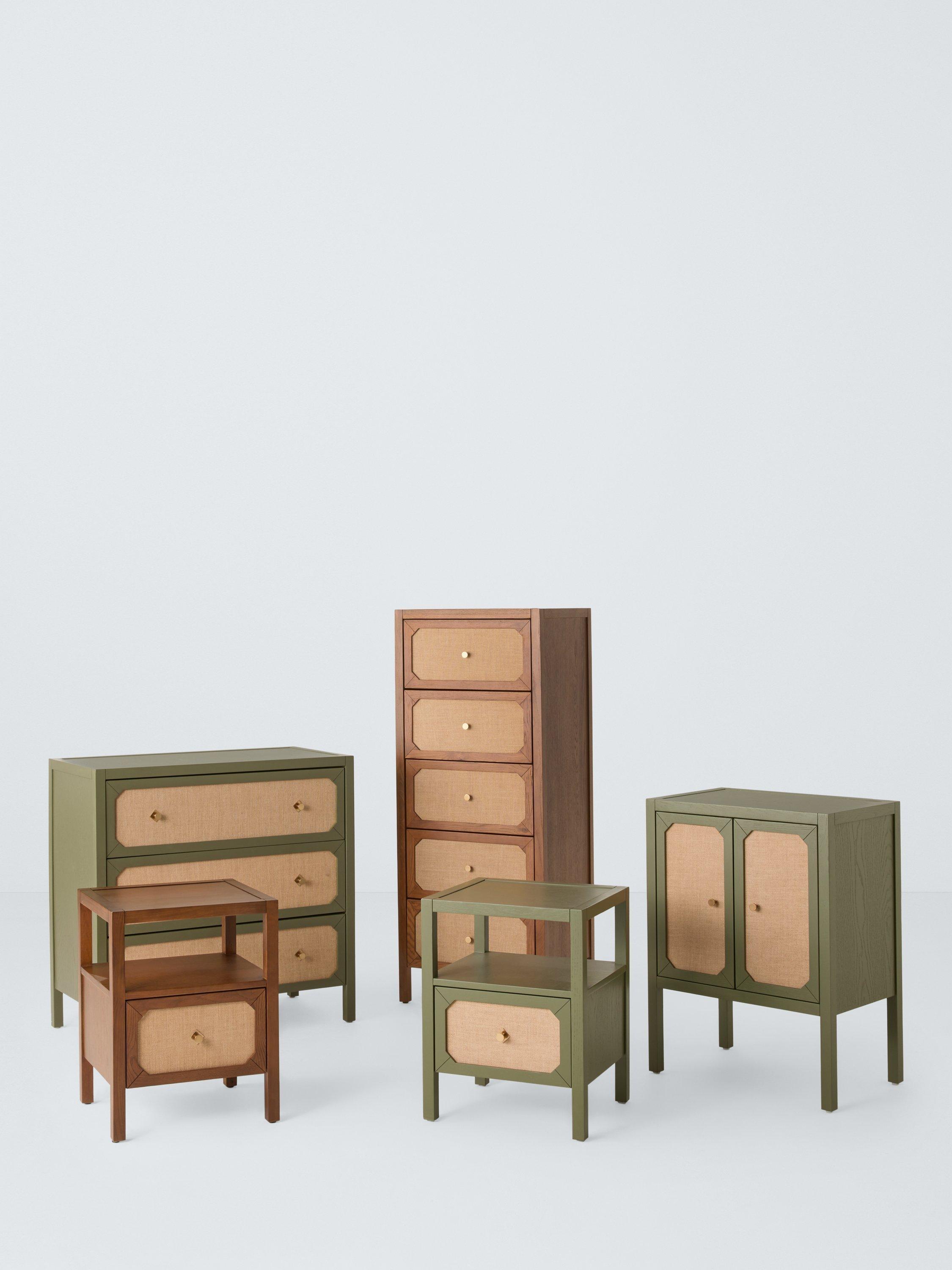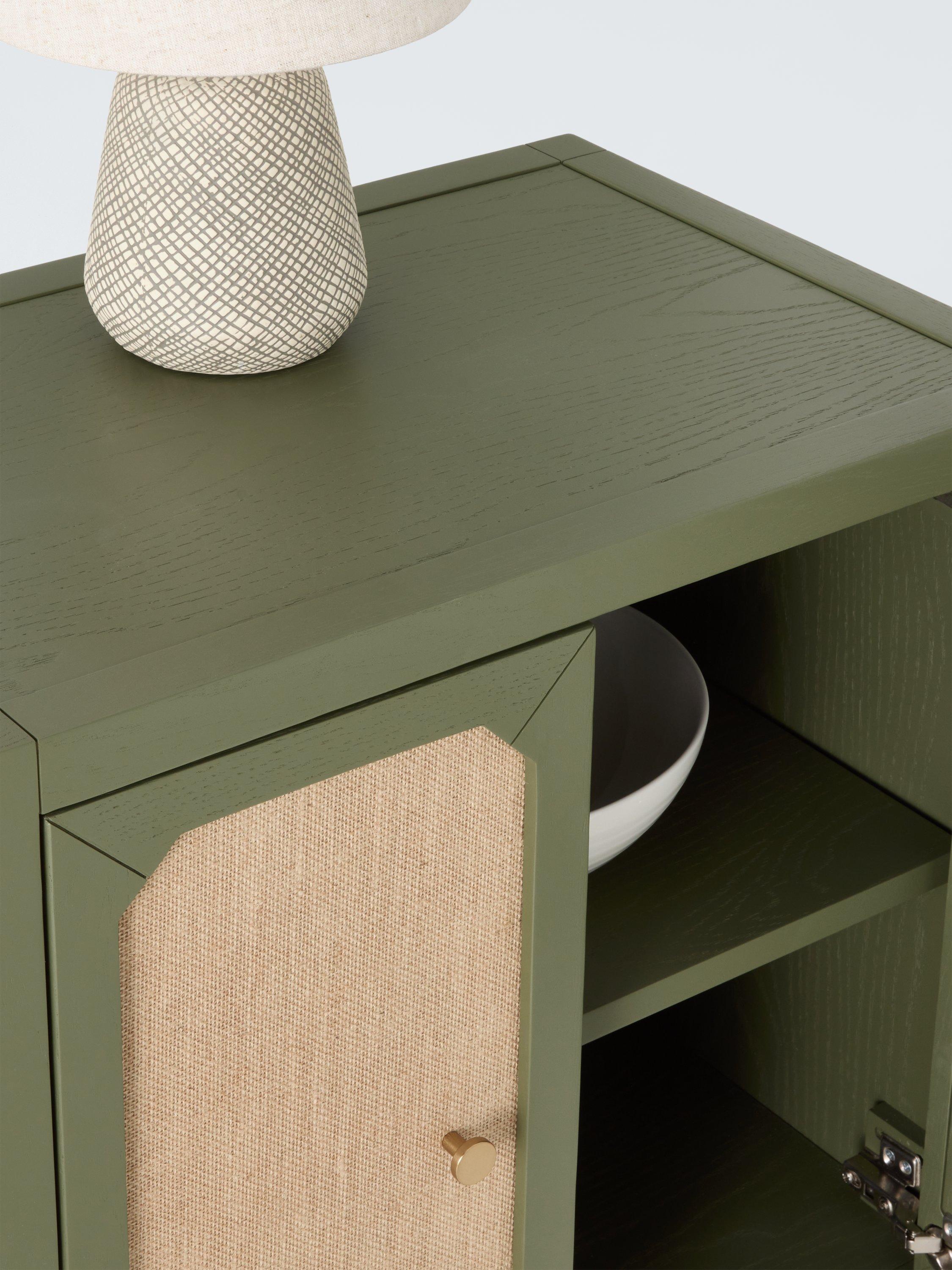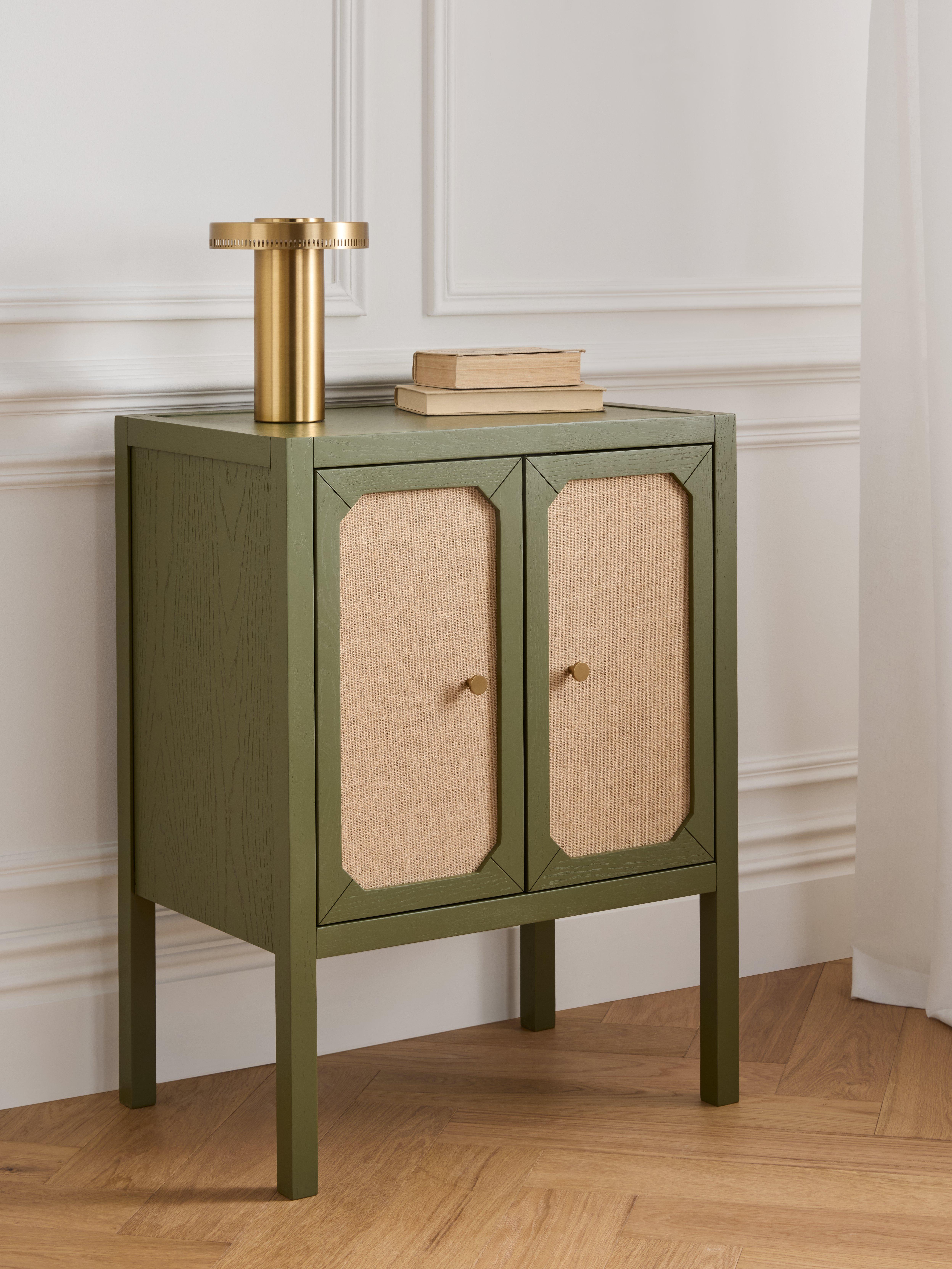 When you're looking for furniture that's more than just practical, but also adds character and charm to your space - our Hetti range meets the brief. This storage cabinet is built from a mix of hard-wearing timbers, including oak, with statement hessian-fronted doors that add texture and warmth. There's also a shelf inside so you can keep your items organised. Elegant, adventurous, yet sophisticated, you can style this distinctive cabinet in a bedroom or living room.