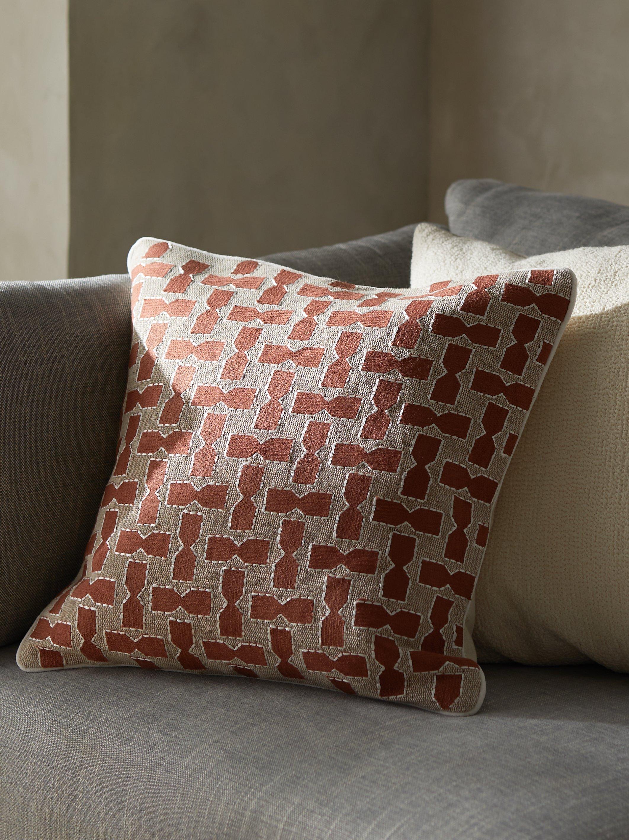 We love a nice-looking cushion as much as the next department store, but for when bottoms and backs meet seats, you really can't compromise on CONSCIOUSLY CRAFTED comfort. That's why our embroidered Hew cushion has a generous feather filling for comfortable support.