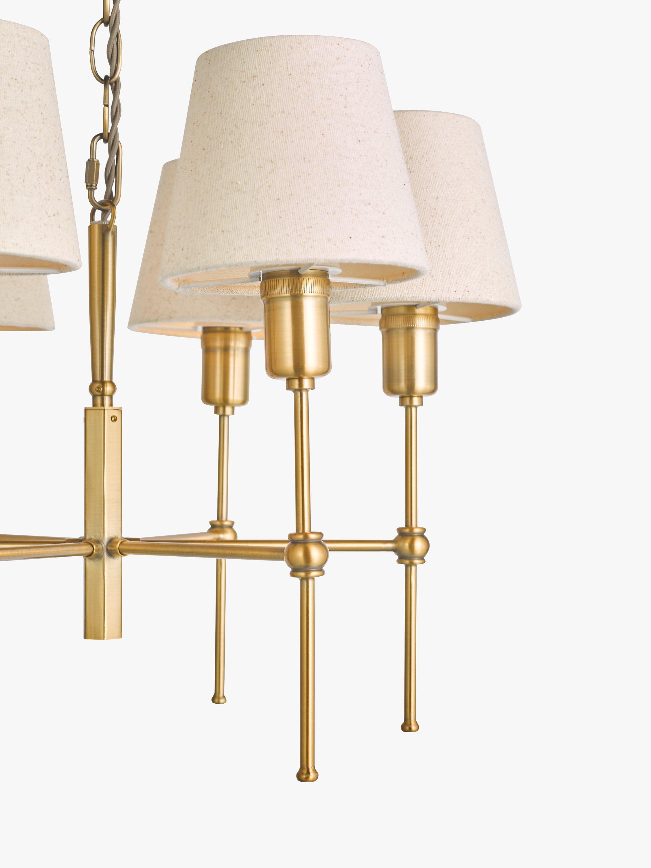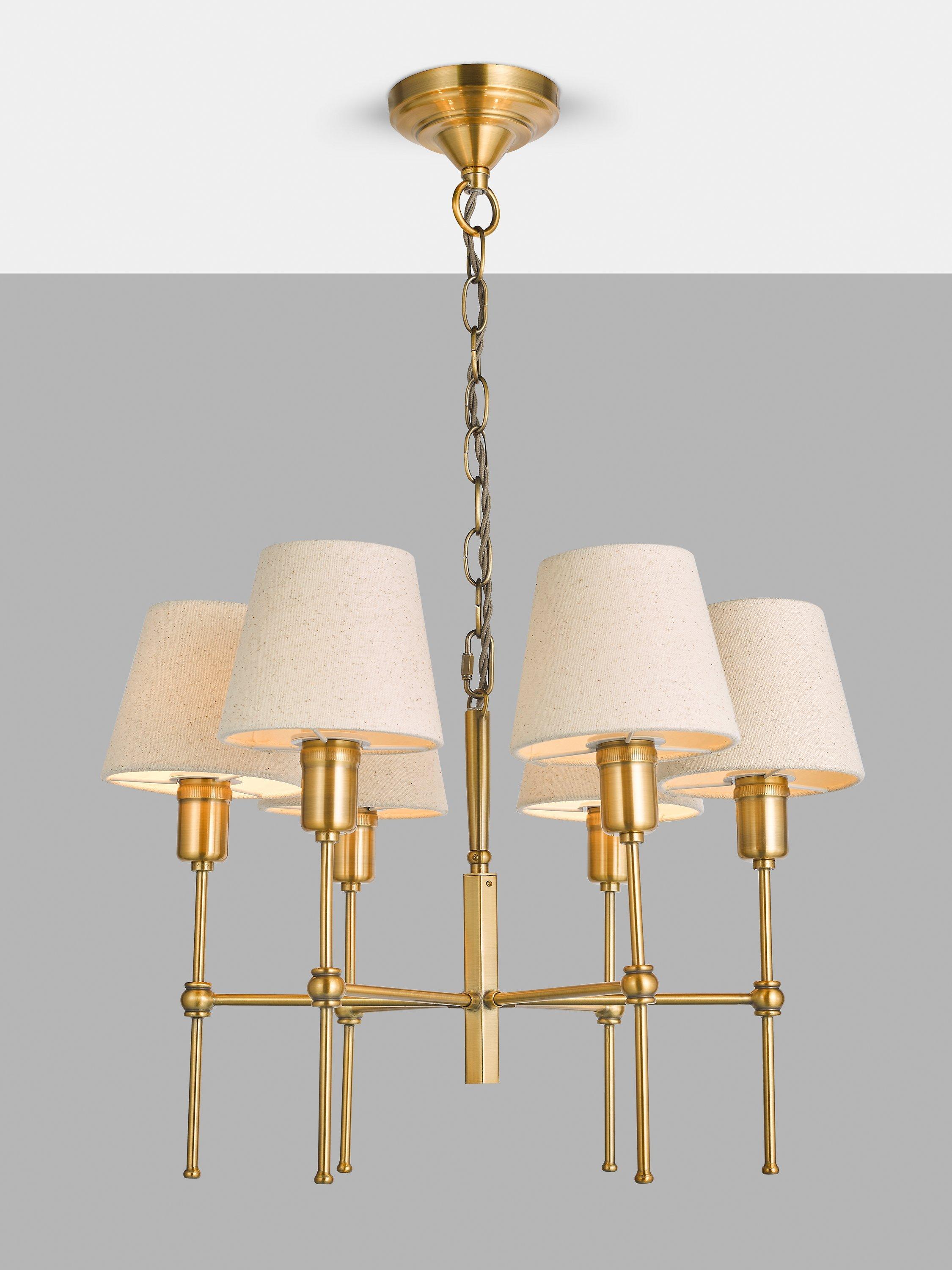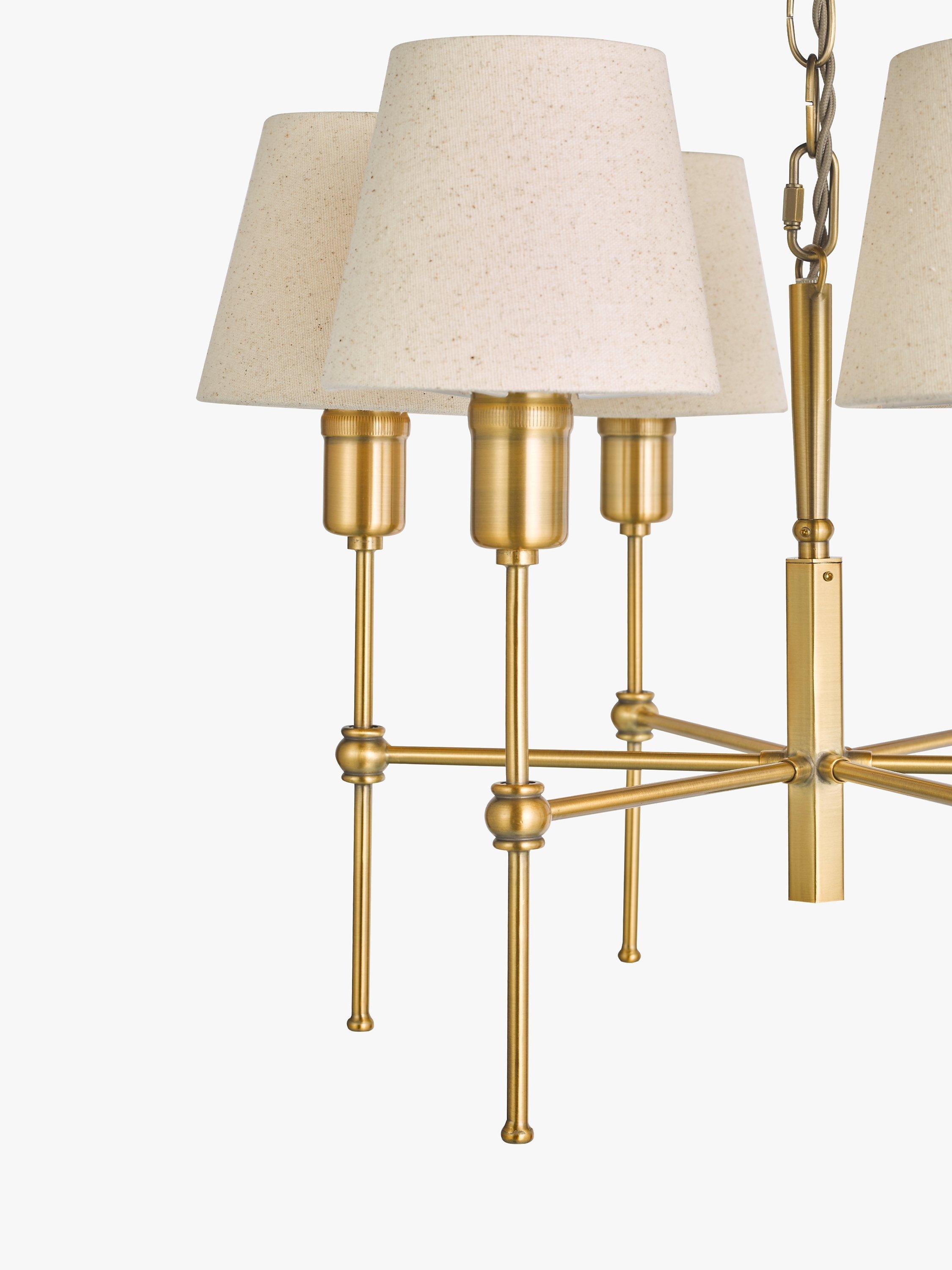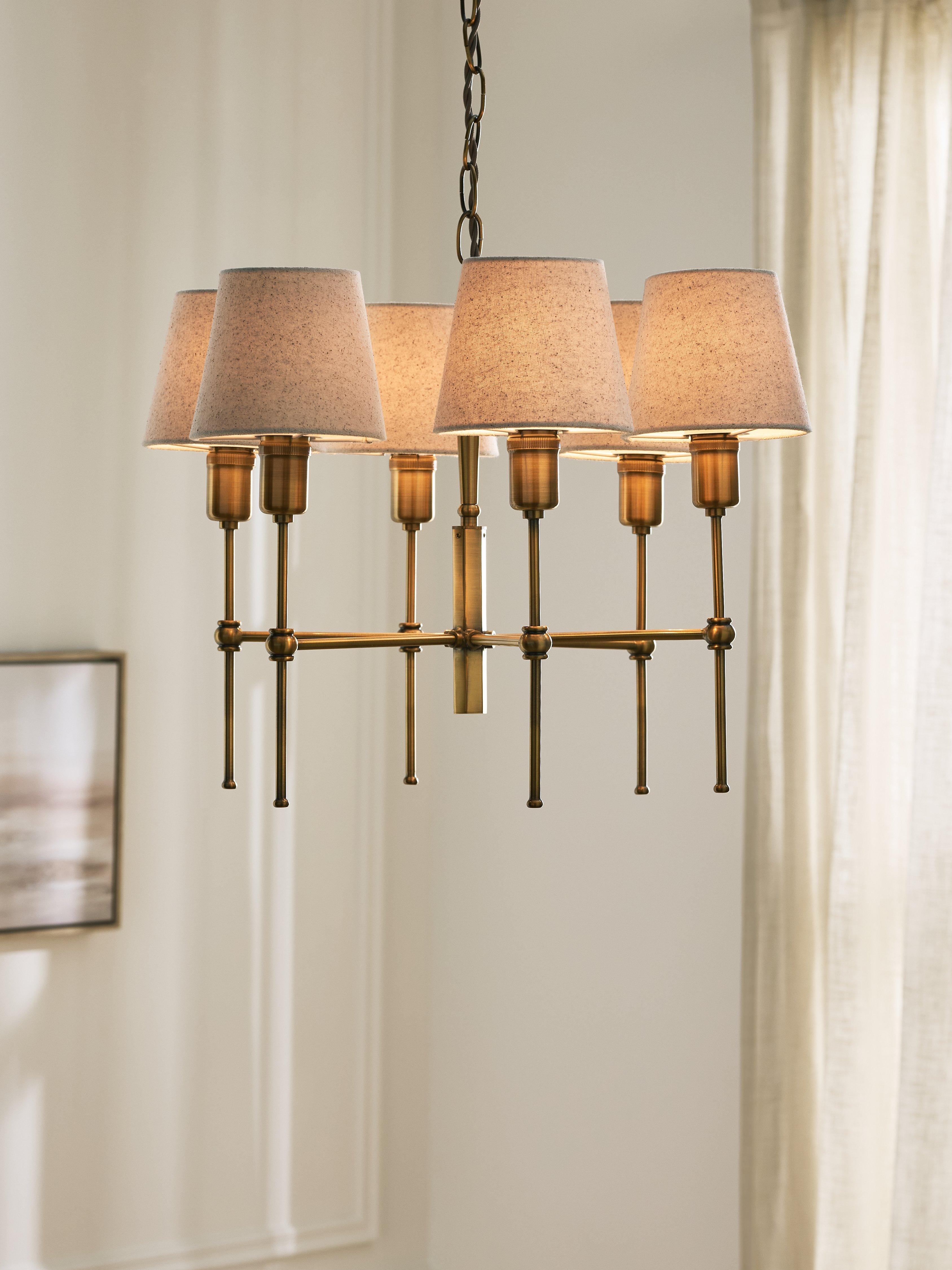 The Hex Pendant fuses retro Art Deco styling with a classical, timeless feel to uplift any home. Finished with a mix of matte antique brass metalwork and oatmeal linen fabric shades, the lotus lantern is a lovely focal point that can be adjusted to any height.