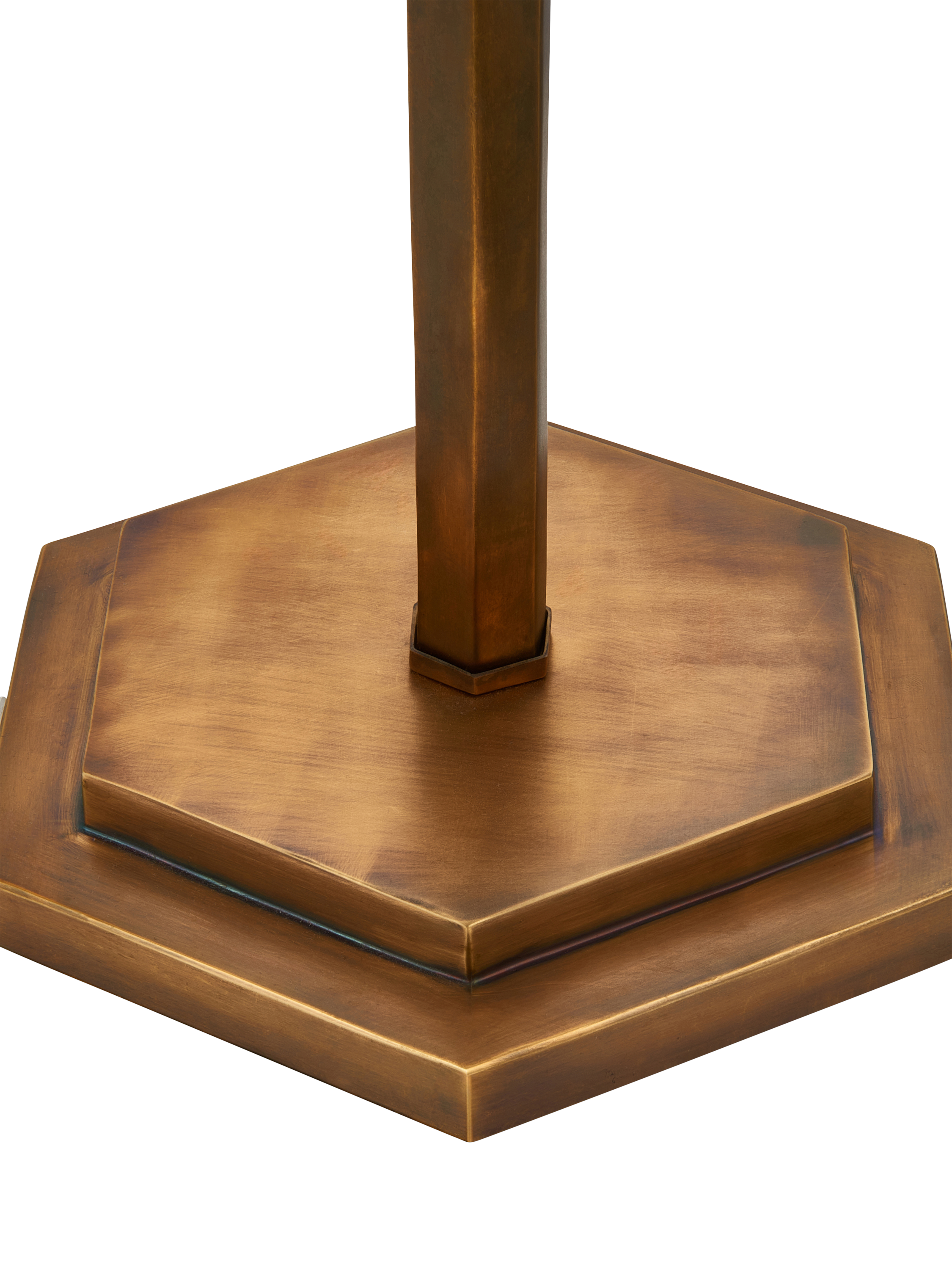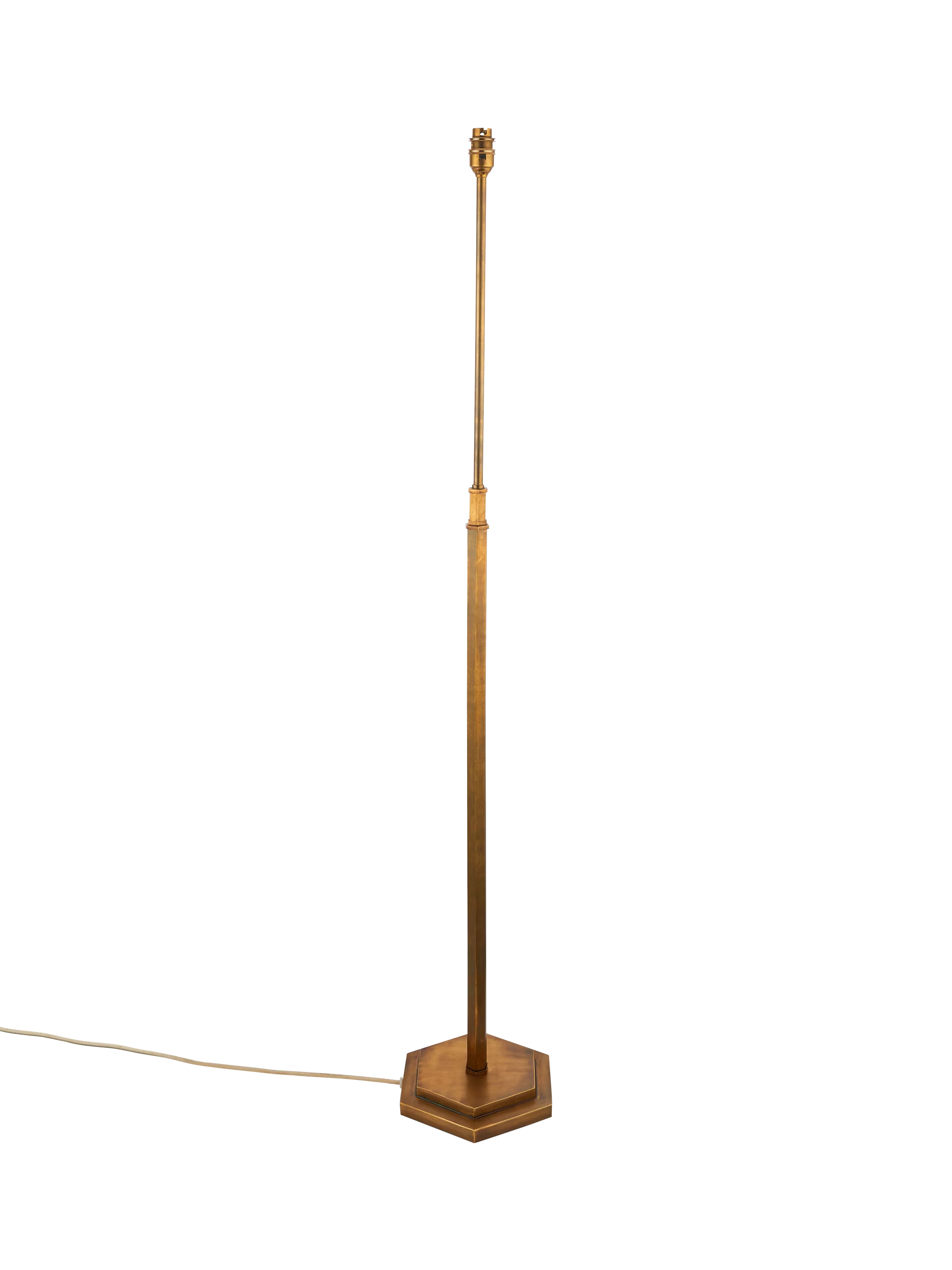 Hex, as in 'hexagon'. We spent more time on the design than the name! The eponymous base and column forms give a stately elegance to this base-only floor lamp. Pair with our range of shades for an eclectic 'maximalist' look. It's made in India which ensures a beautifully hand-finished product.