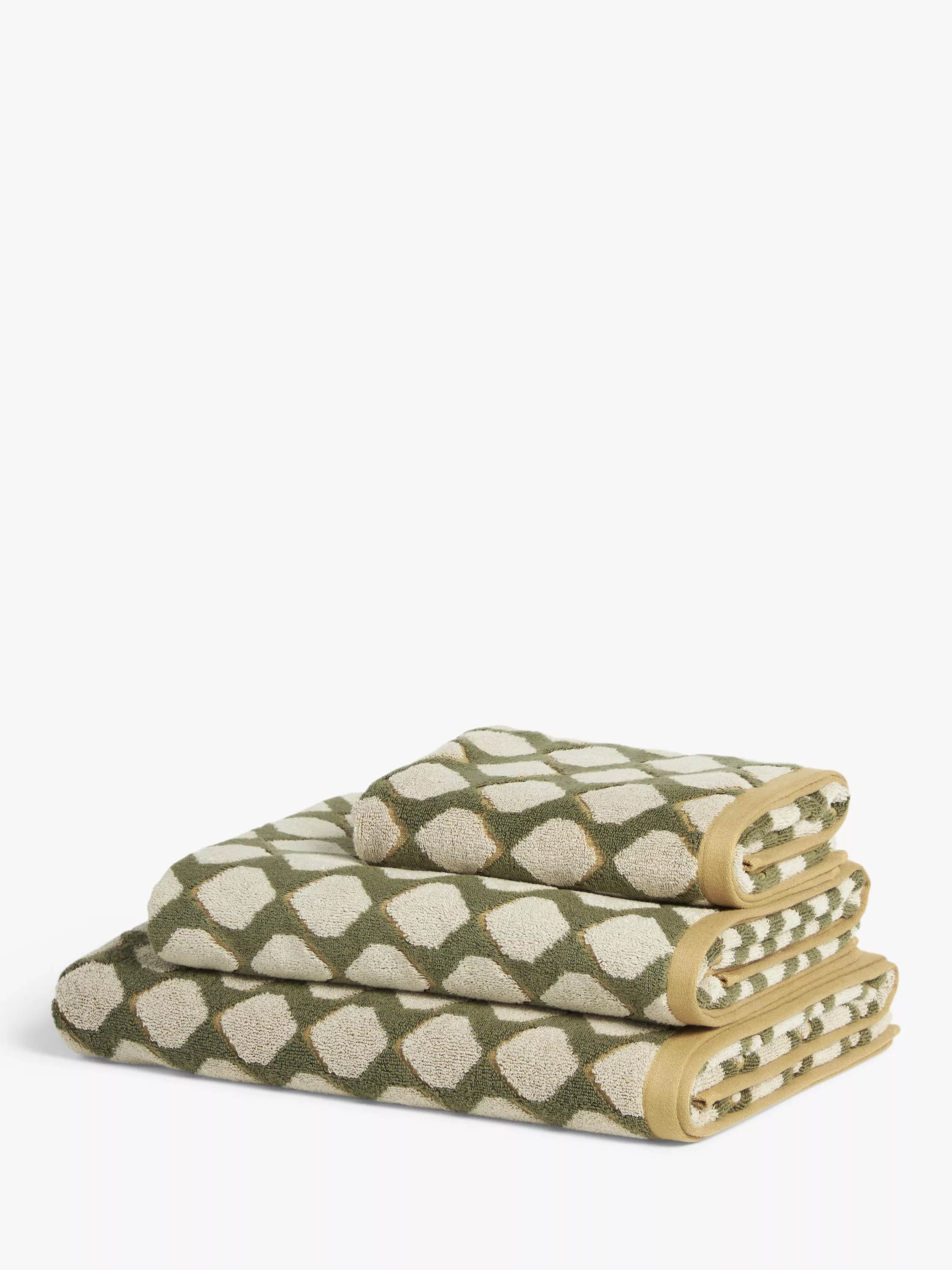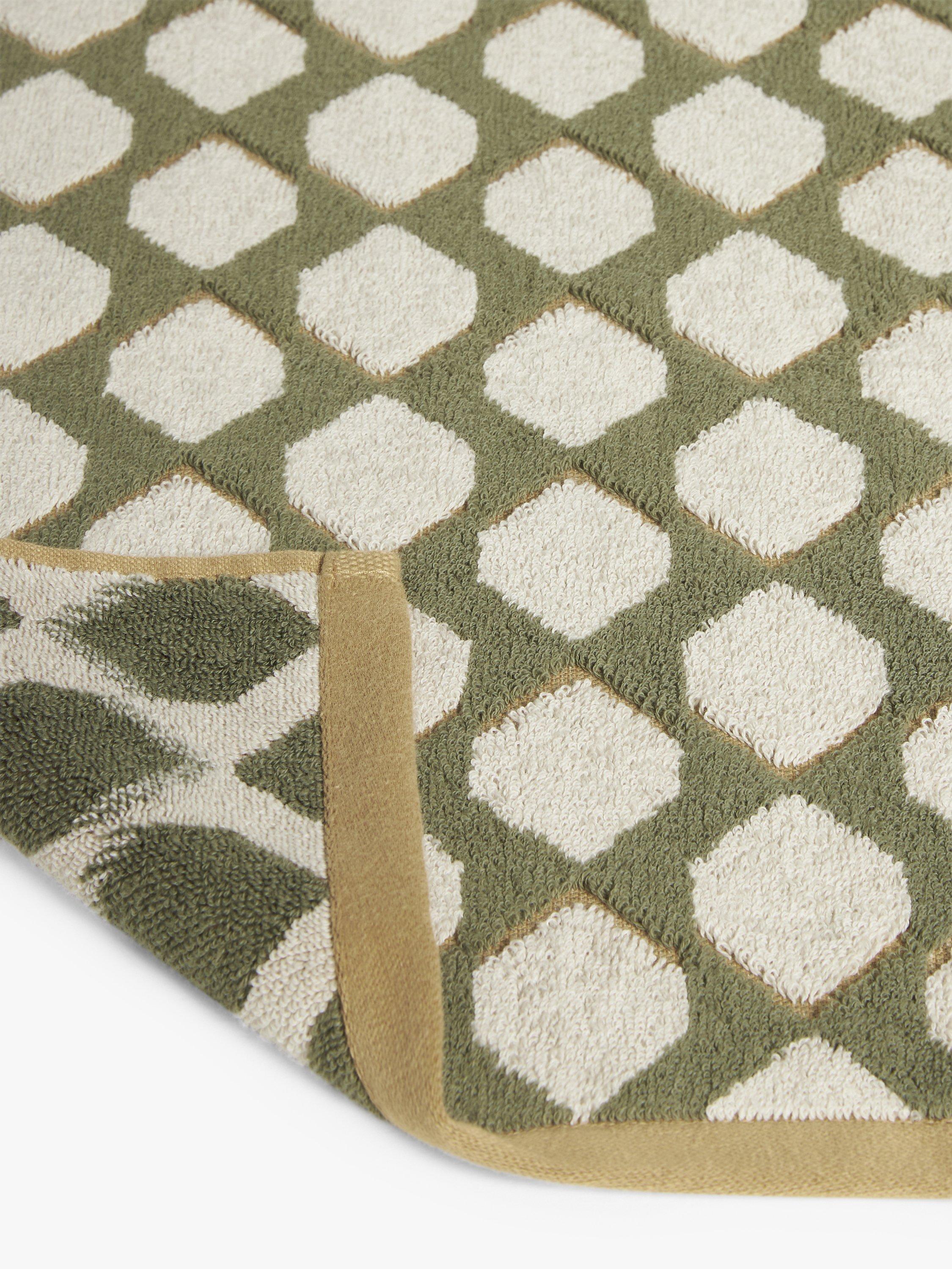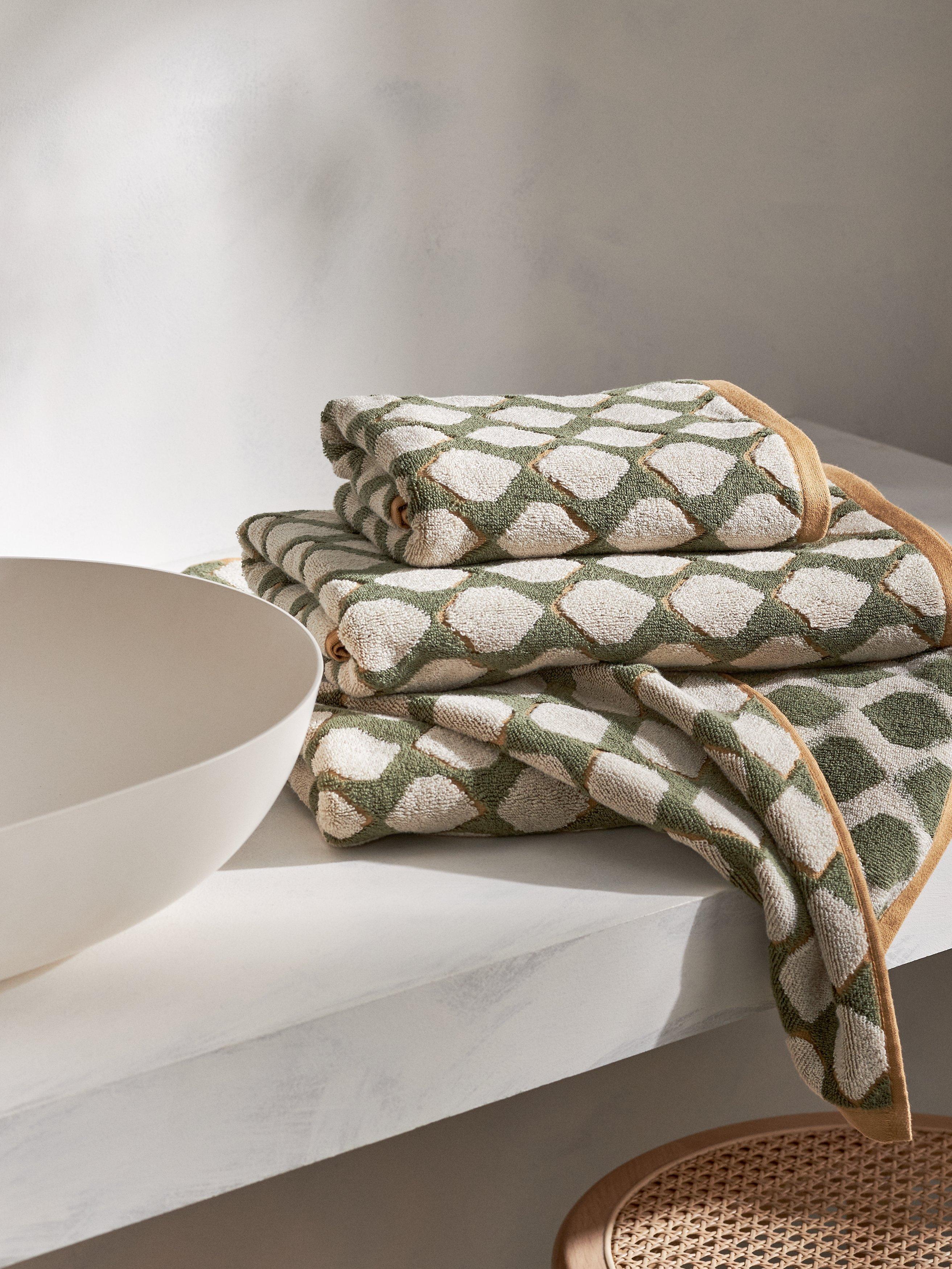 The Jacquard finish of these towels enhances the hexagonal pattern for a 3D look.