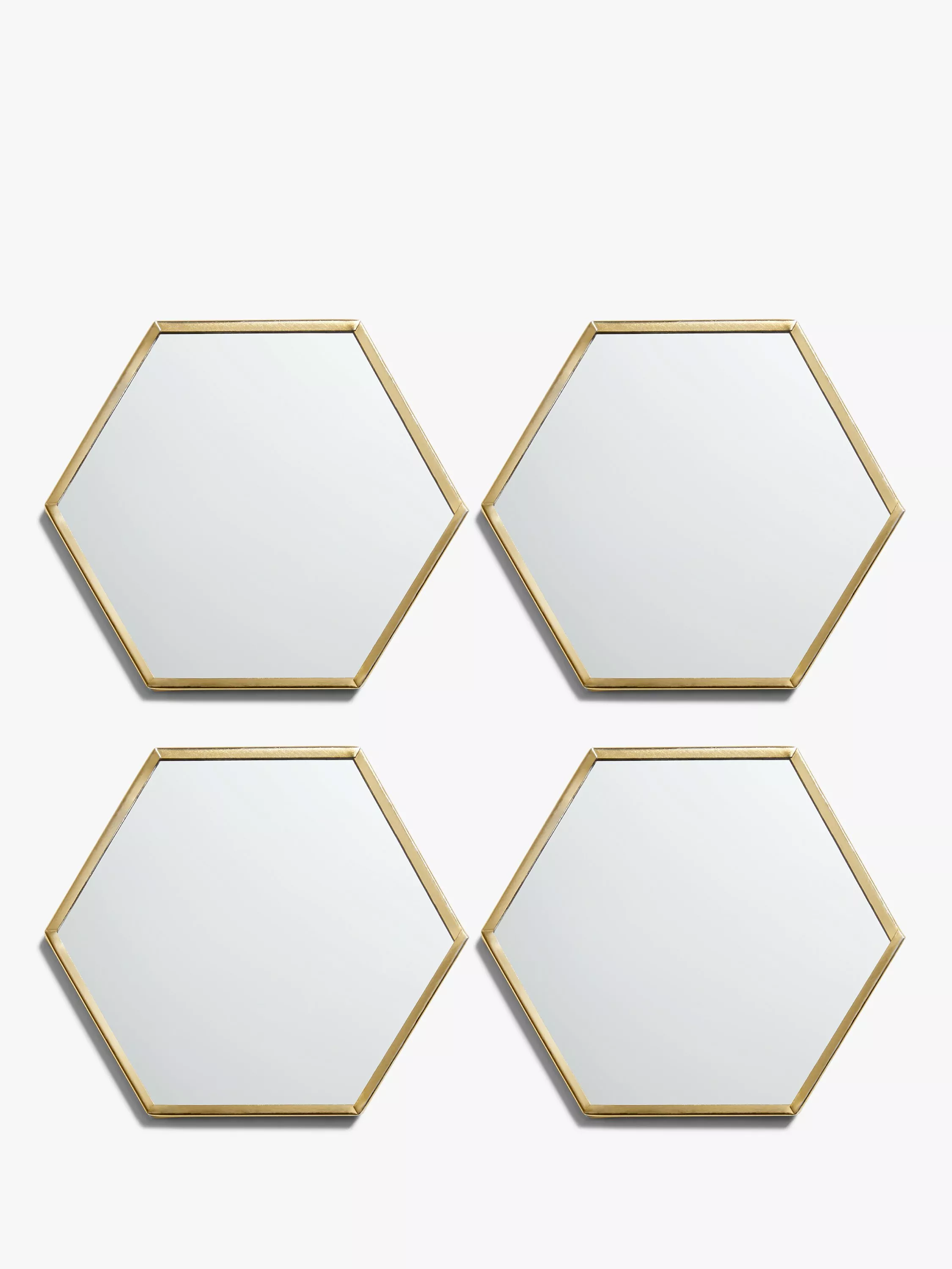 This set of four hexagonal coasters have a mirrored base edged in brass. Ideal for protecting your table from drinks, they evoke Art Deco glamour with their shape and metallic finish.