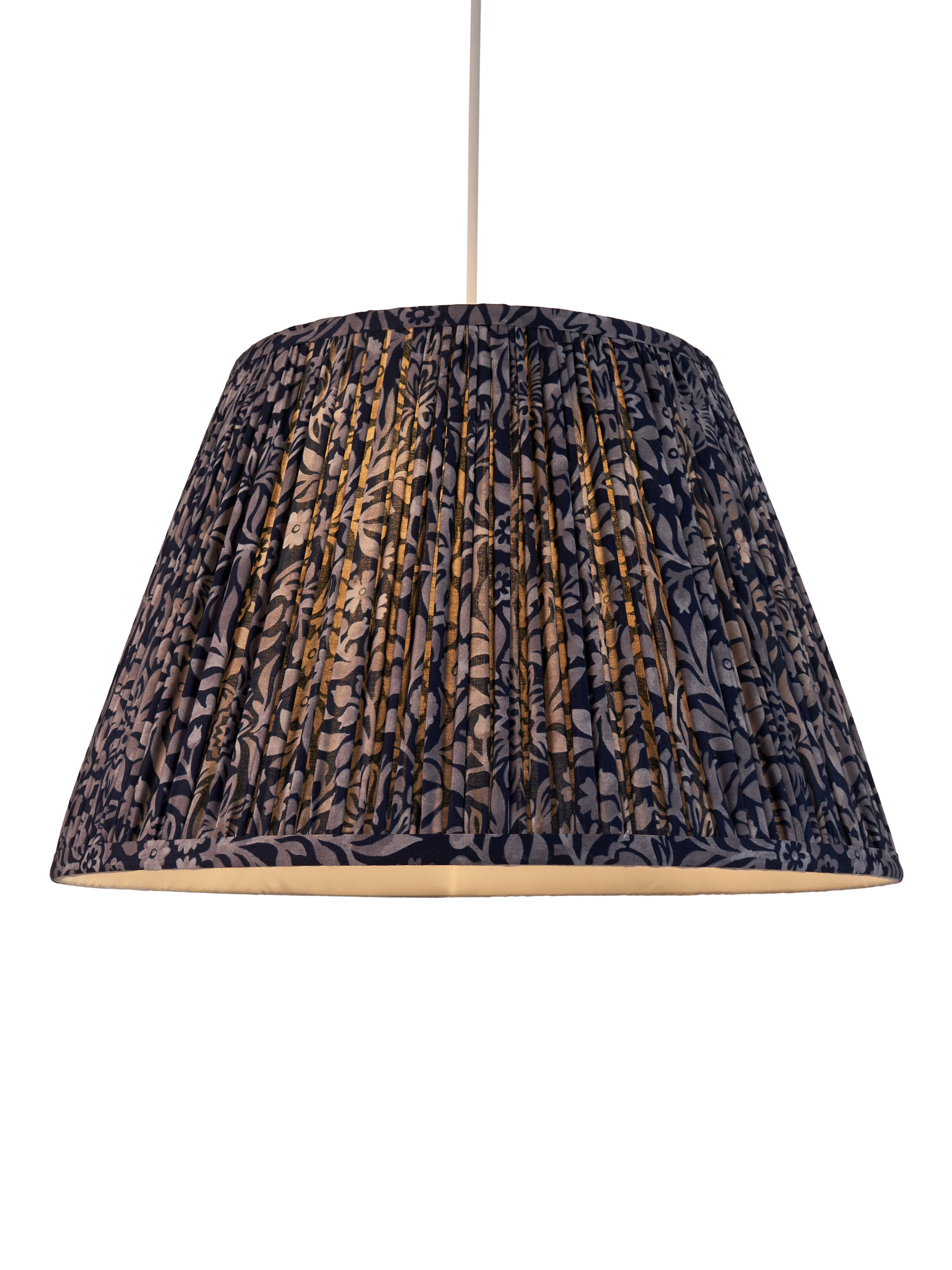 Gathered and pleated, our Hidcote lampshade adds texture and pattern to your space. Made from a faux-silk fabric, the soft texture brings out the pattern when lit. Digitally printed, the floral pattern comes from a John Lewis Partnership Archives print from the late nineteenth century.