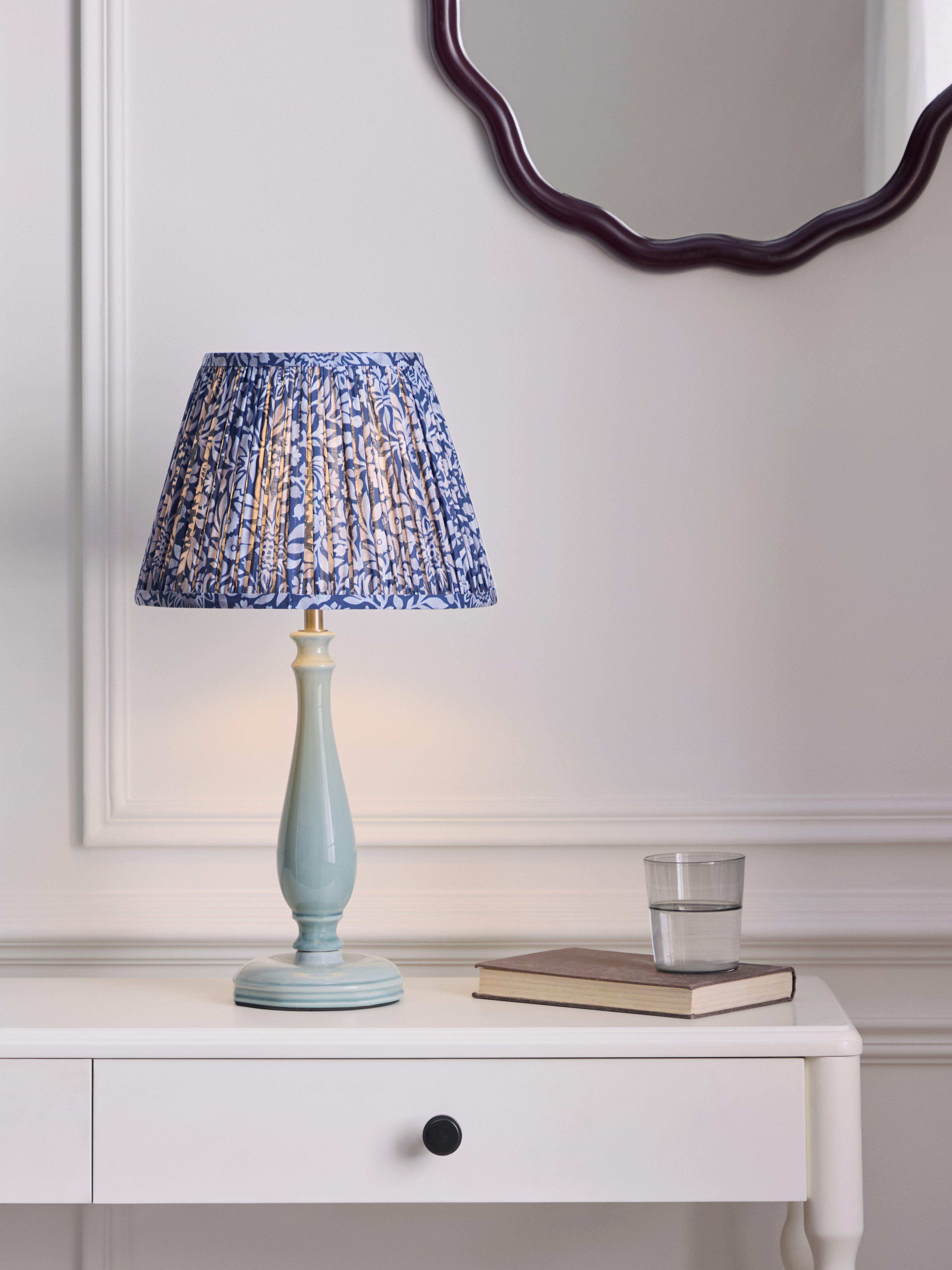 Our straight-sided or drum lampshades are well-paired with modern lamp bases, while tapered lampshades work well with classic-style bases. You can shop our range of lamp bases