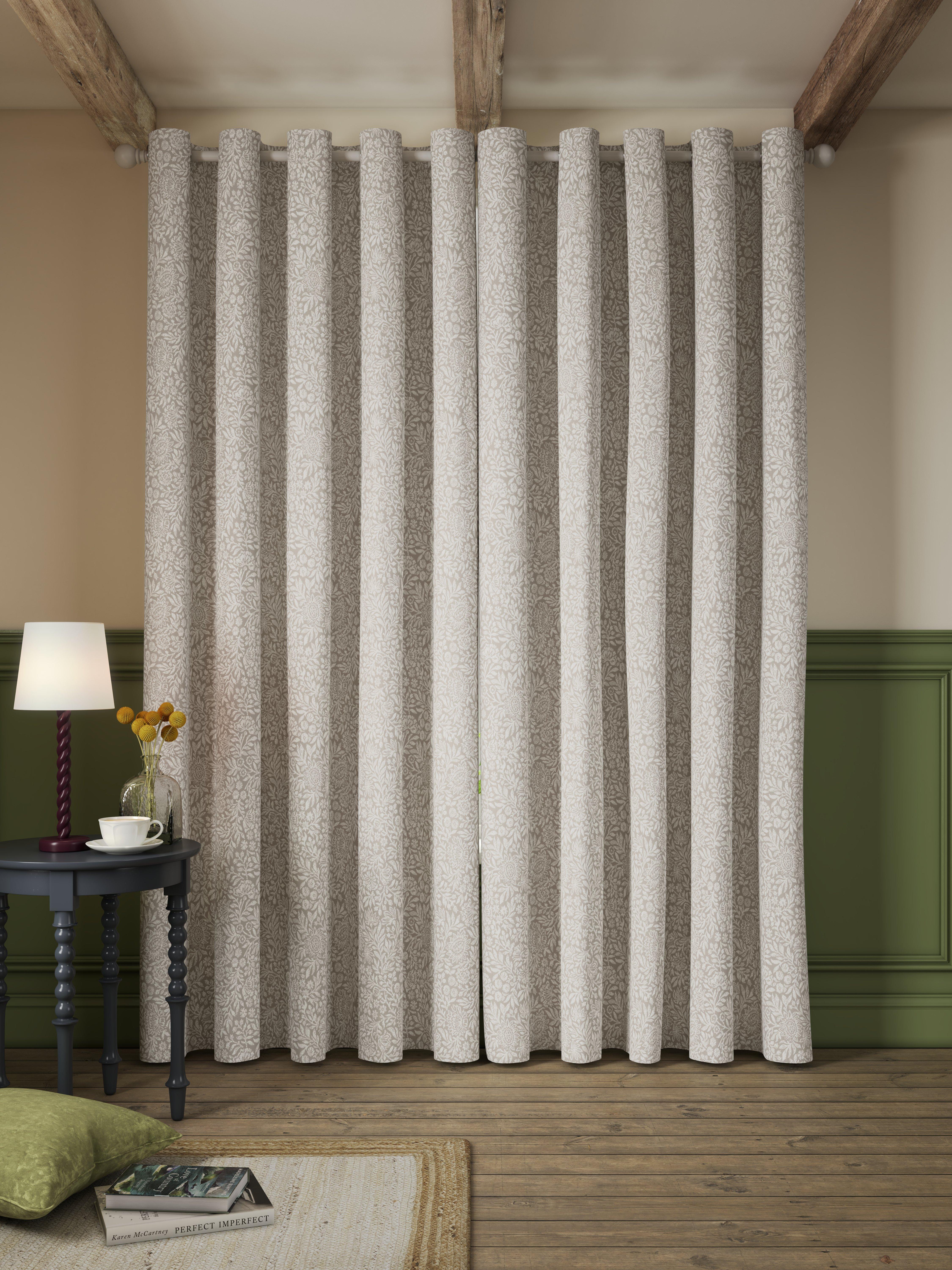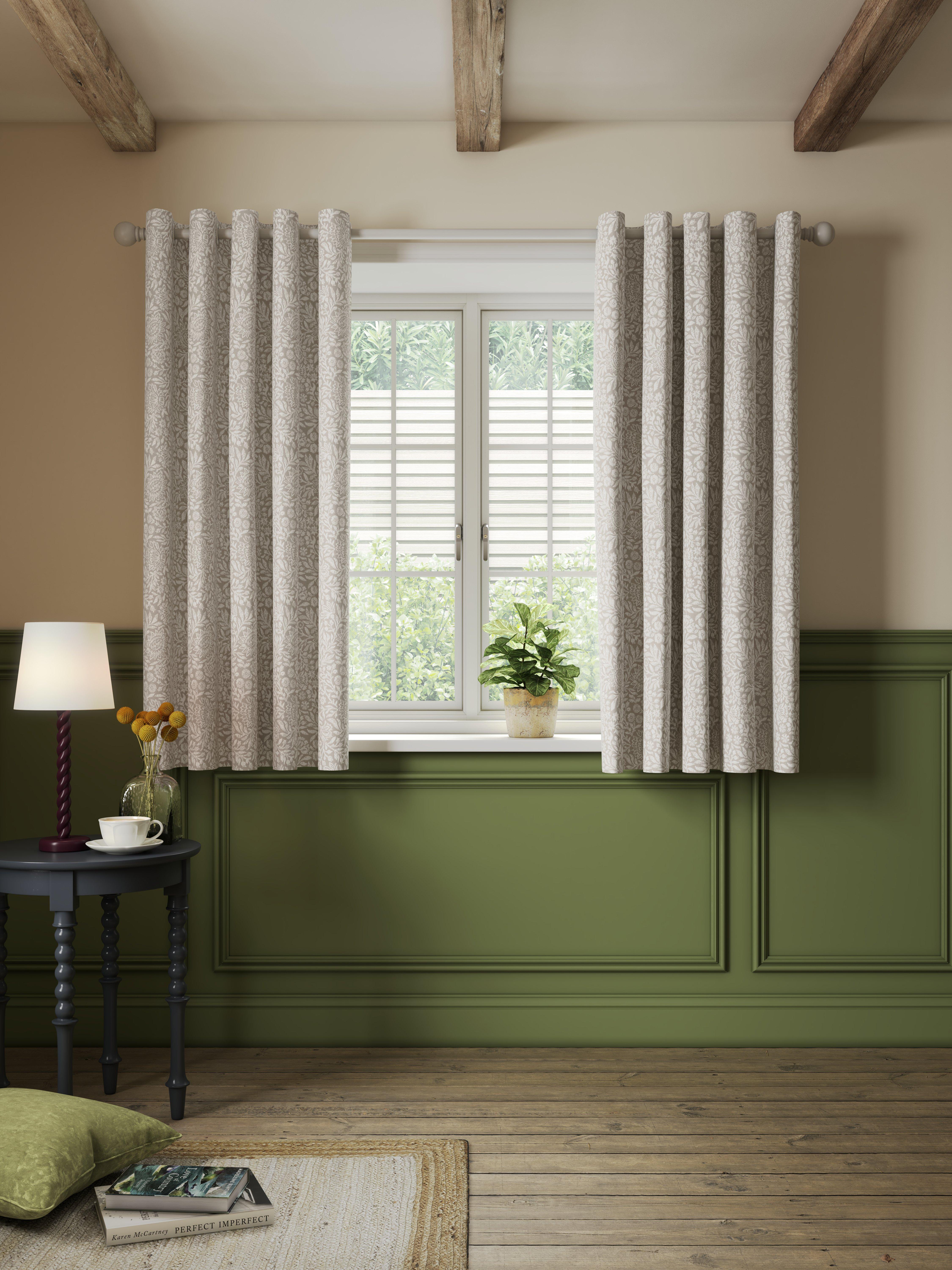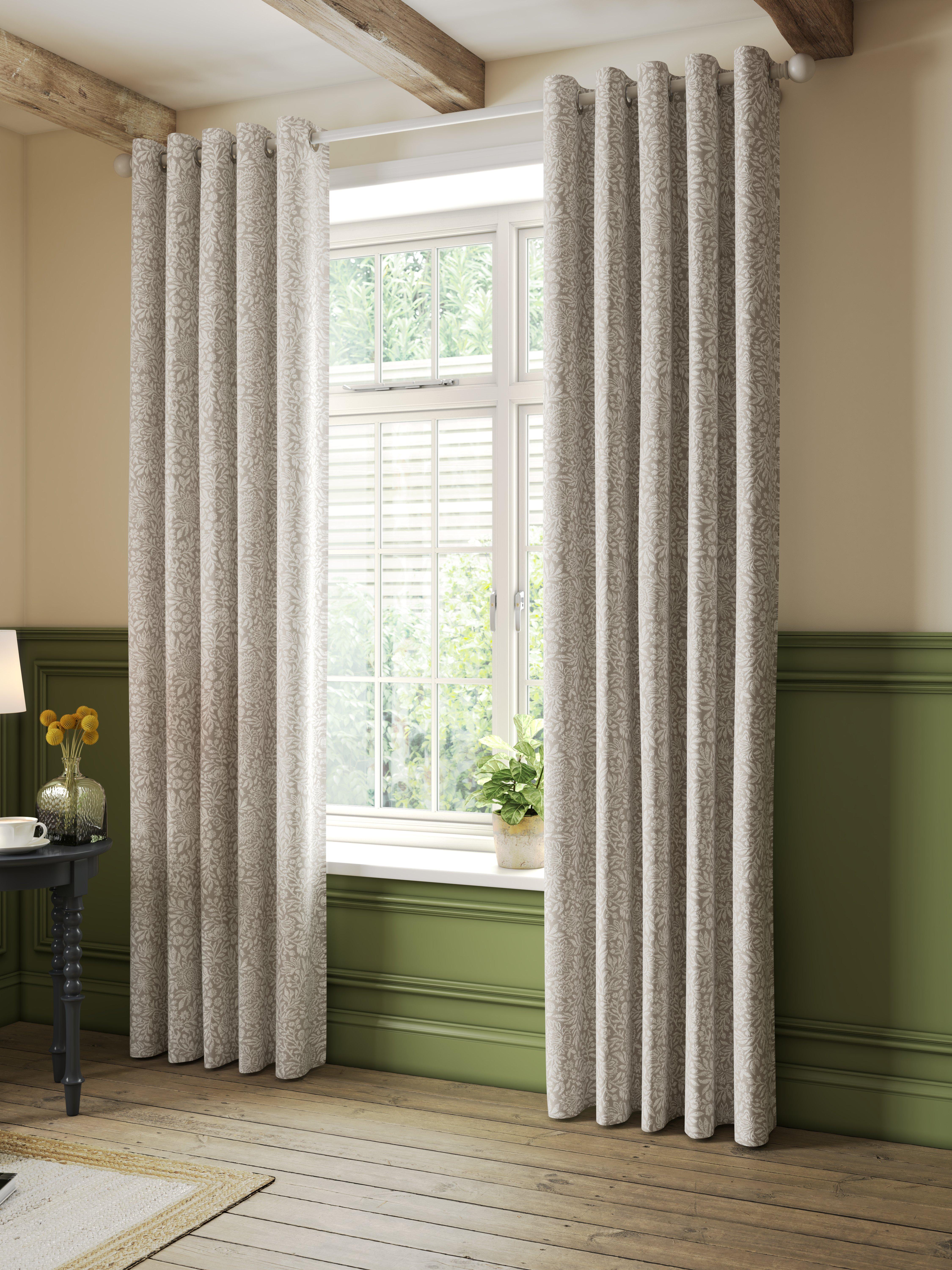 Ready made curtains with eyelet header, fully lined with a daylight lining.