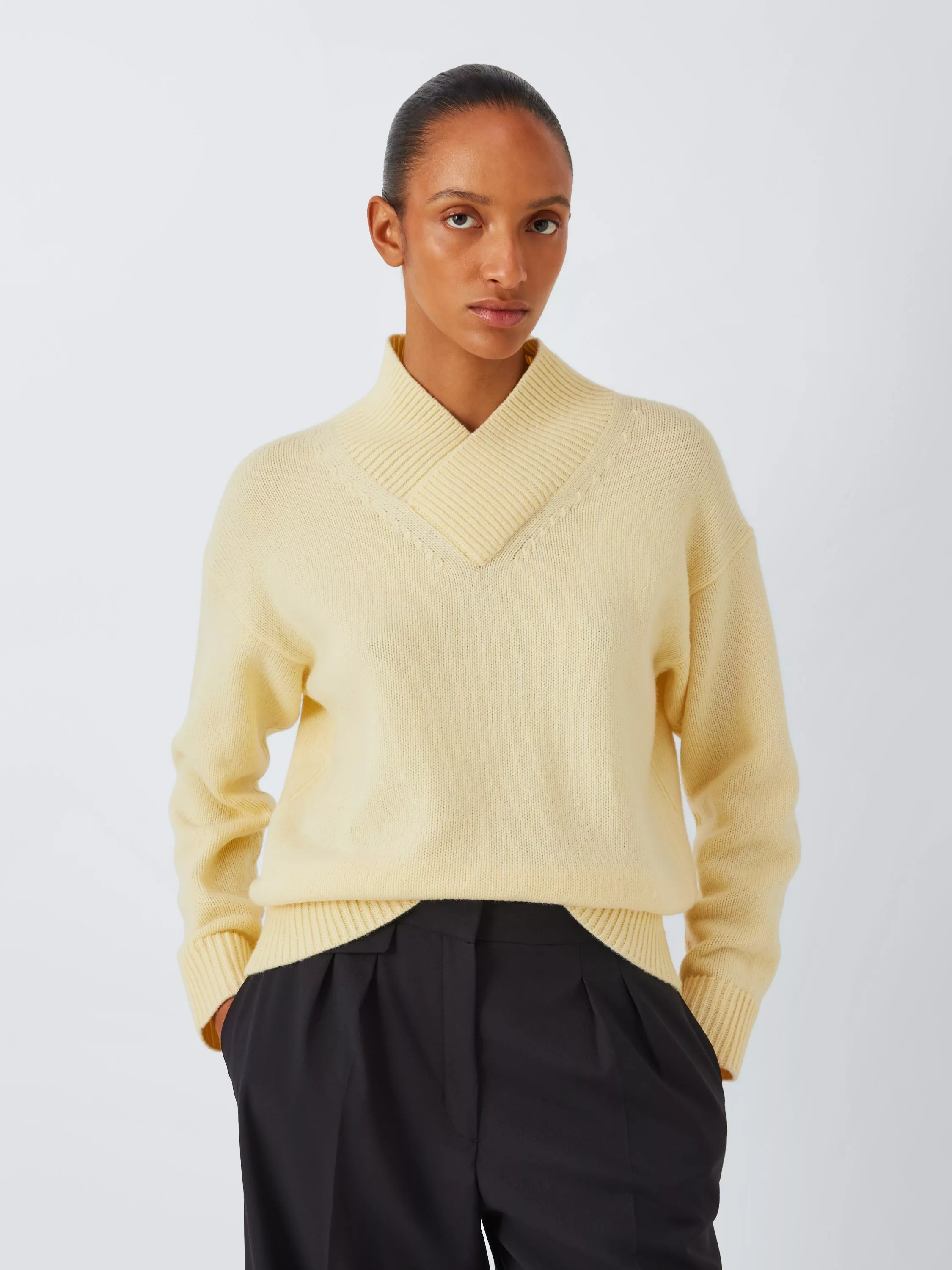 A wool-blend jumper with a style update. Made with a cosy high neck and a v-style cross-over design in a ribbed knit, along with ribbed cuffs and hem.