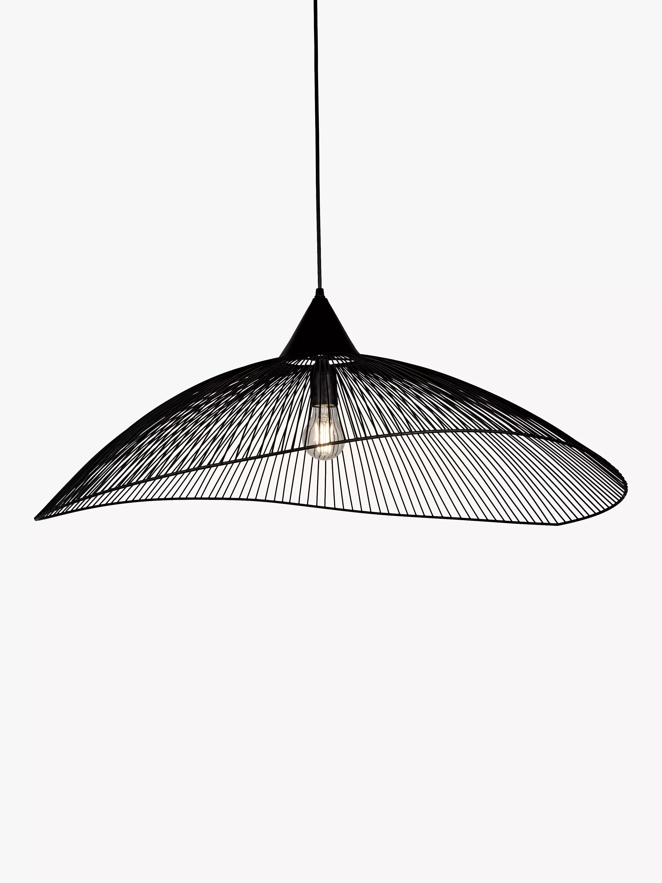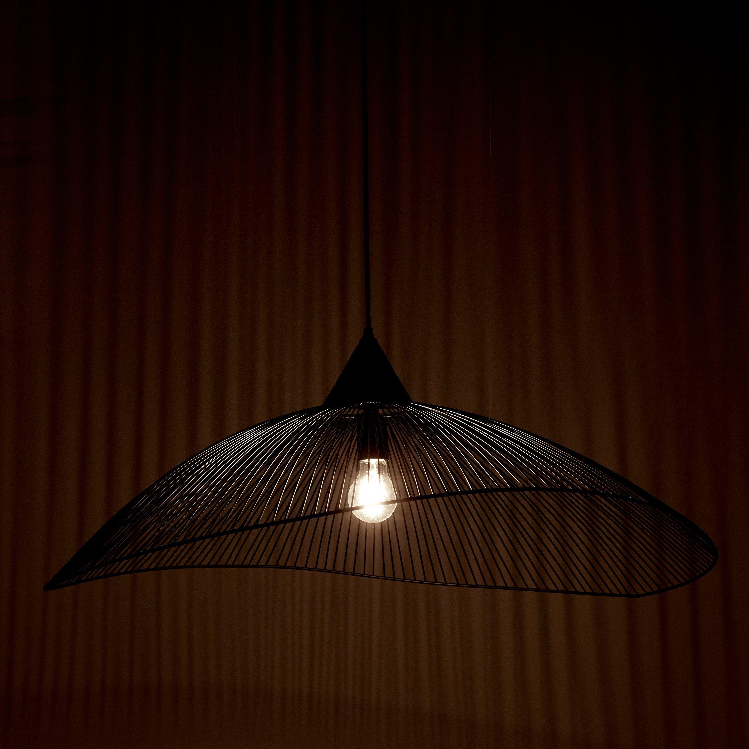 Our easy to install, large Hiko ceiling light has a striking, contemporary feel. Made from metal threads, the uneven profile enhances its curved, floating aesthetic. Light glows through each thread, creating an eye-catching stripe on nearby walls.