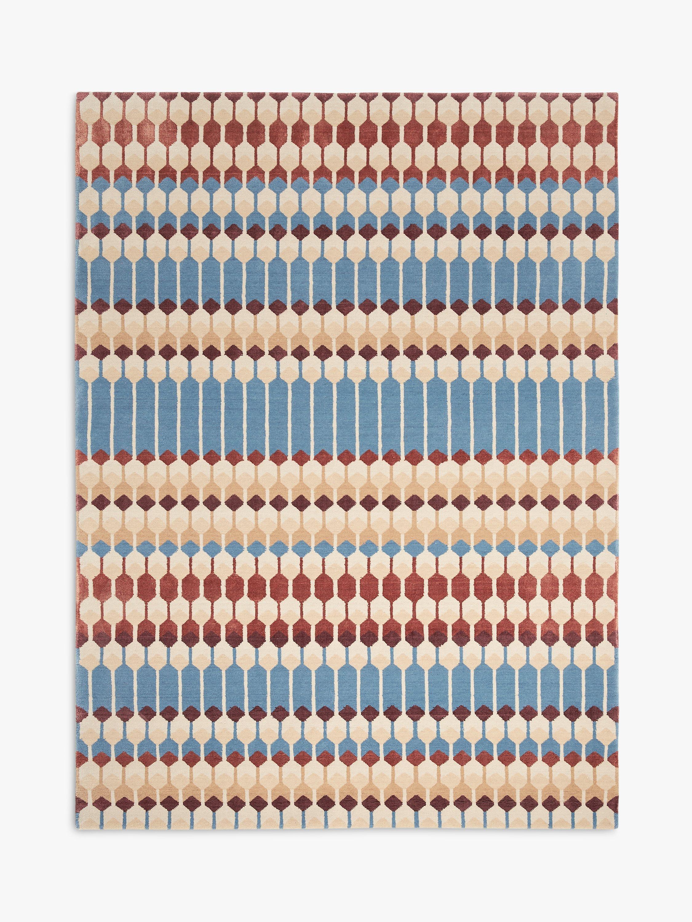 In an intricate and colourful striped pattern, we designed this rug in our own in-house design studio. Created from a blend of warming wool and viscose, the geometric style makes it a great addition to a contemporary space.
