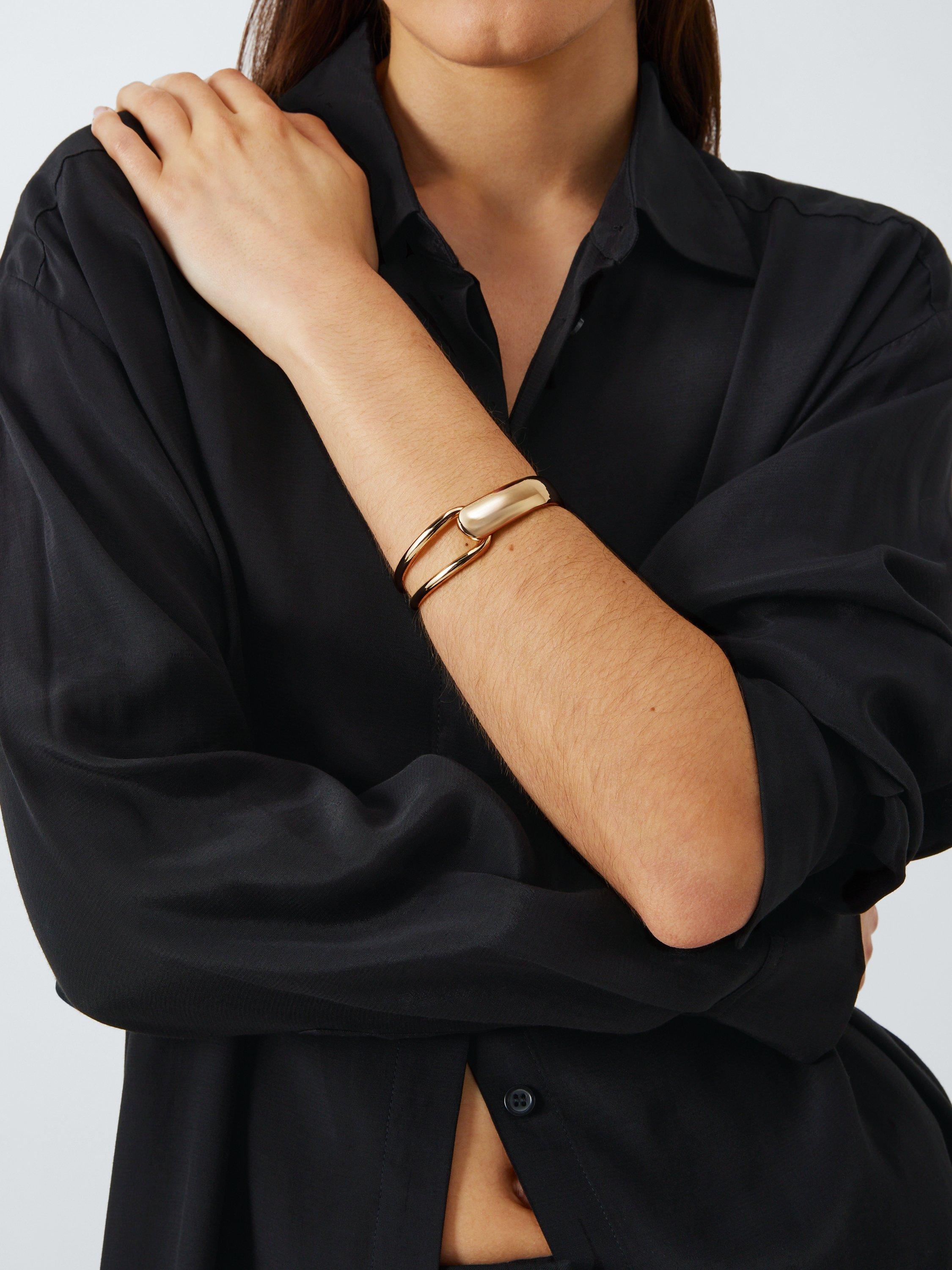 Domed on one side and cut out on the other, this hinged bracelet celebrates the beauty of differences coming together. Highly polished for a stand-out finish.