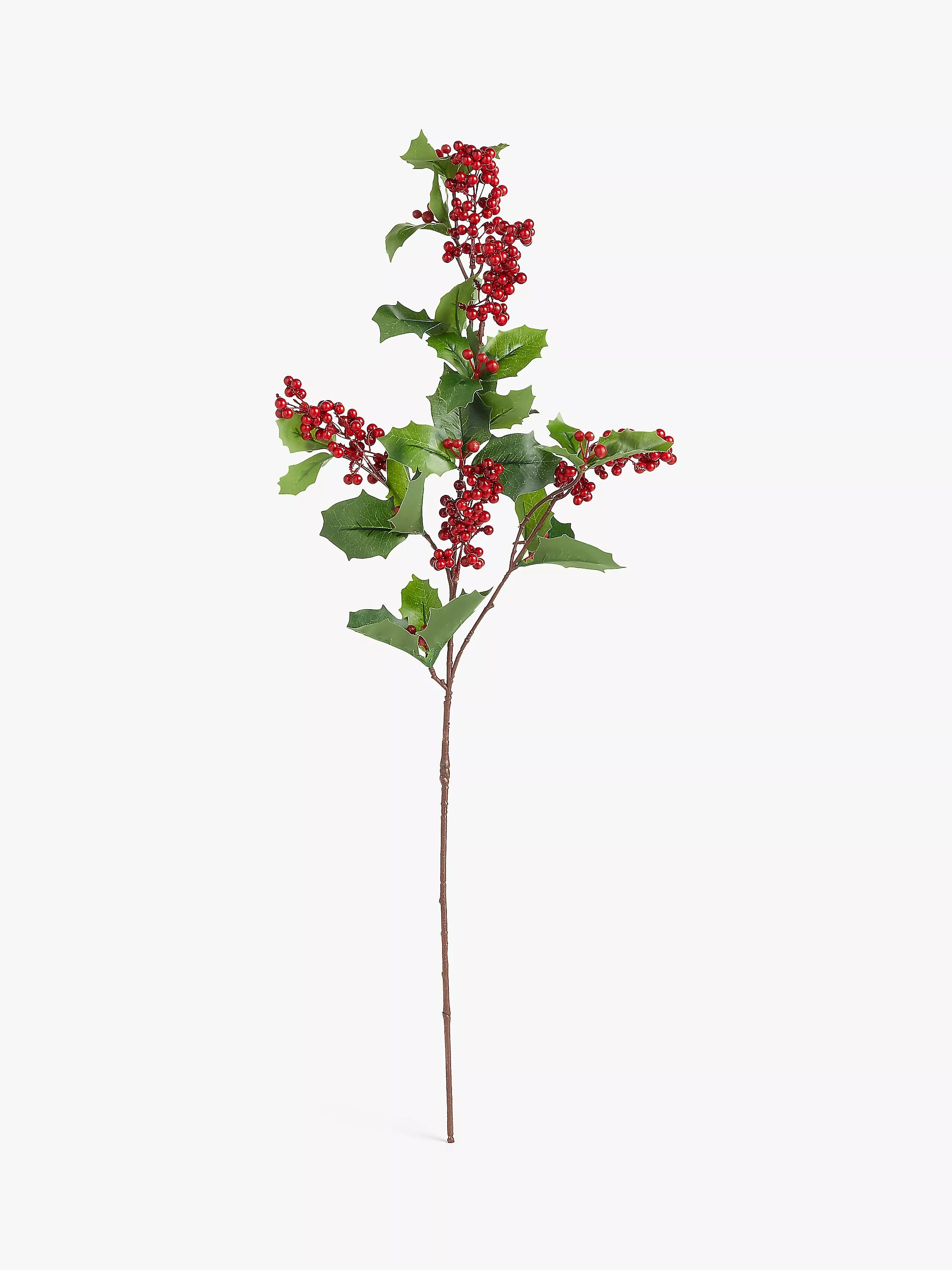 This realistic holly berry spray can be added to flower arrangements for a festive touch.