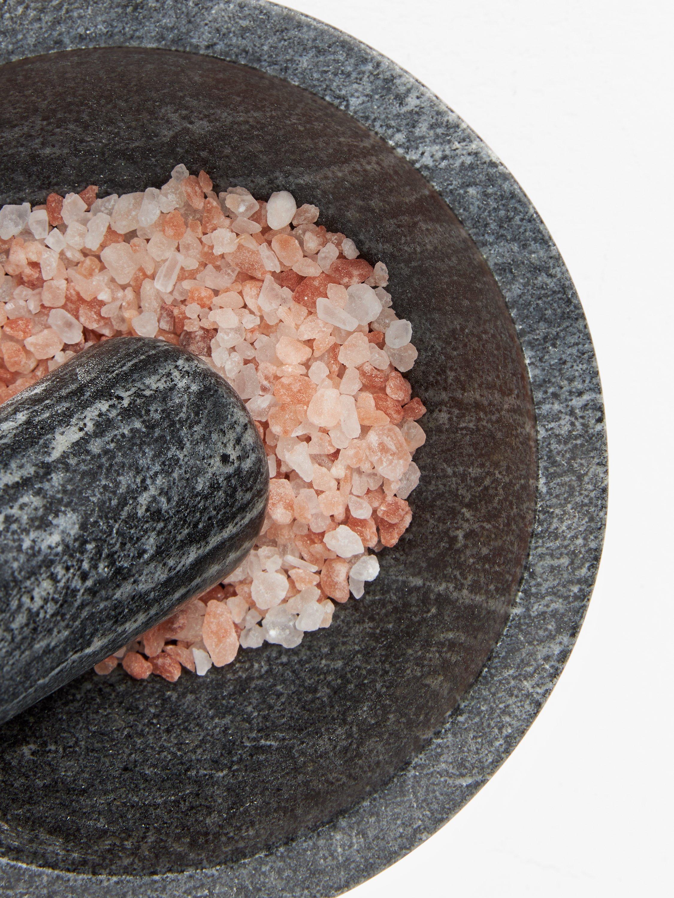 Crush your herbs and spices the traditional way with this pestle and mortar set made from honed midnight black marble. A weighty piece, it will withstand the test of time. The pestle and the outside of the mortar are smooth and polished. The inside has a rough texture for grinding and bringing out the natural flavours and aromas of fresh ingredients.