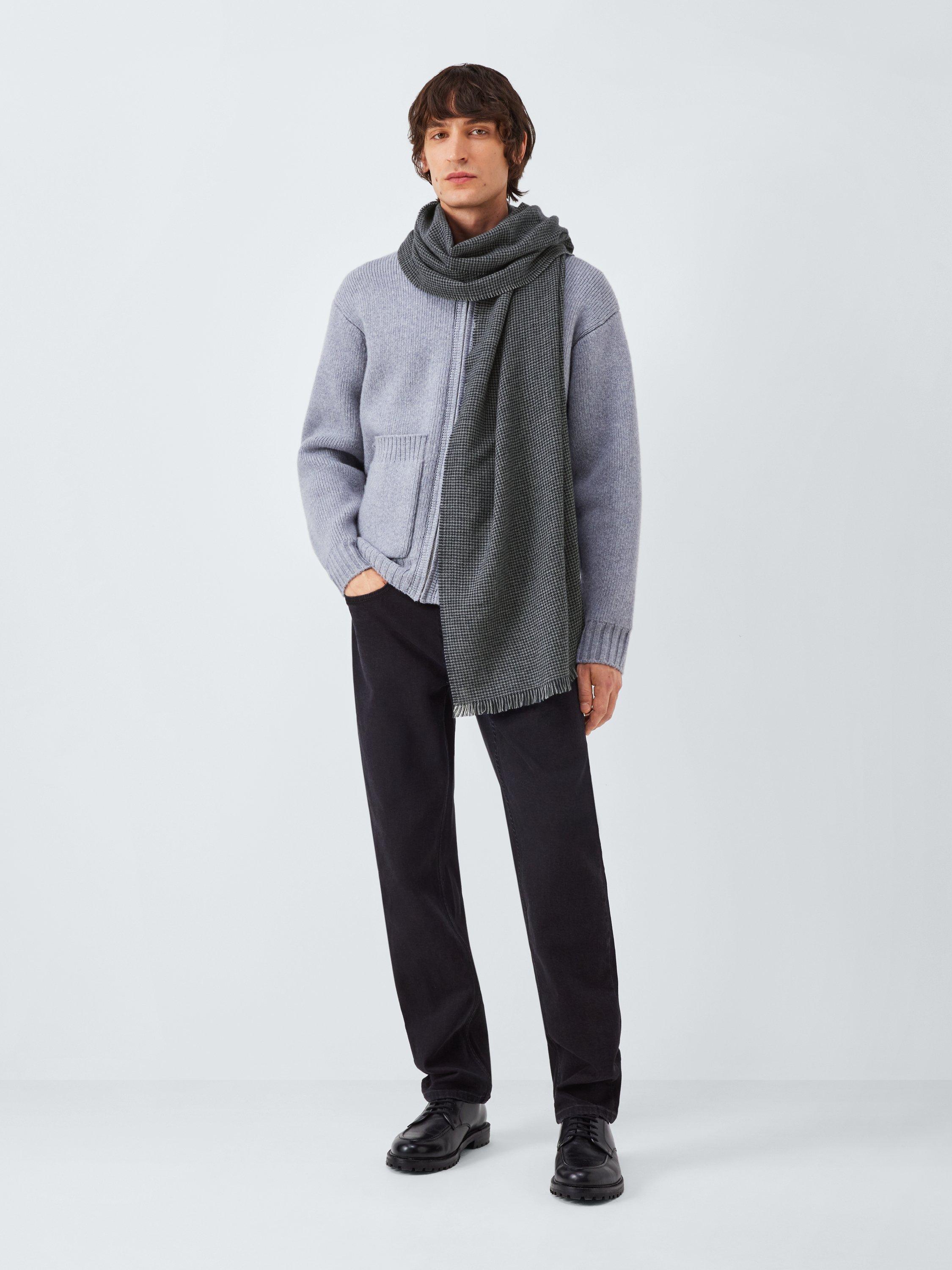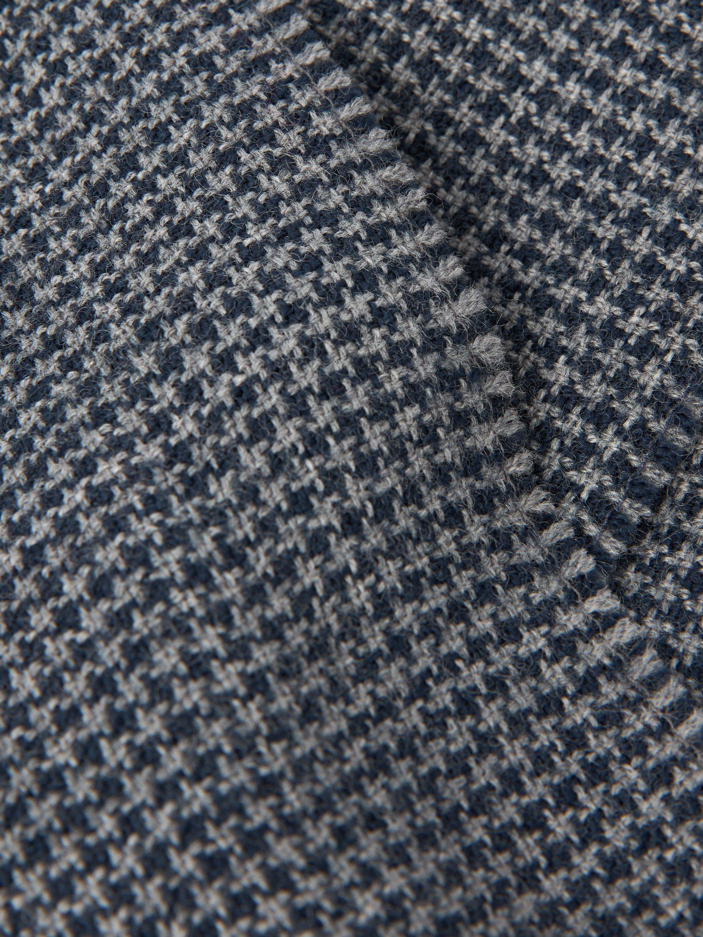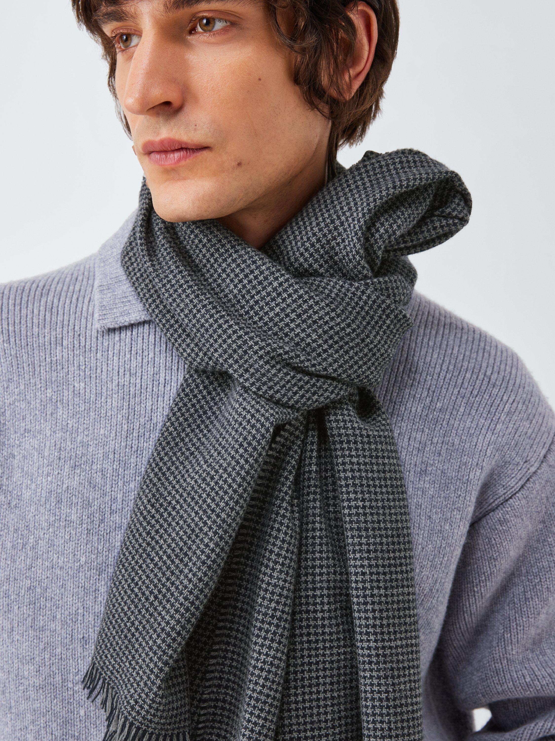 Complete an outfit with our Houndstooth Scarf, adding a heritage-inspired look. Updated in fresh tones and featuring a fringed hem. Made of naturally temperature-regulating wool for softness and warmth when you need it.