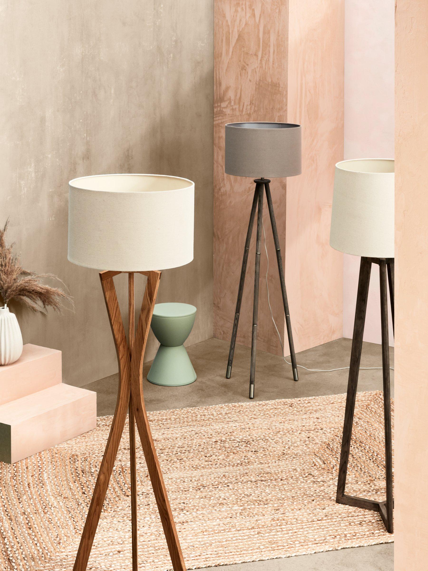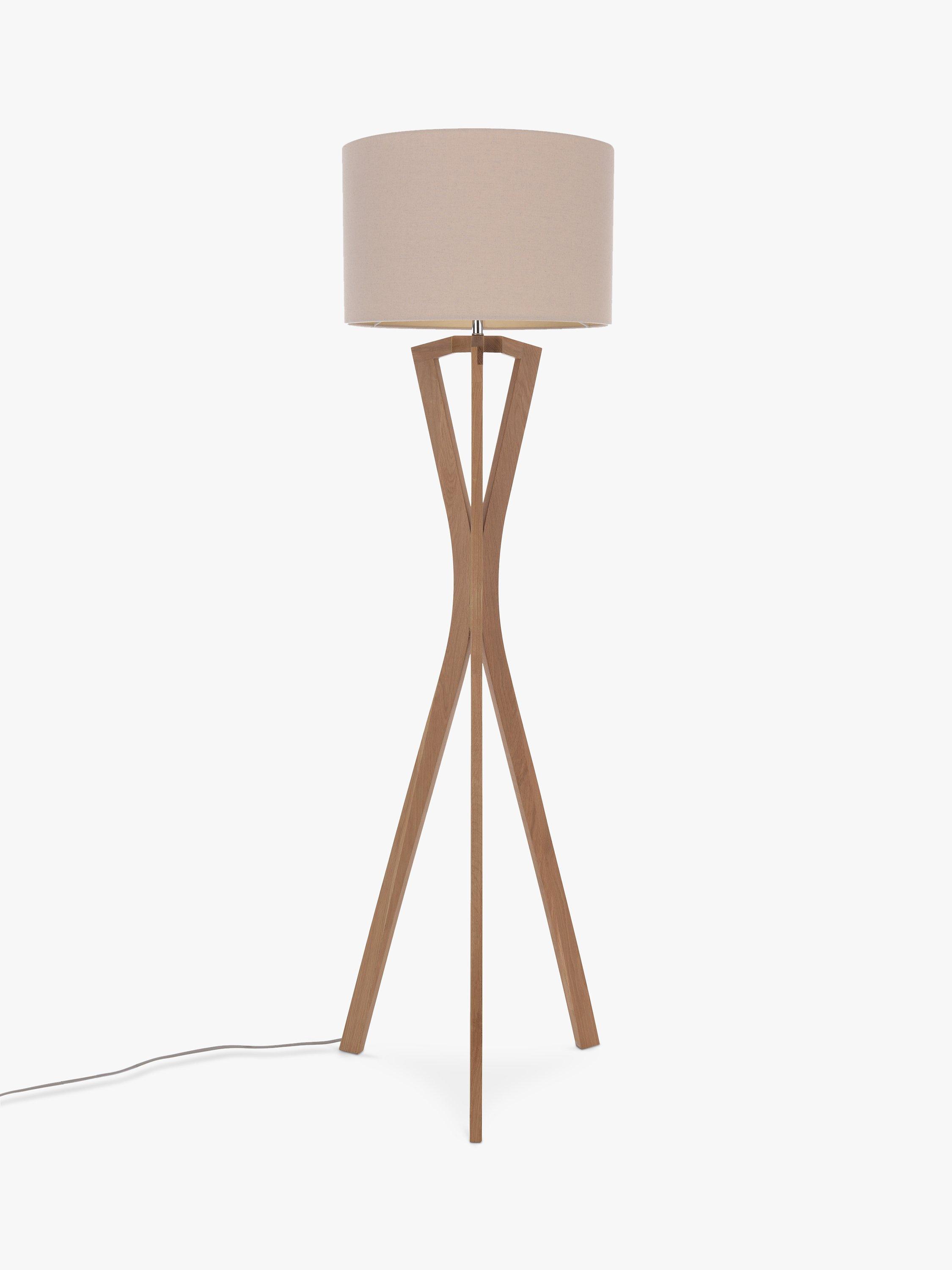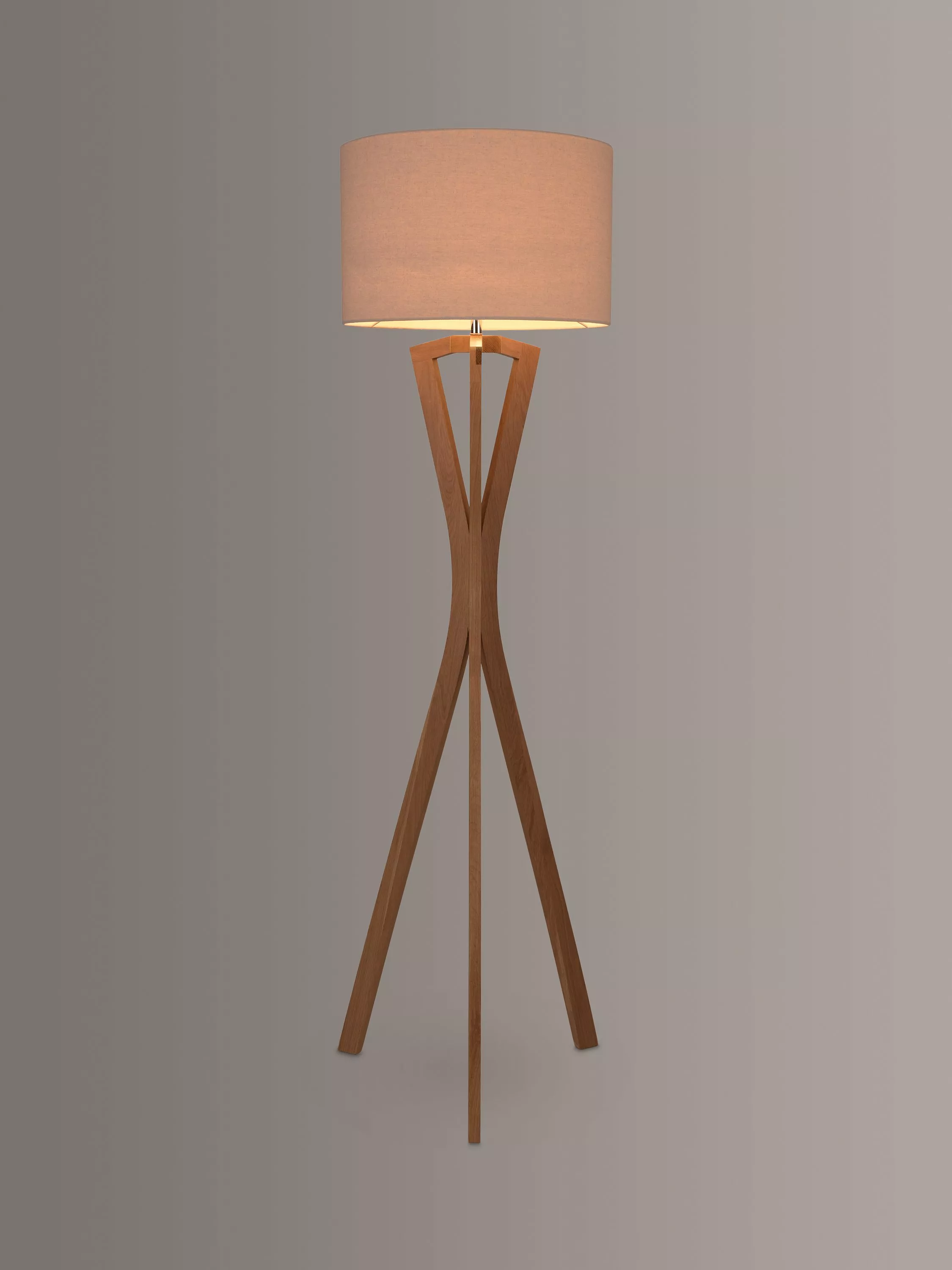 The tripod base of this floor lamp is beautifully carved into an hourglass shape, in a celebration of quality craftsmanship and natural materials. It's made from responsibly sourced oak and we've added a linen lampshade which enhances a warm glow of light.
