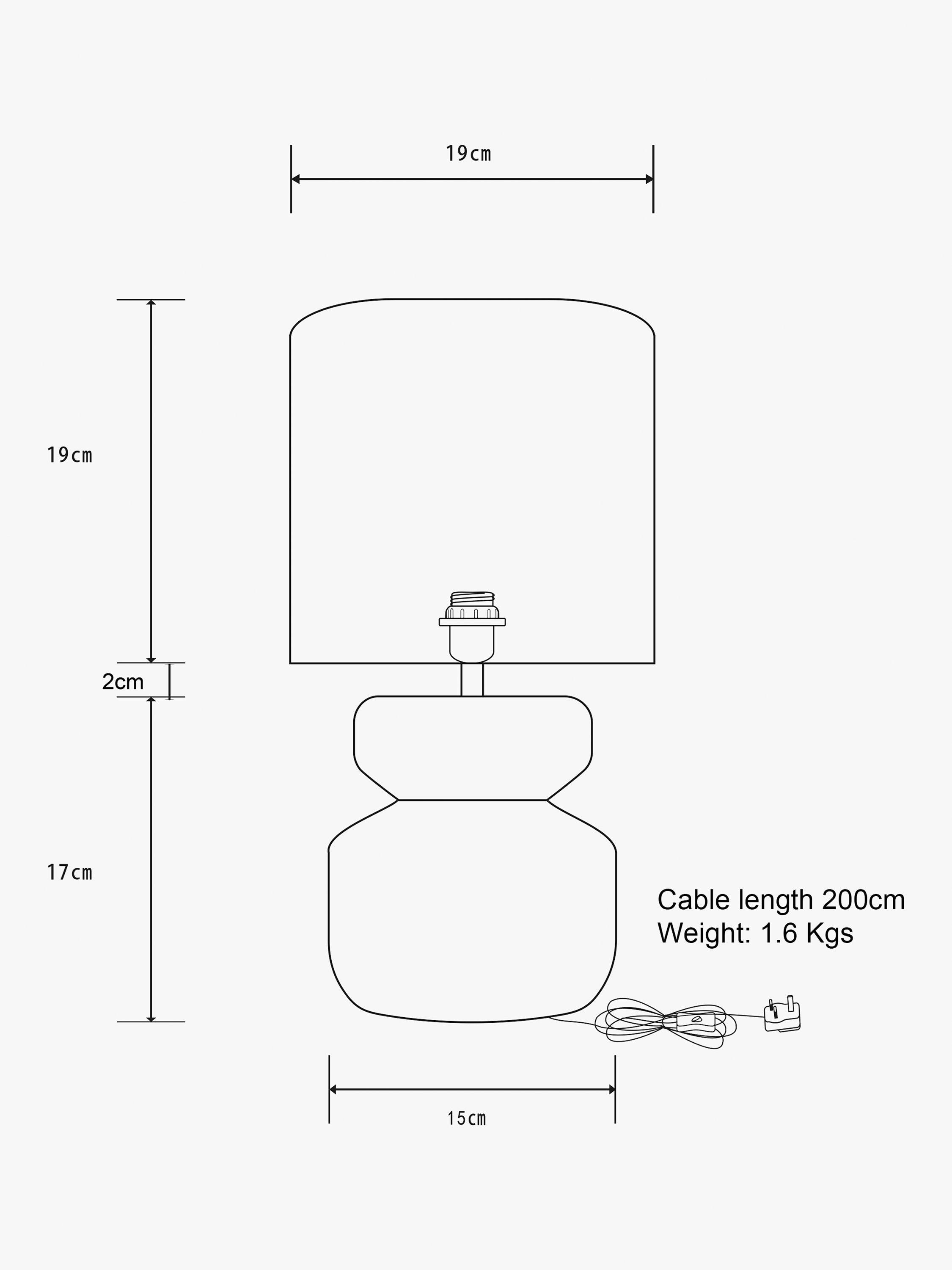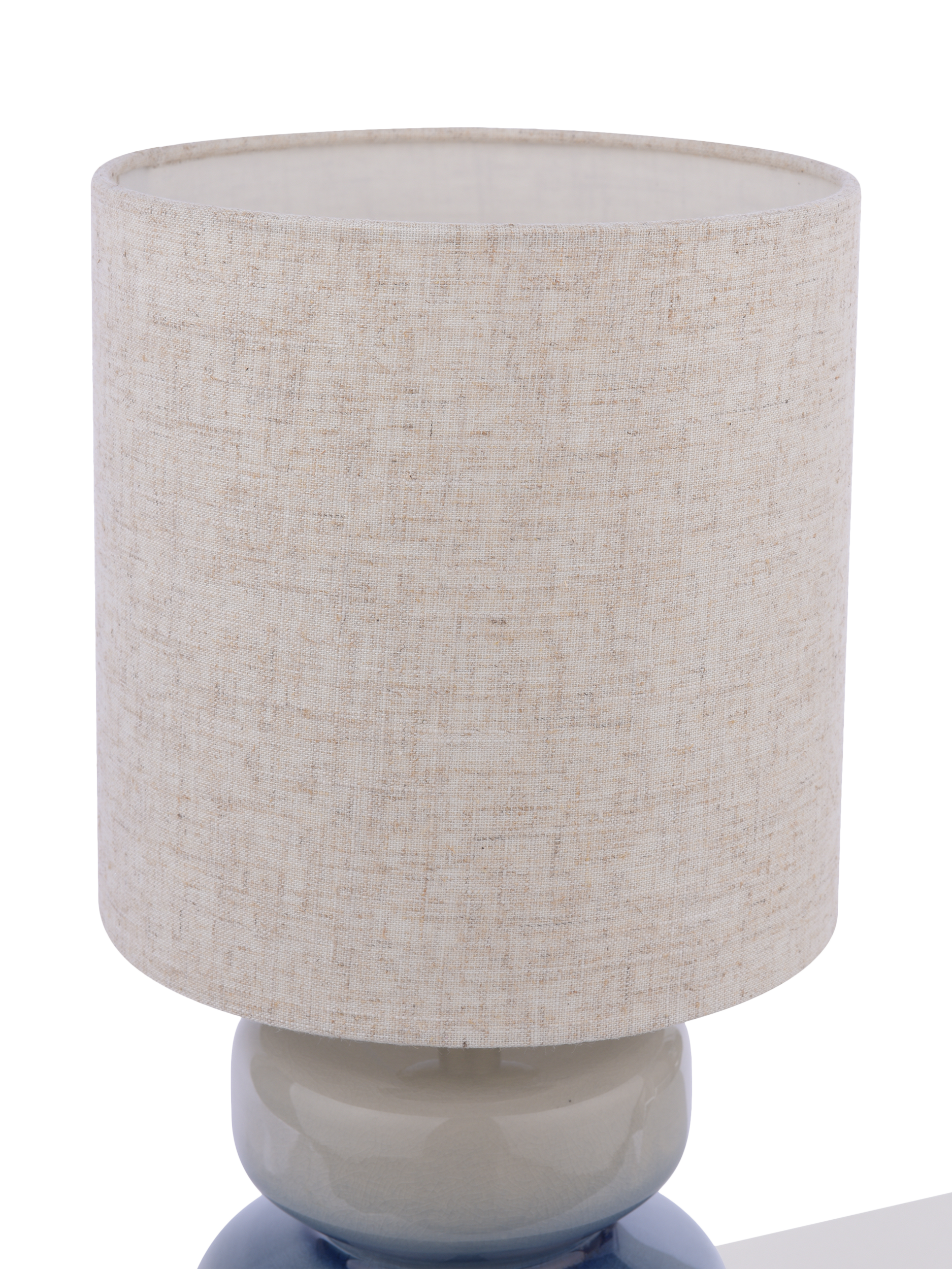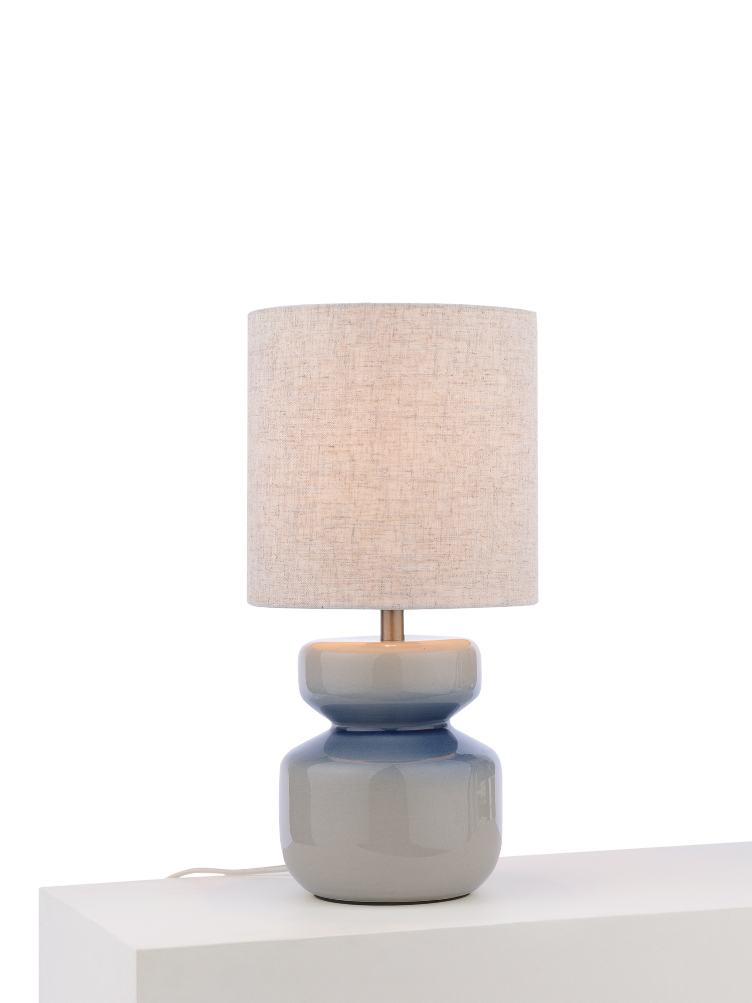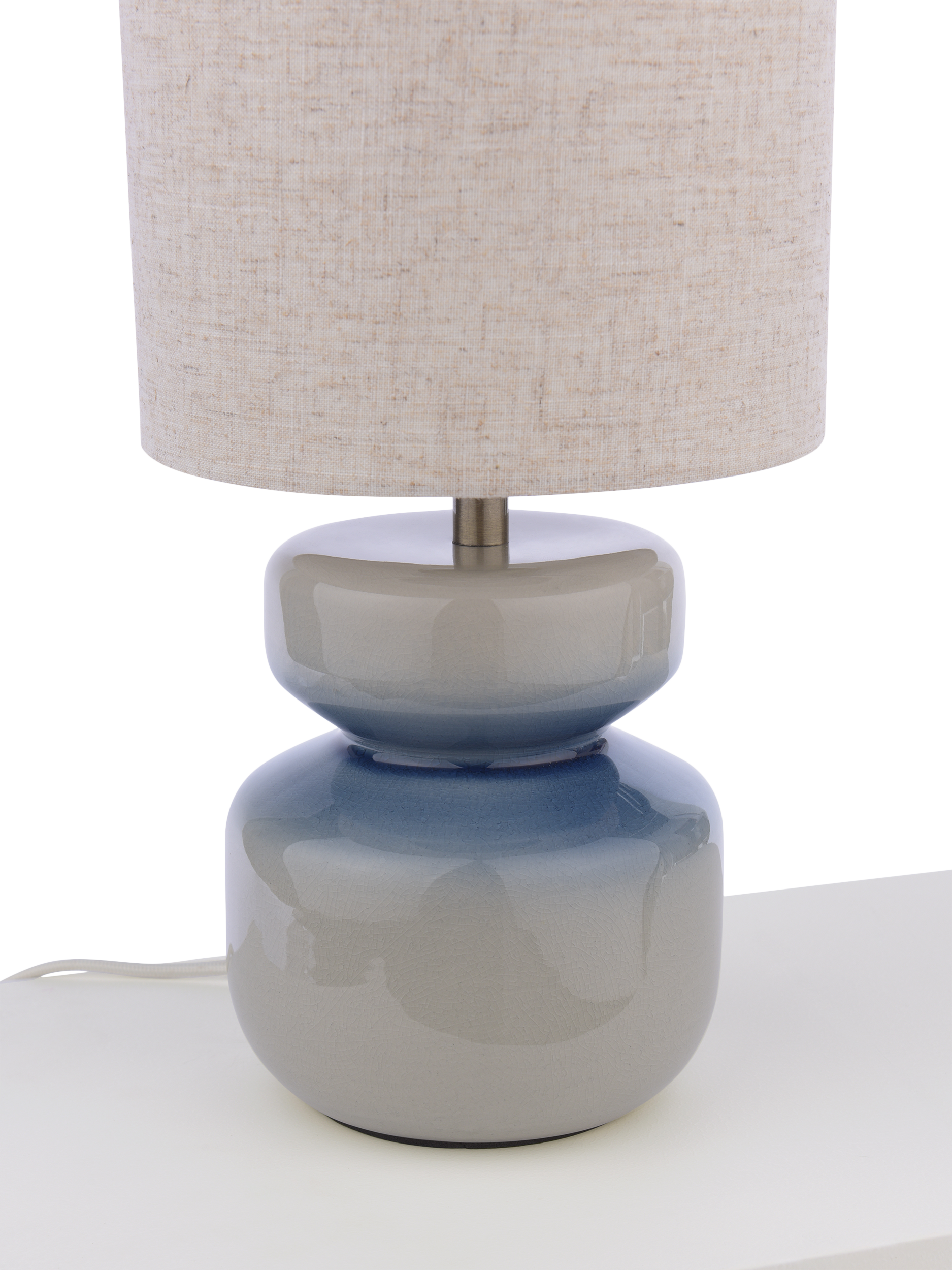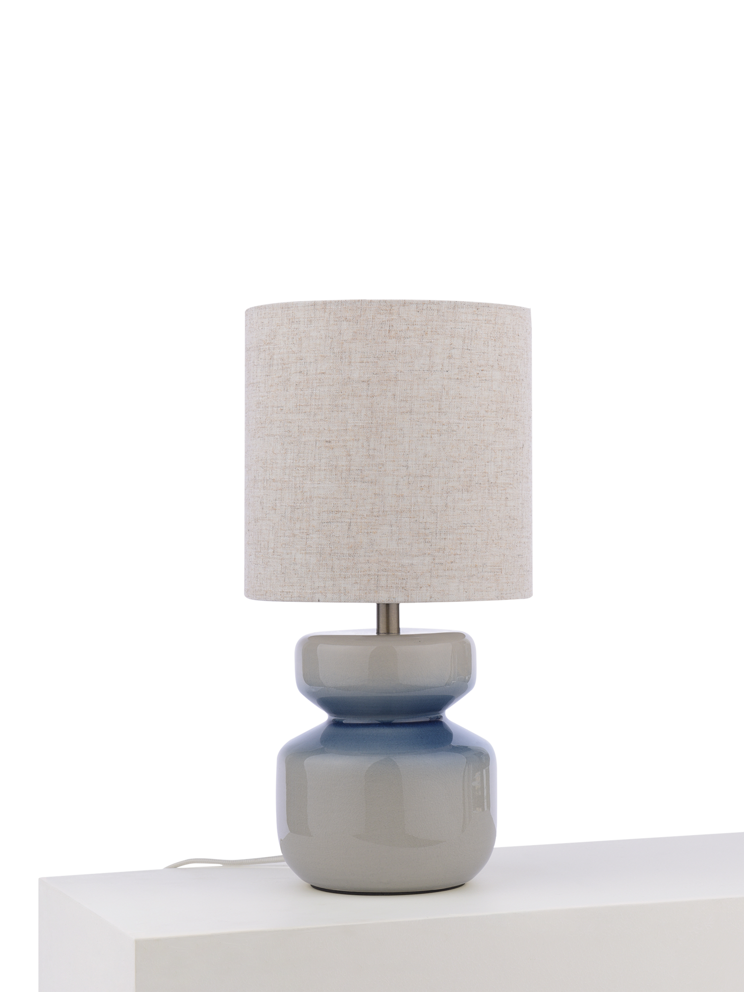 The ombre reactive glaze has been painstakingly applied to a timeless hourglass shaped base to create an artisan finish. This is paired with a textured natural shade. Easily placed anywhere in the home to create a homely ambience.