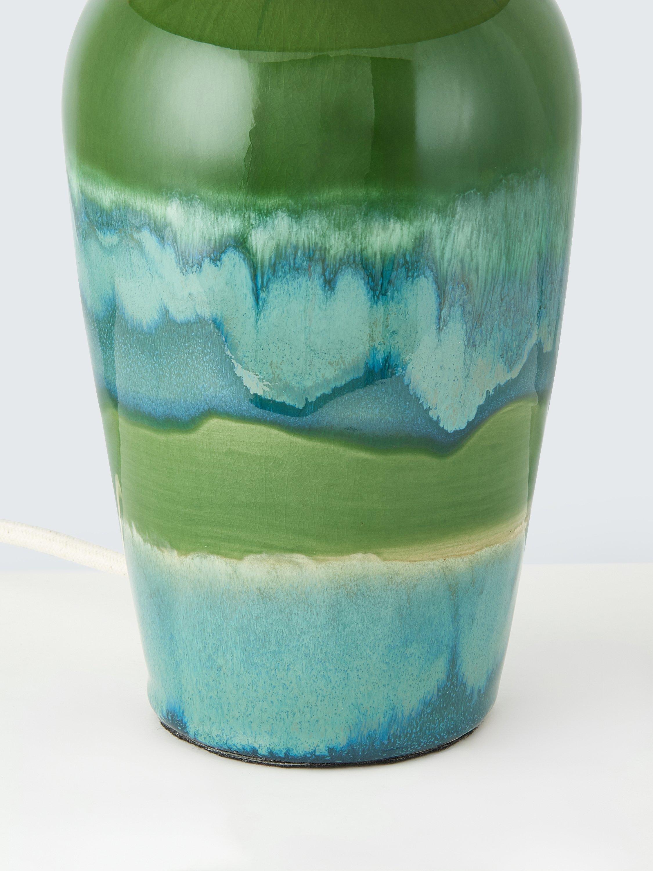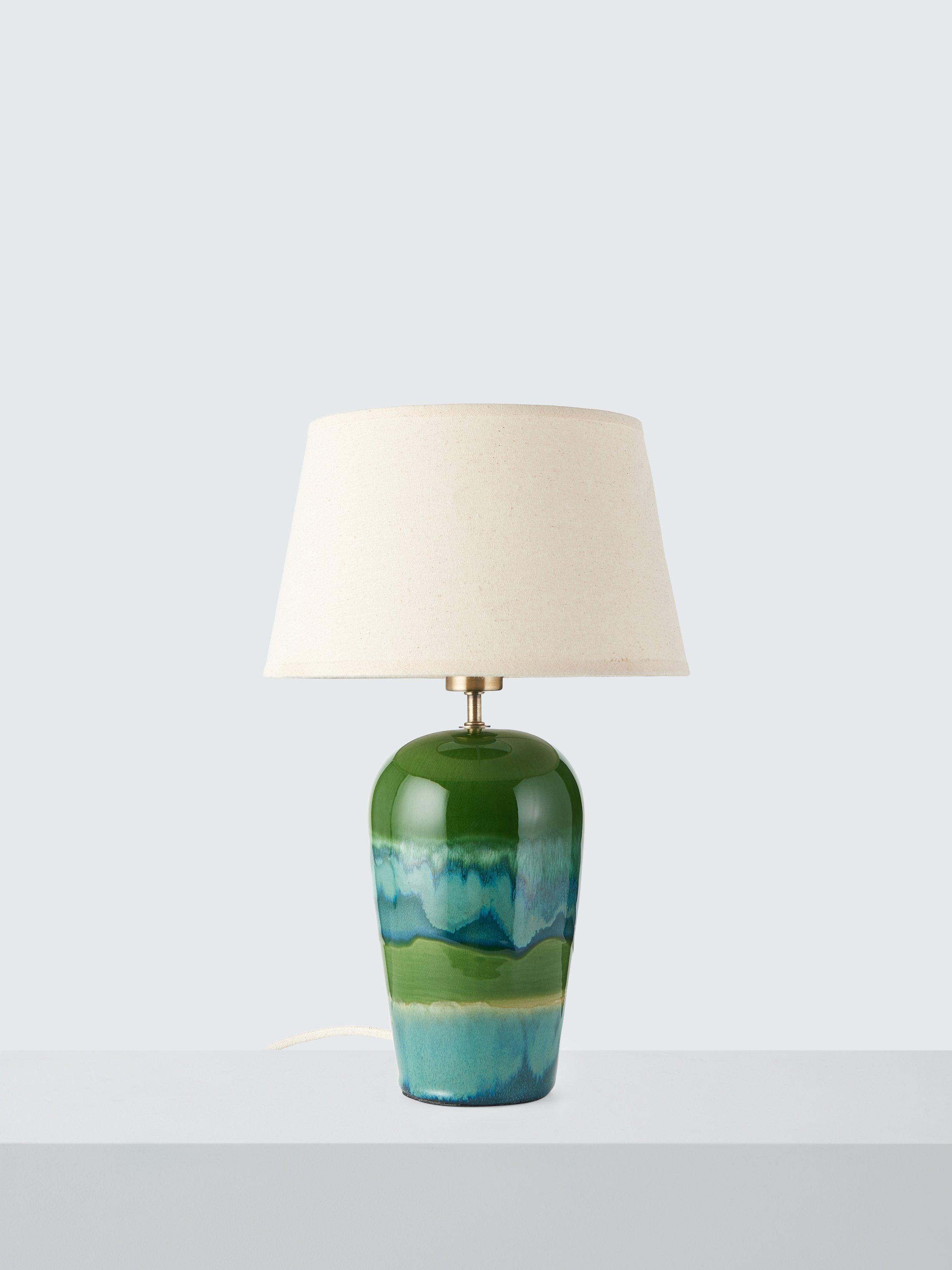 The lamp base is handcrafted from ceramic using a reactive glaze, resulting in unique colour and pattern, and slight variations from piece to piece. Any differences in colour are a natural aspect of the artisanal process, making each piece truly one of a kind.