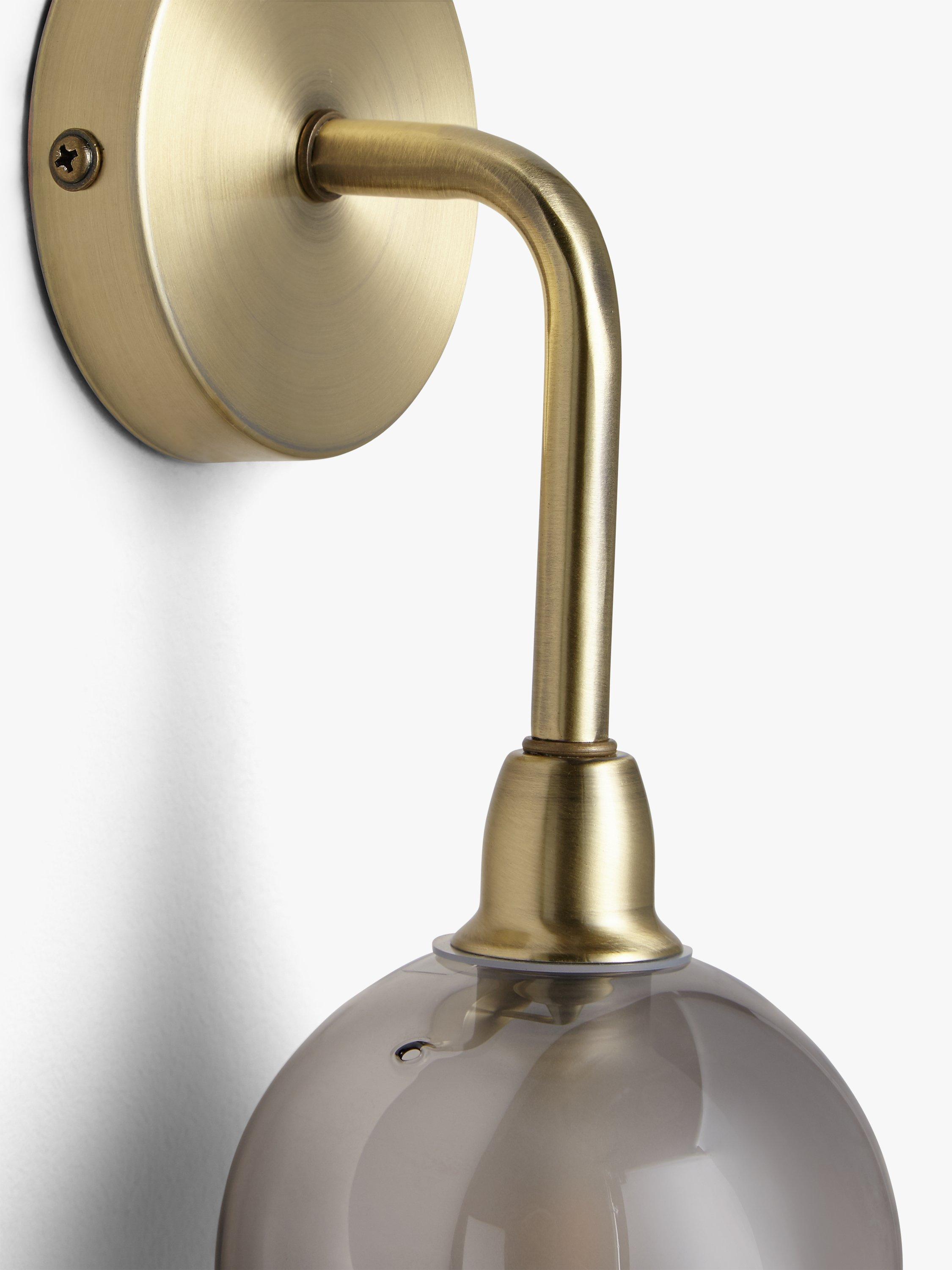 Sleek and understated, our single arm Huxley wall light is ideal for illuminating hallways or installing on either side of your bed. The antique finished metal gives the design a nostalgic, Art-Deco inspired feel, teamed with a smoked glass shade. Ideal for creating ambient light, making your space feel naturally warmer, restful and more inviting.