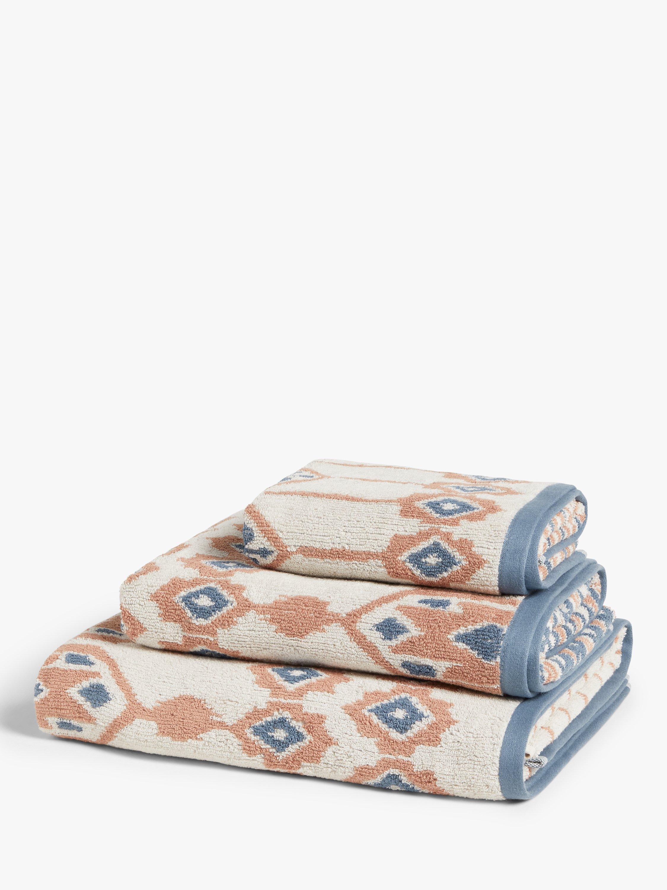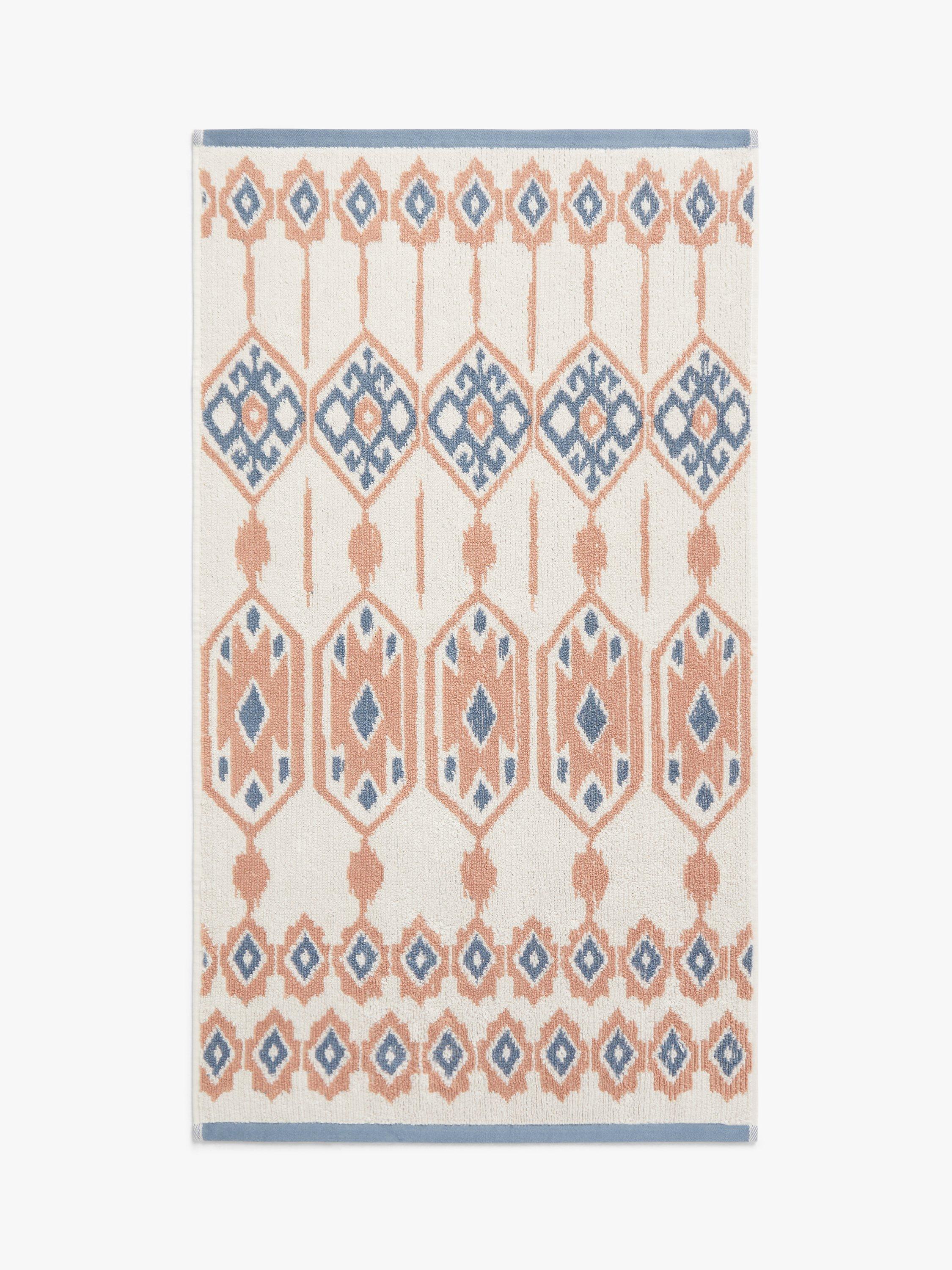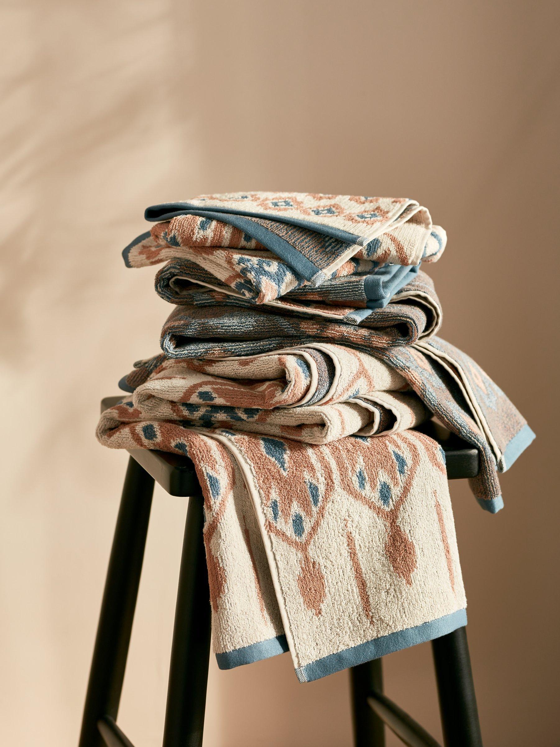 Ikat designs have been having a moment over the past few years, seeing a rise in popularity for both fashion and home interiors. The distinctive style inspired these towels which we've made from pure cotton towels and coloured in both muted and bold colour palettes.