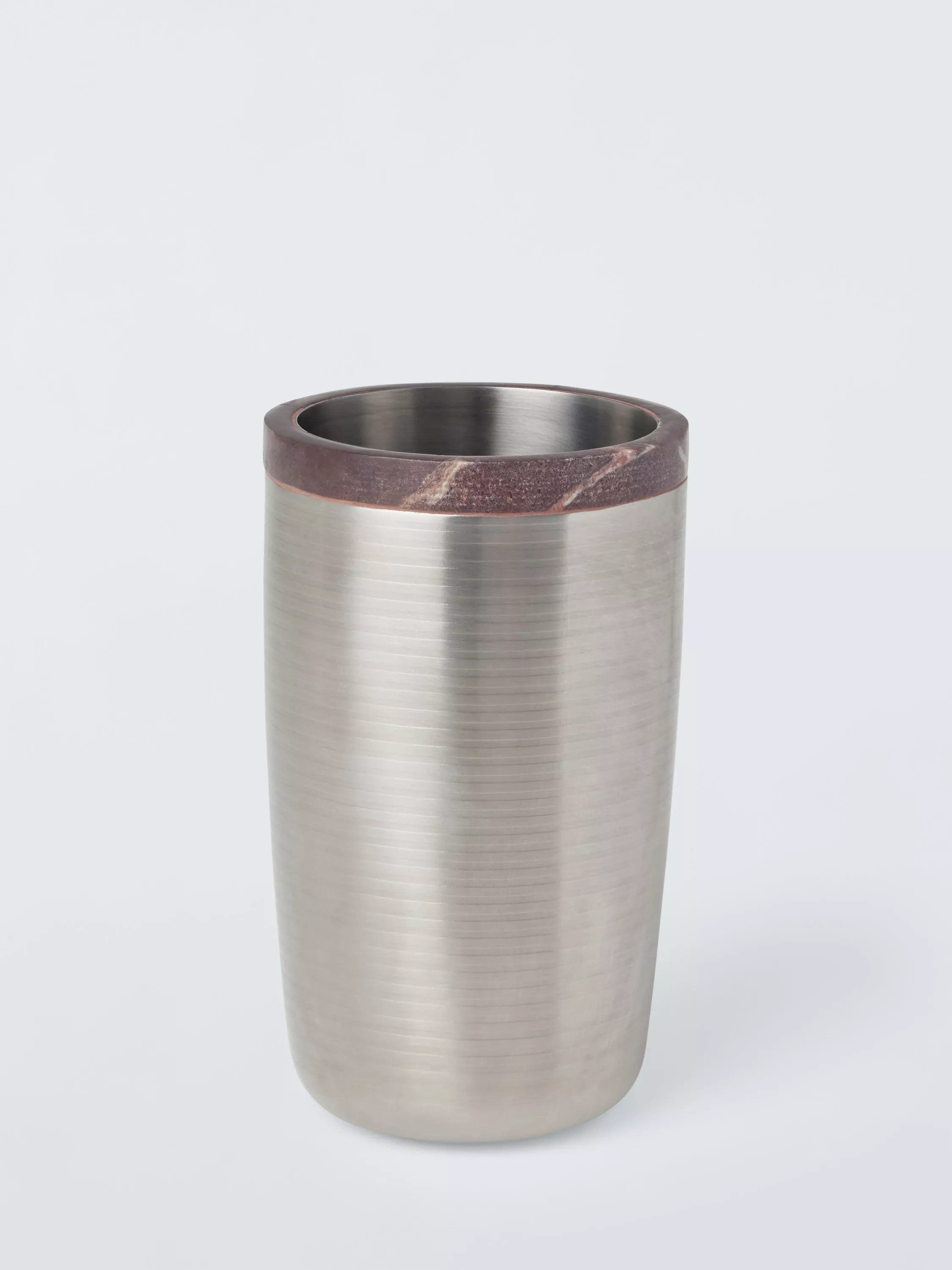 From our giftable Icon barware range, this wine cooler is made of durable stainless steel with Red Levento Marble trim. The beautiful natural patterning makes each piece unique. Holds a standard-sized bottle of wine.