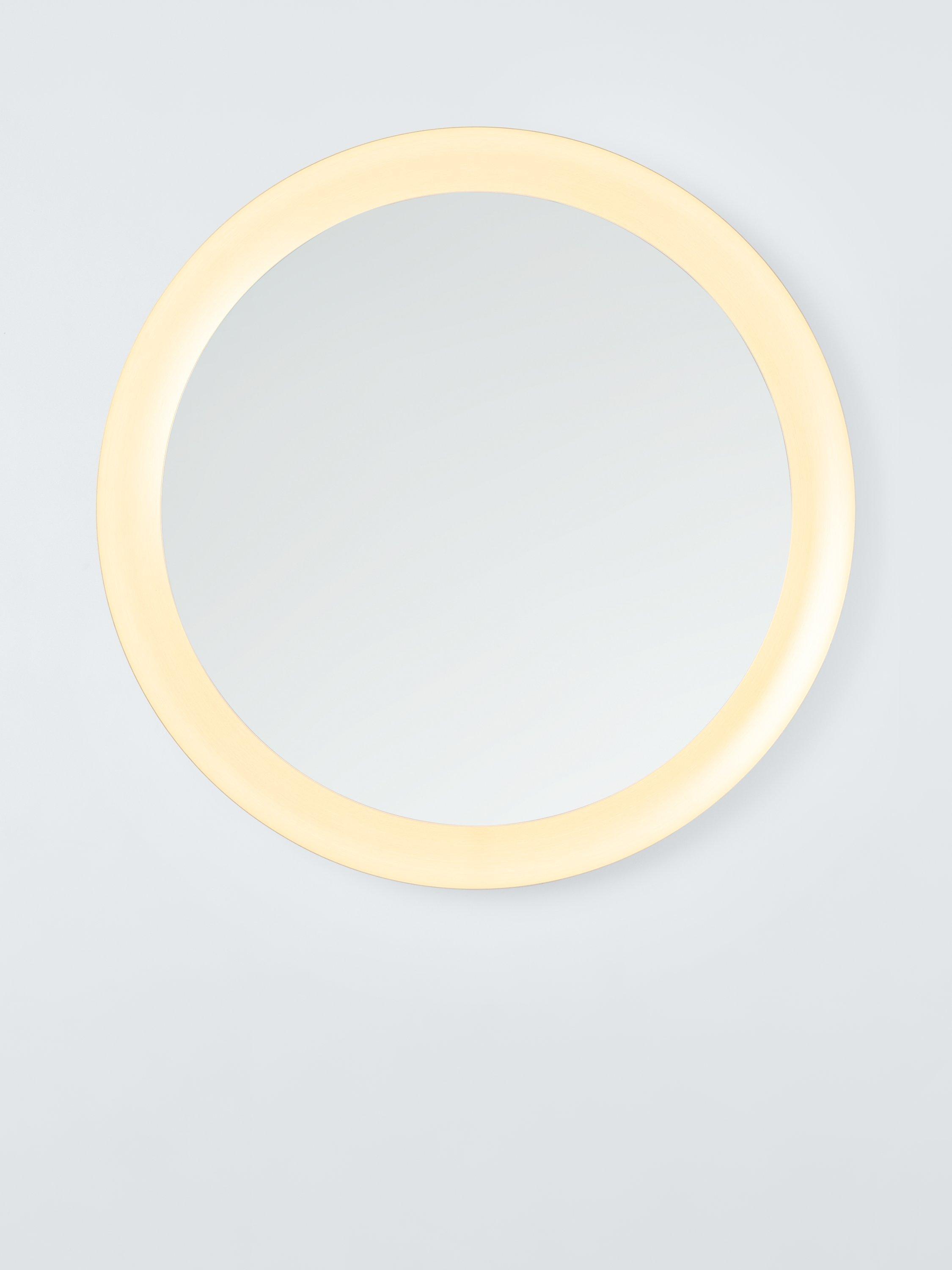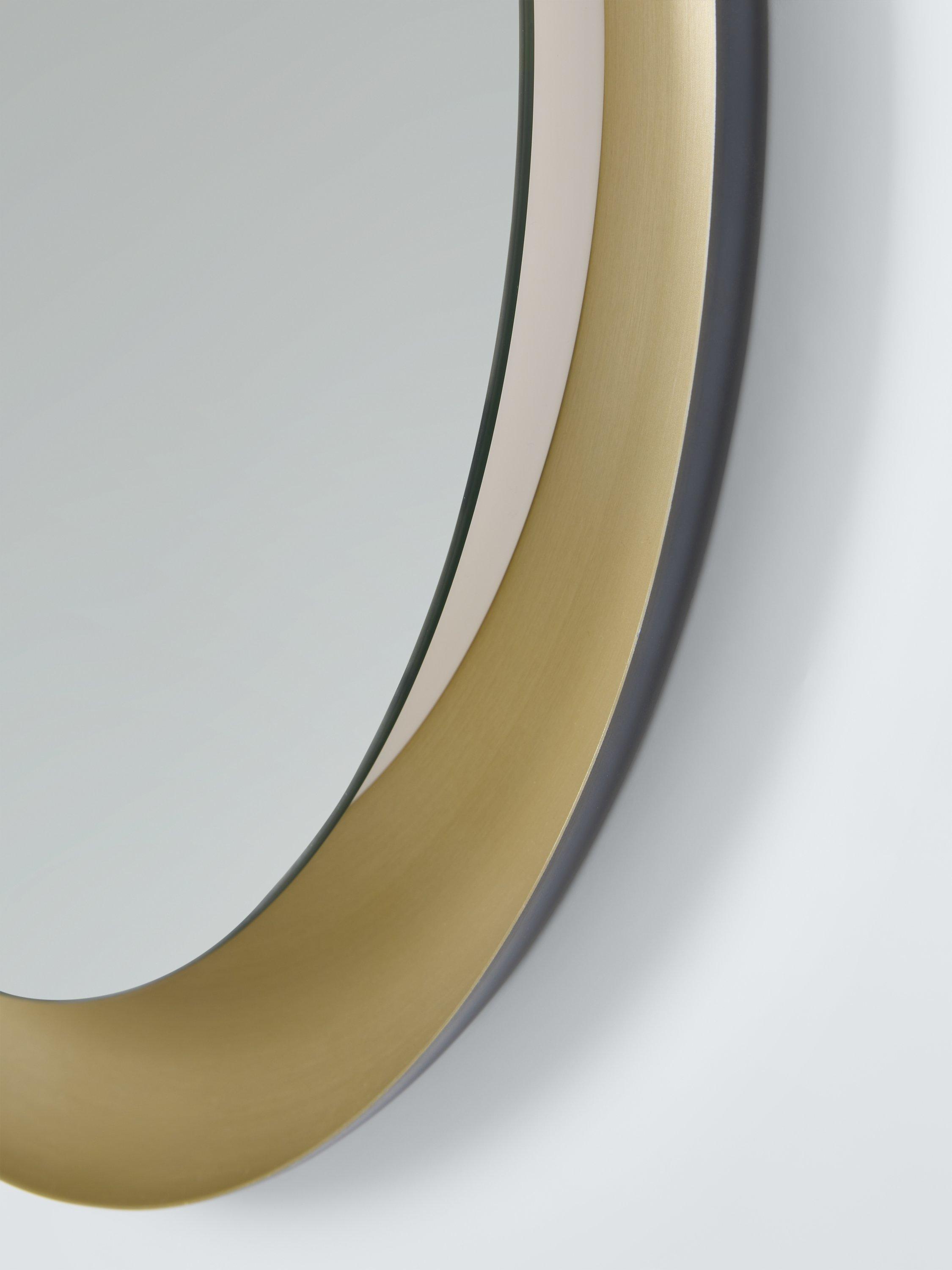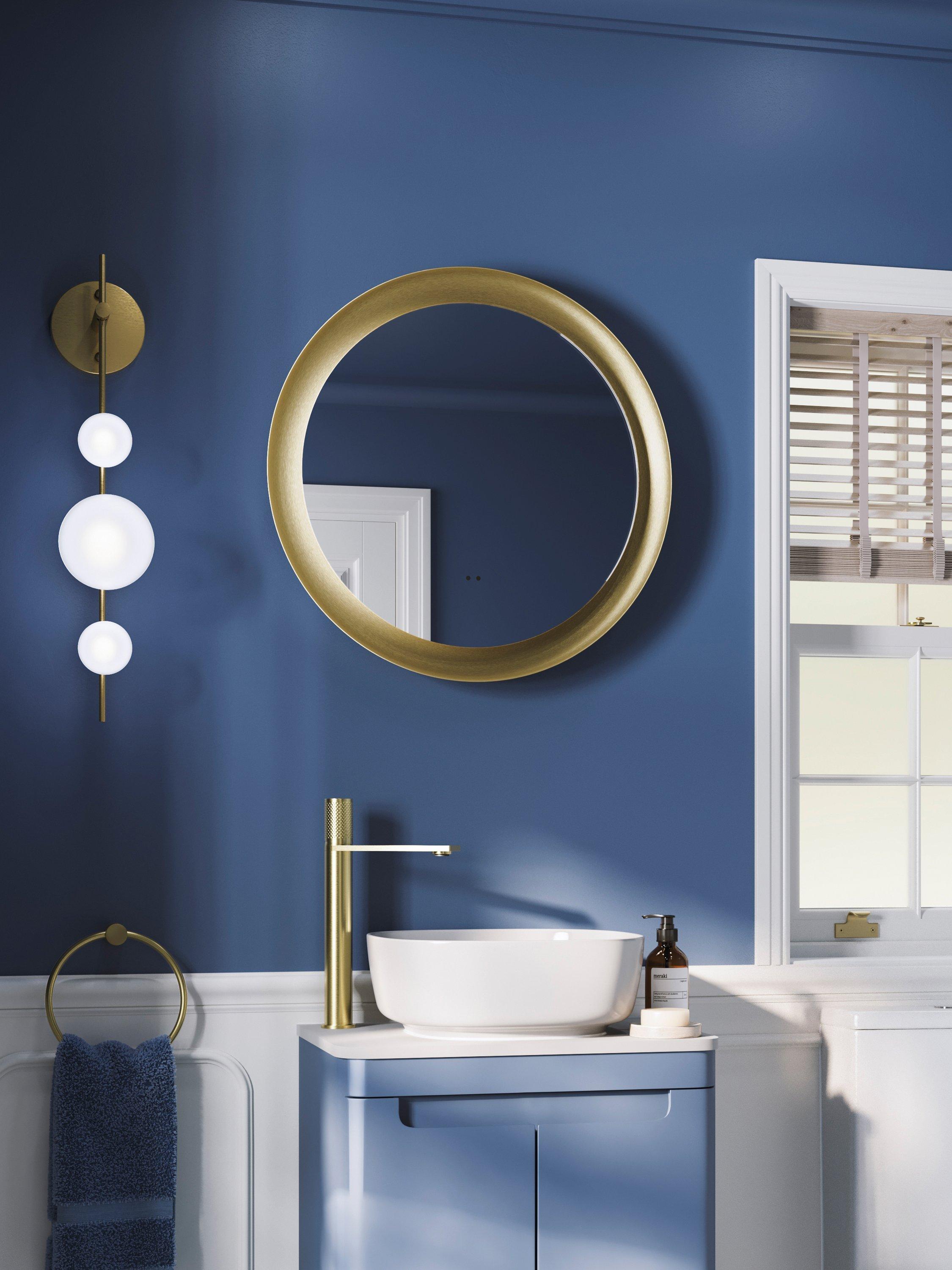 This round mirror's eye-catching brushed grey and brushed brass finishes offer a stunning look in modern bathrooms and features touch-free operation, colour-changing LED illumination and a heated pad to reduce condensation.