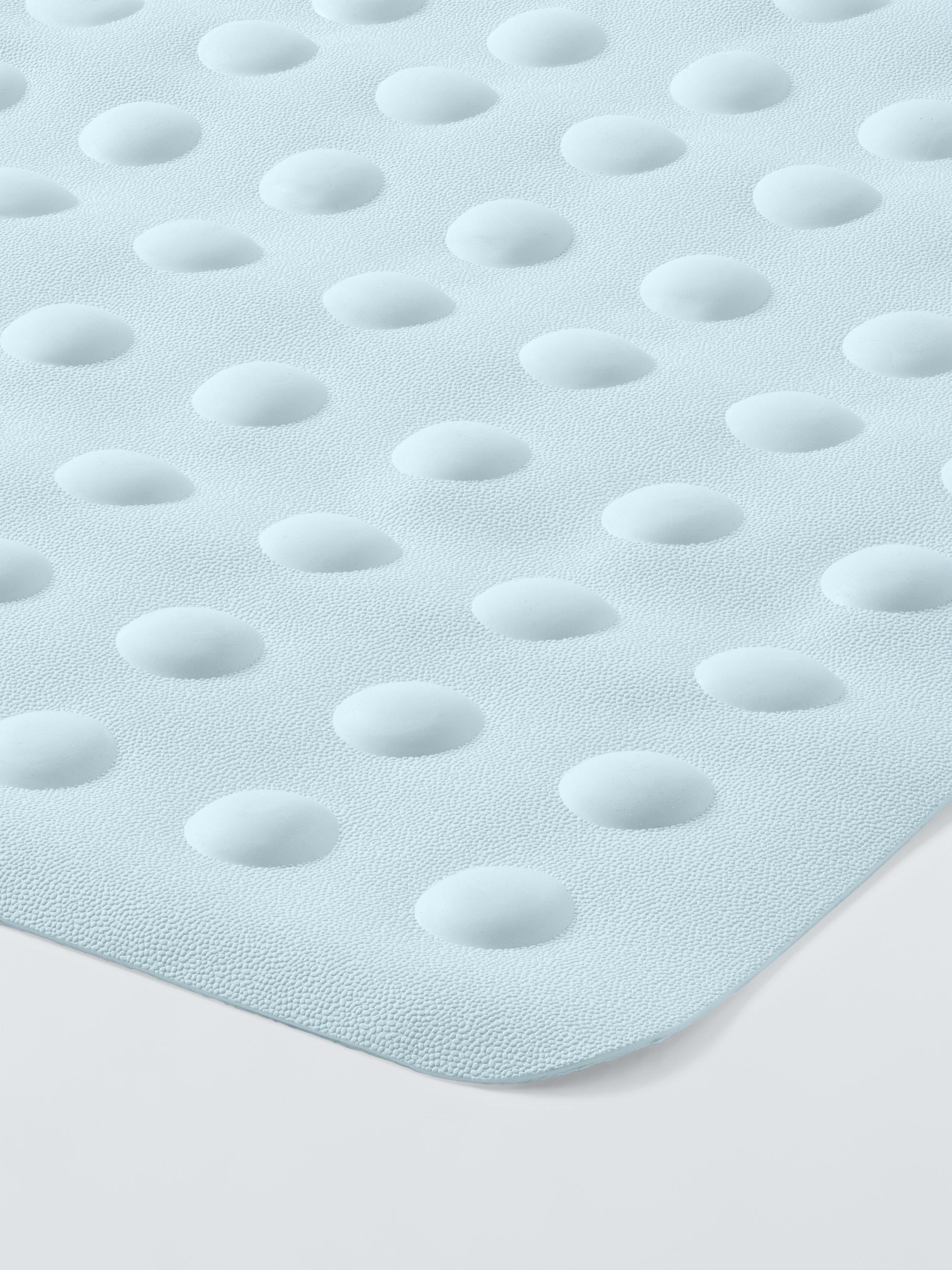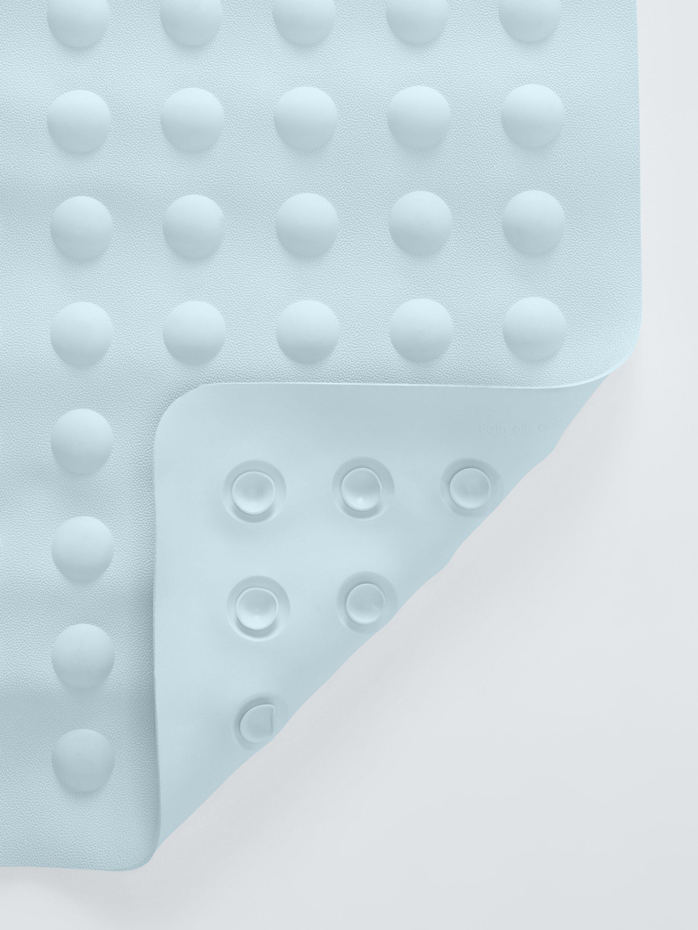 This anti-slip bath mat attaches securely with suction cups. Domed air pockets provide additional comfort.