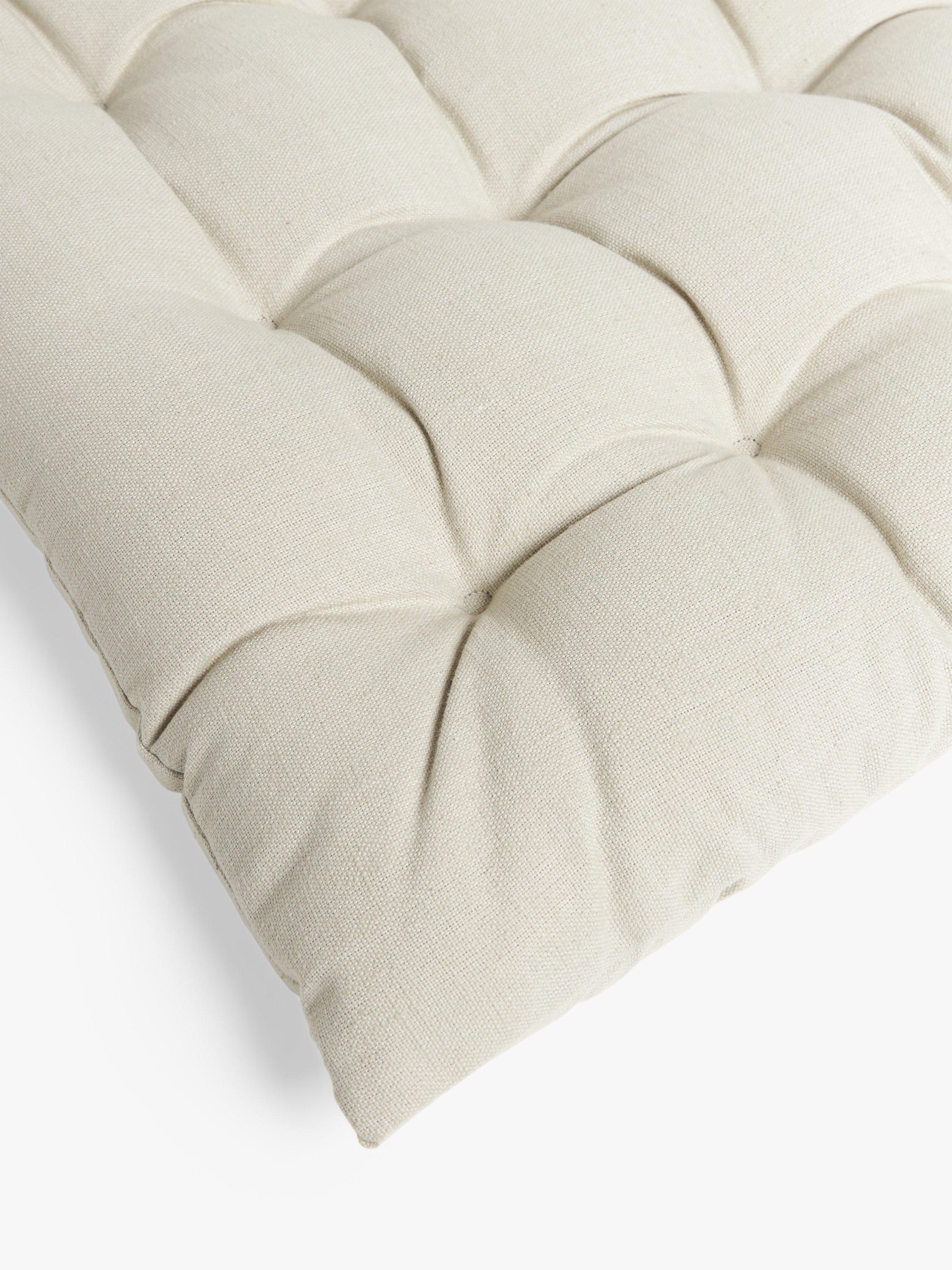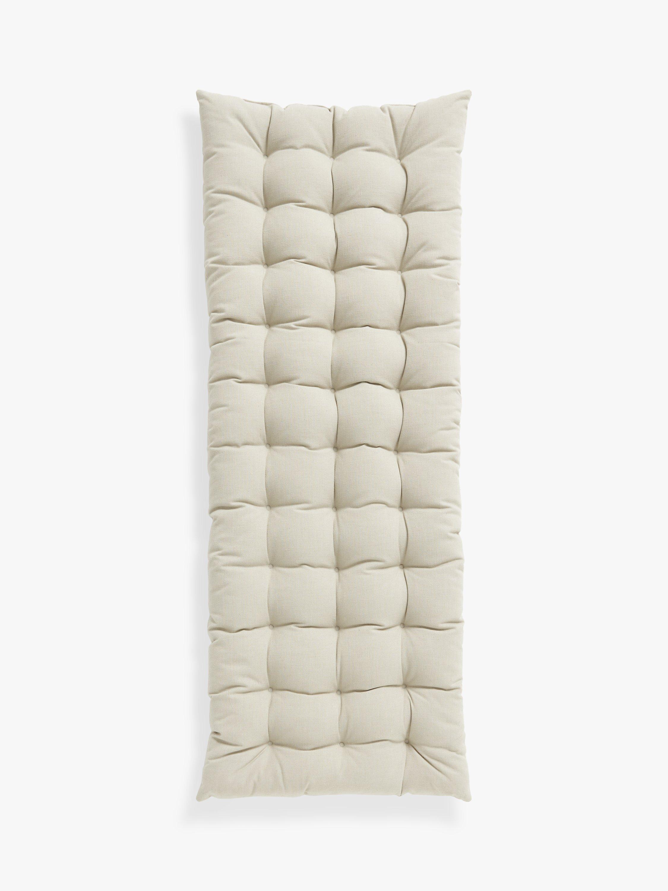 This quilted bench cushion is suitable for outdoor use as it has a water-repellent finish. However, we recommend you store it inside, somewhere dry, when not in use.