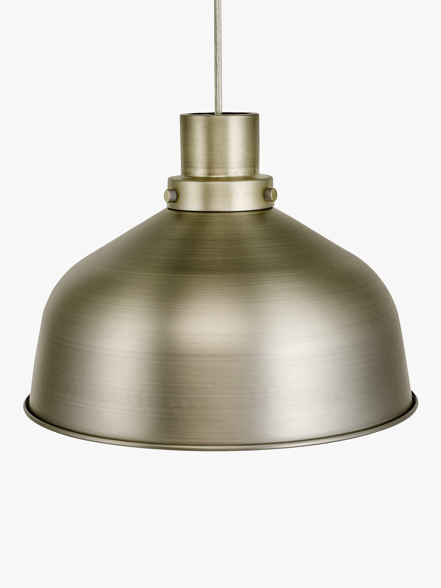 This ceiling shade offers a quick and instant way to make an industrial-inspired update to your home decor. Available in a choice of painted or antique finishes, the dome-shaped shade is made from spun metal and decorated with knurled screw detail and a matt gold inner.