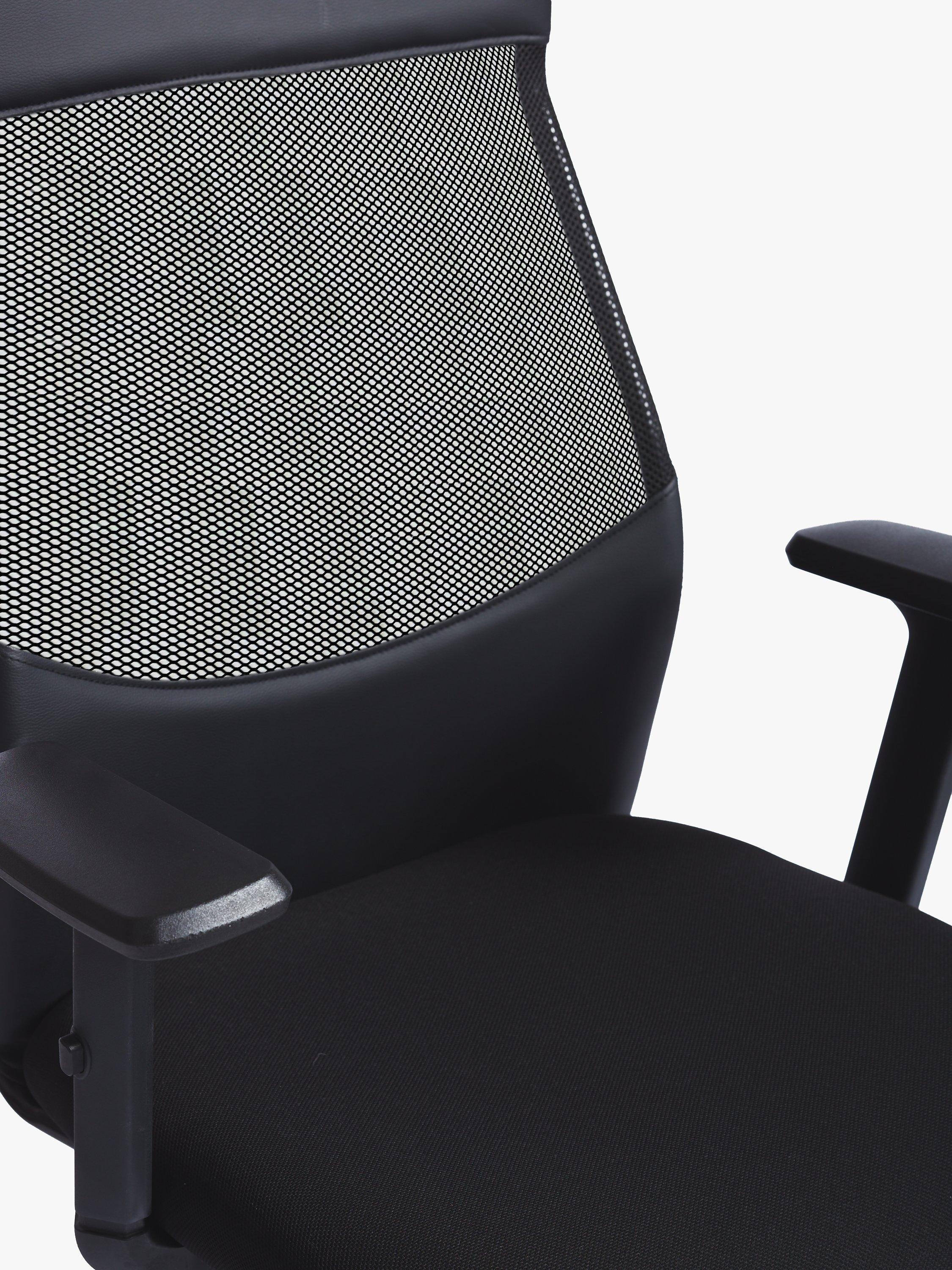 This ergonomic office chair offers an impressive amount of adjustments to ensure you stay comfortable during the working day. The seat is upholstered in fabric and the backrest, which provides lumbar support, is made from a combination of soft faux leather and flexible mesh. Height-adjustable armrests encourage a healthy posture and allow you to tuck the chair underneath your desk at the end of the day. The back rest is attached to the seat, so when the chair is reclined the back and seat recline together as one. An essential for your home office, at a brilliant price.