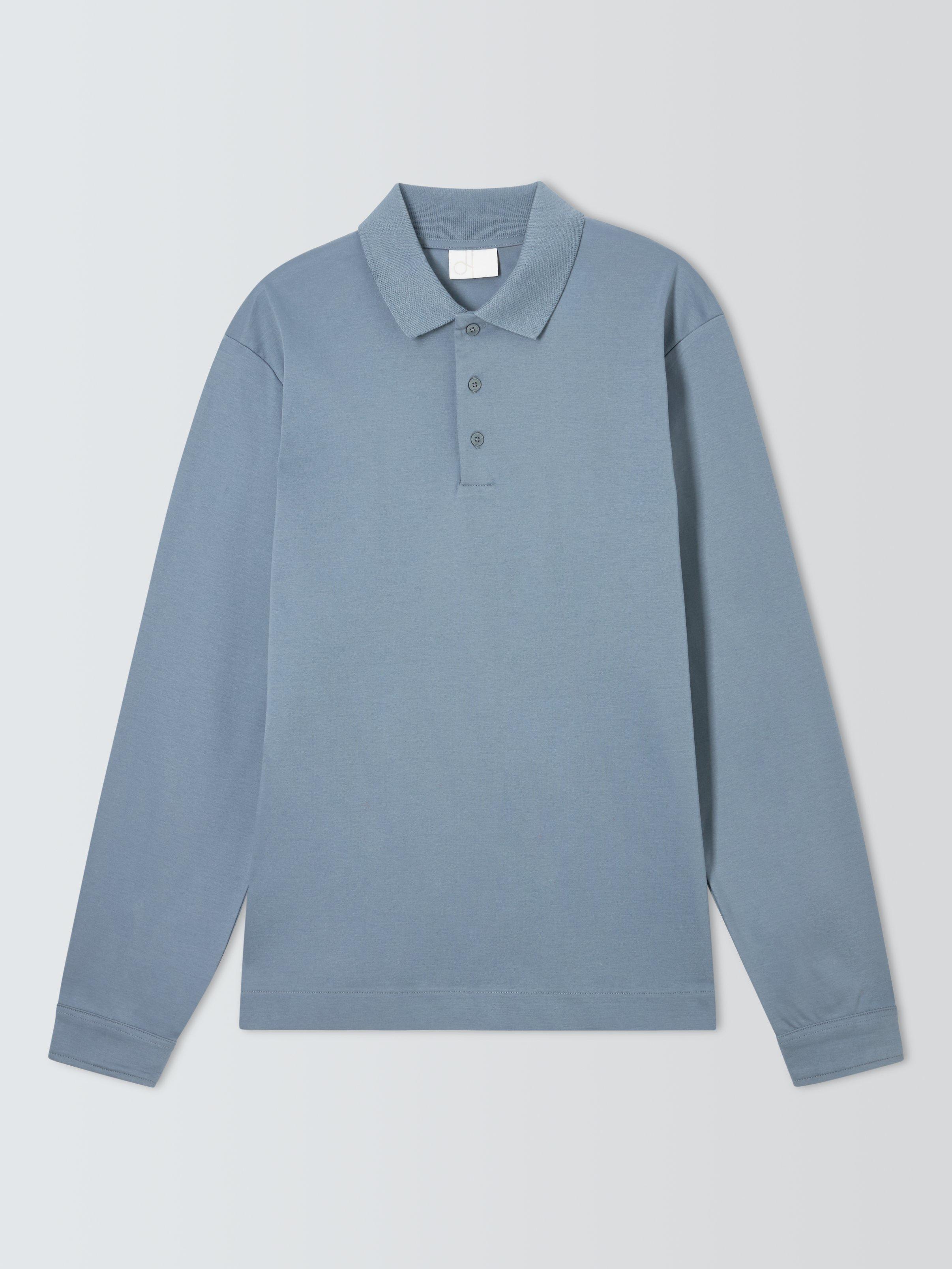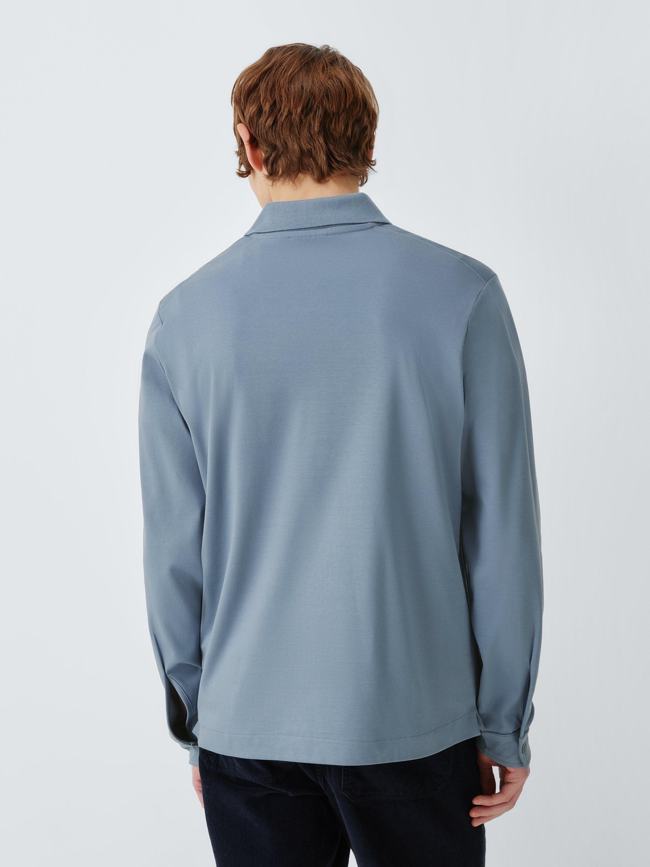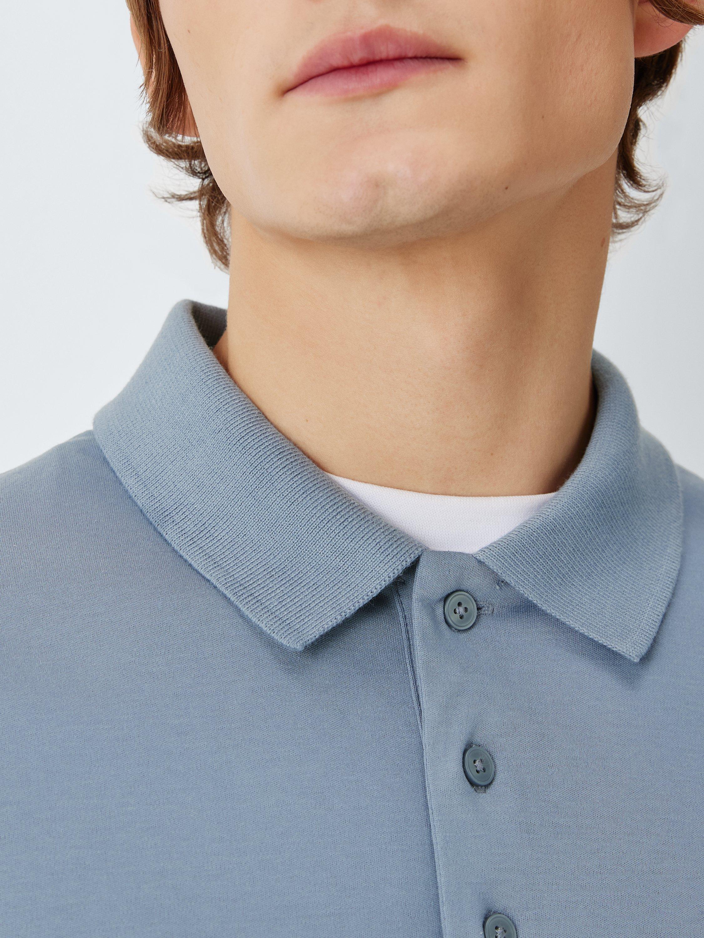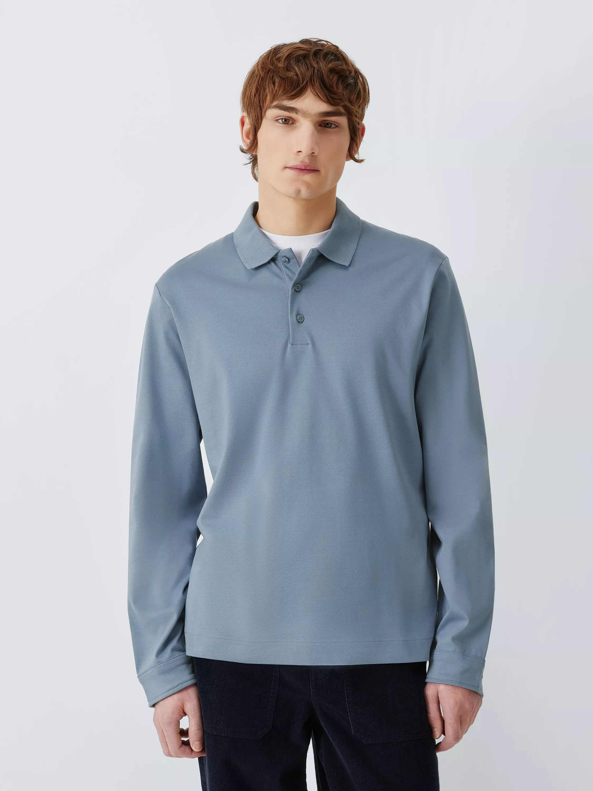 John LewisInterlock Cotton Long Sleeve Polo Shirt, Flint Stone