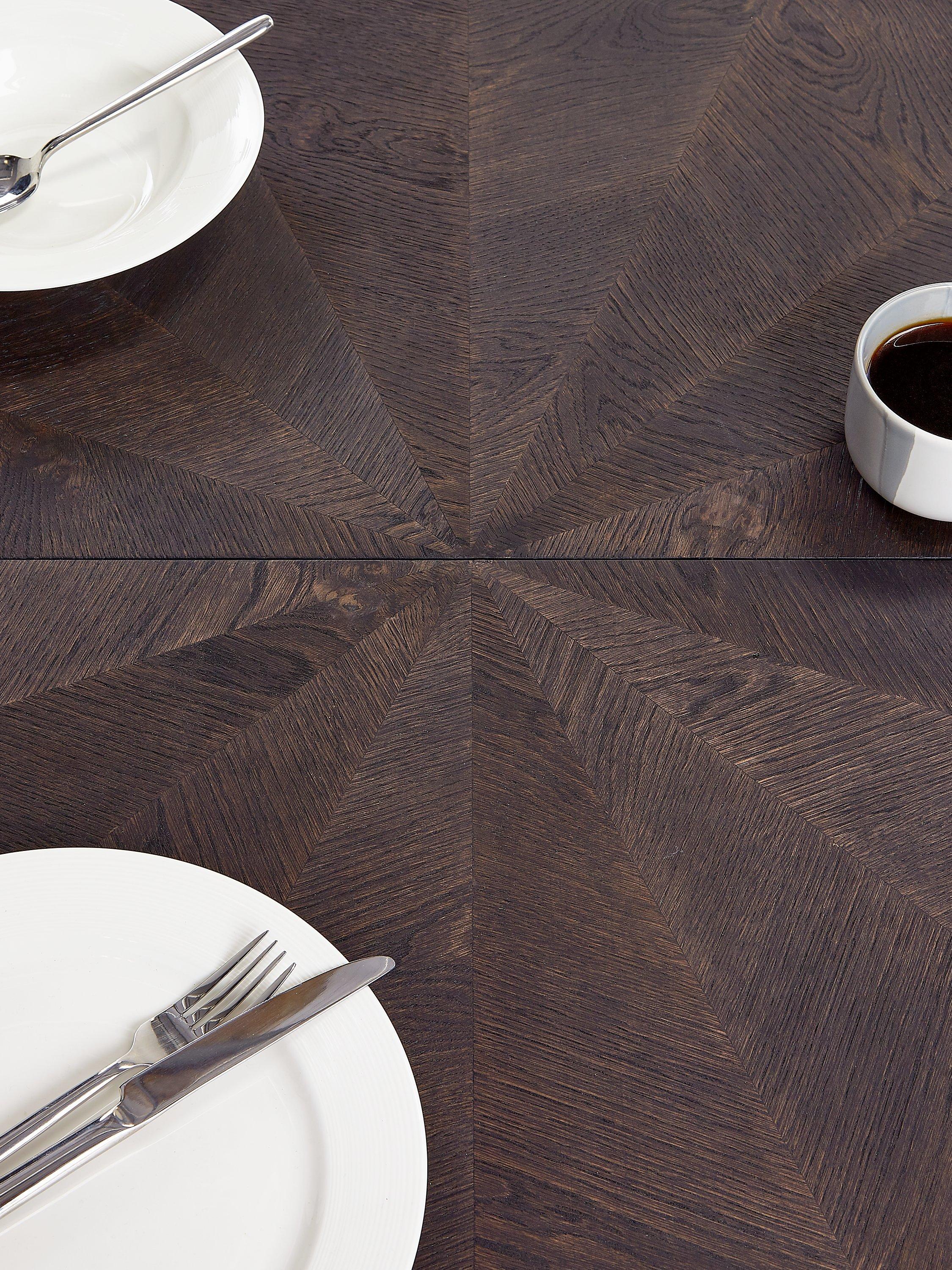 Made from European oak and rustic oak structured veneers, our Iona range of furniture highlights the beauty of natural materials. With grains and knots in the wood highlighted through a delicate inlaid chevron pattern, each piece is finished in a specialist matt lacquer and brushed out to keep the grain looking natural and dry.