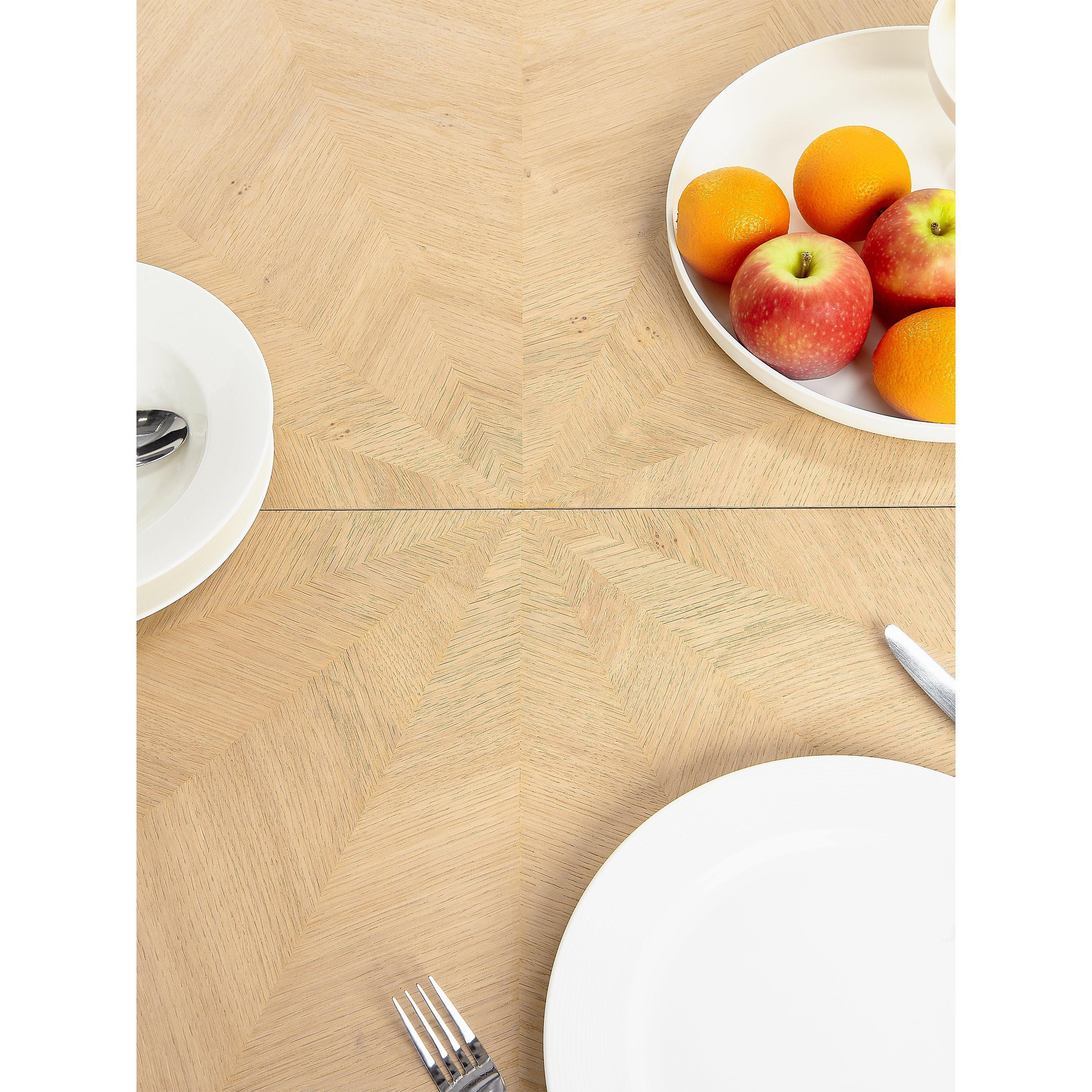 Made from European oak and rustic oak structured veneers, our Iona range of furniture highlights the beauty of natural materials. With grains and knots in the wood highlighted through a delicate inlaid chevron pattern, each piece is finished in a specialist matt lacquer and brushed out to keep the grain looking natural and dry.