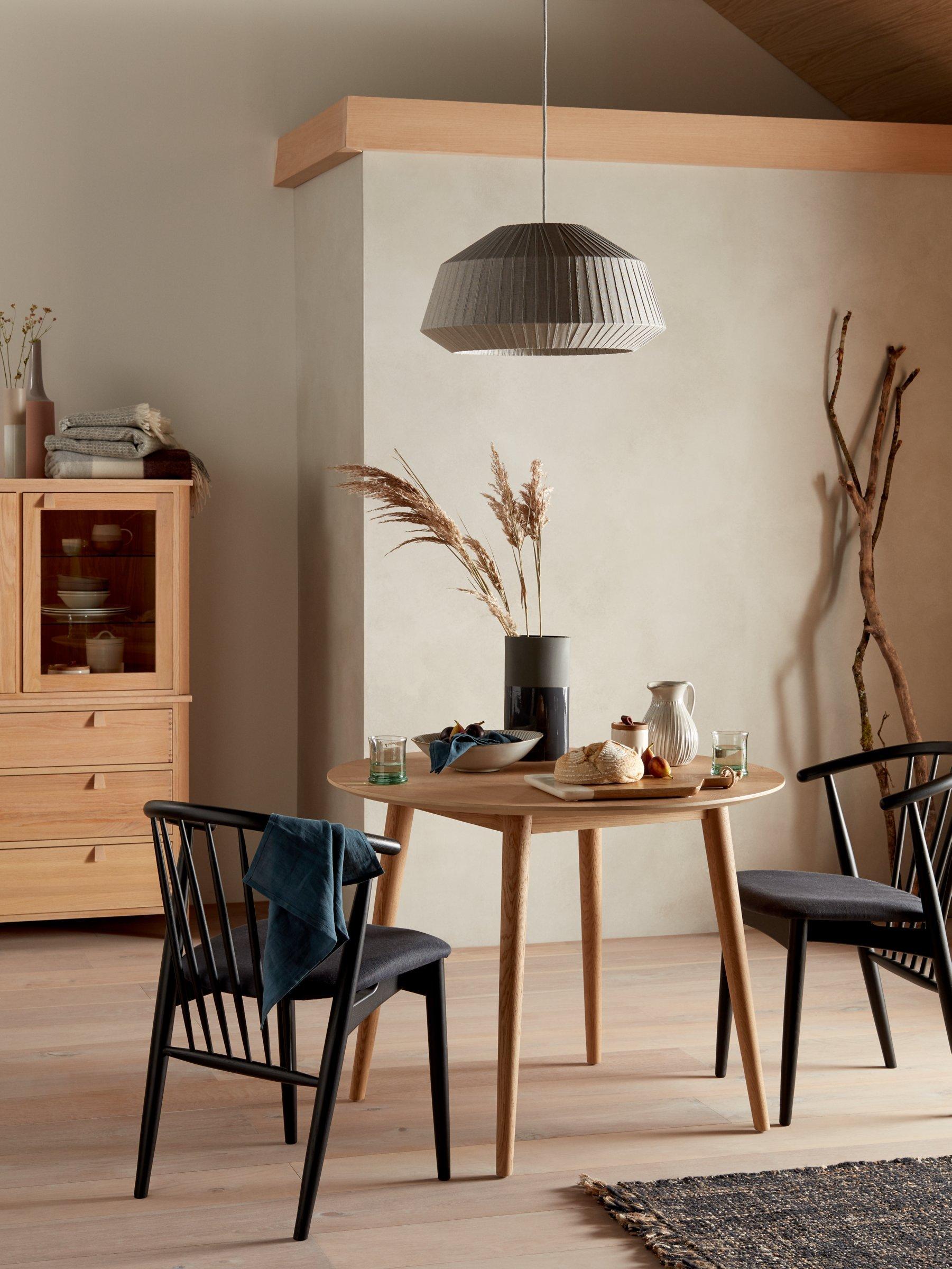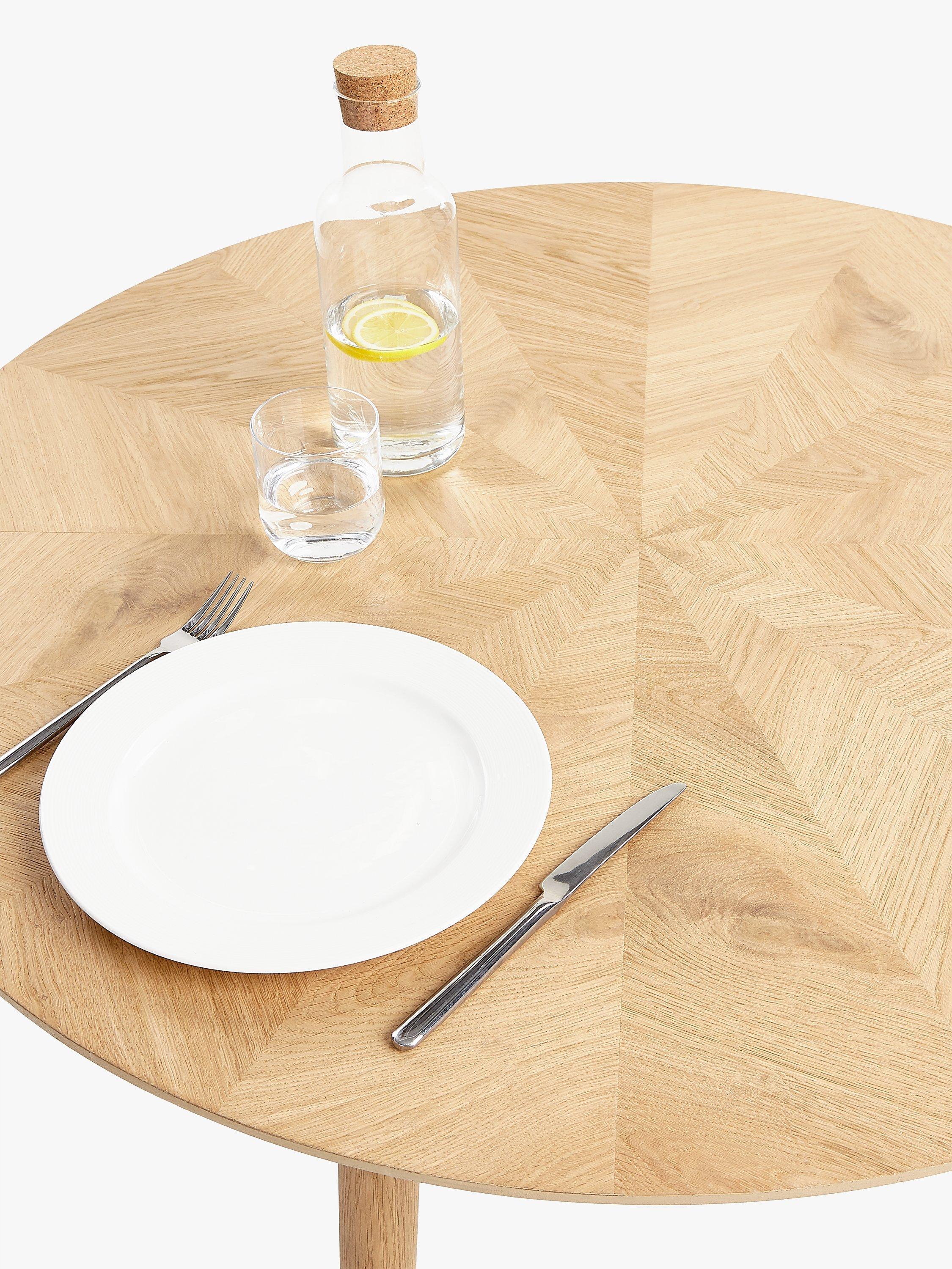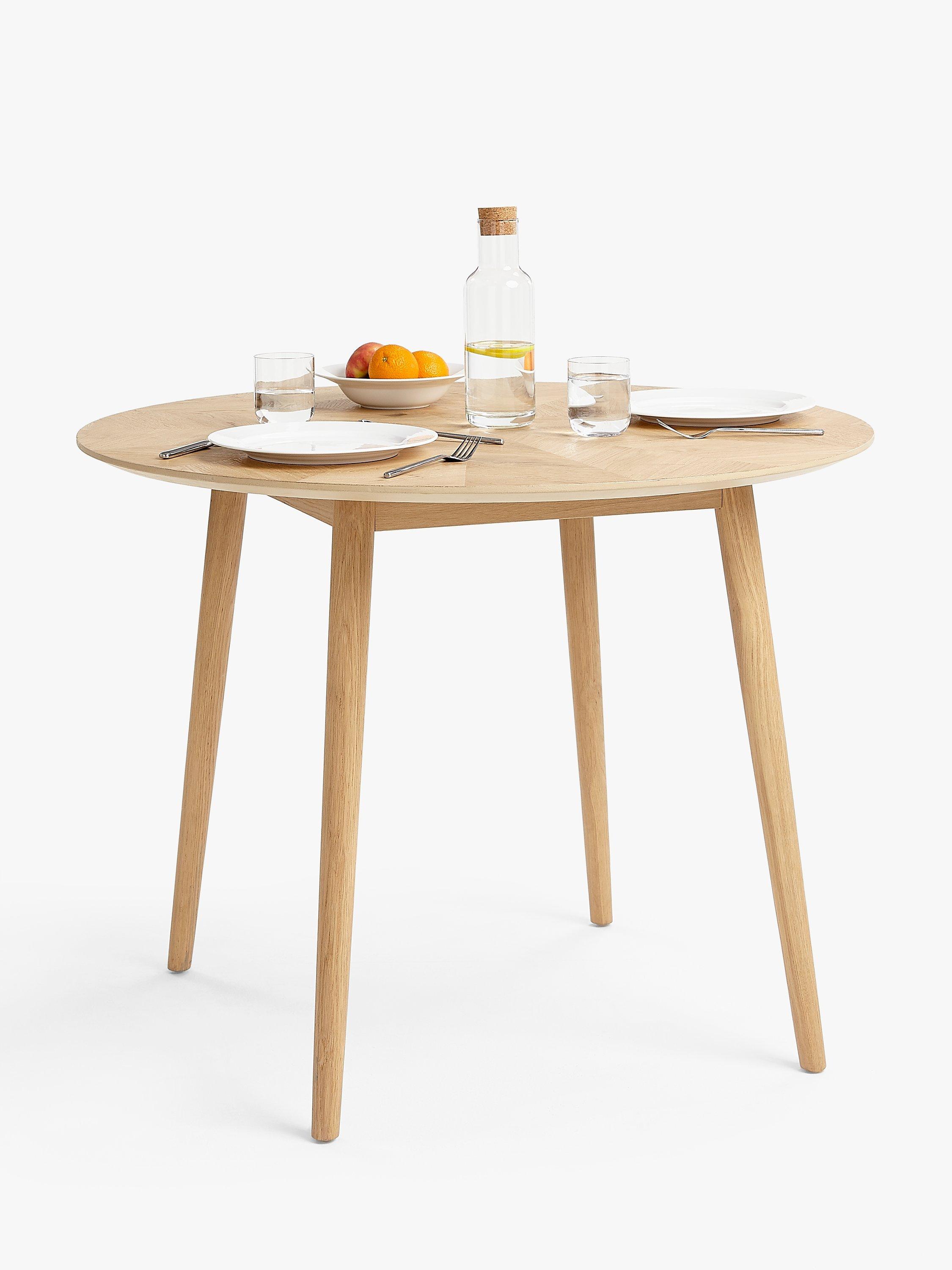 This round dining table offers seating for up to 4 diners. Splayed, rounded legs ensure a sturdy base.