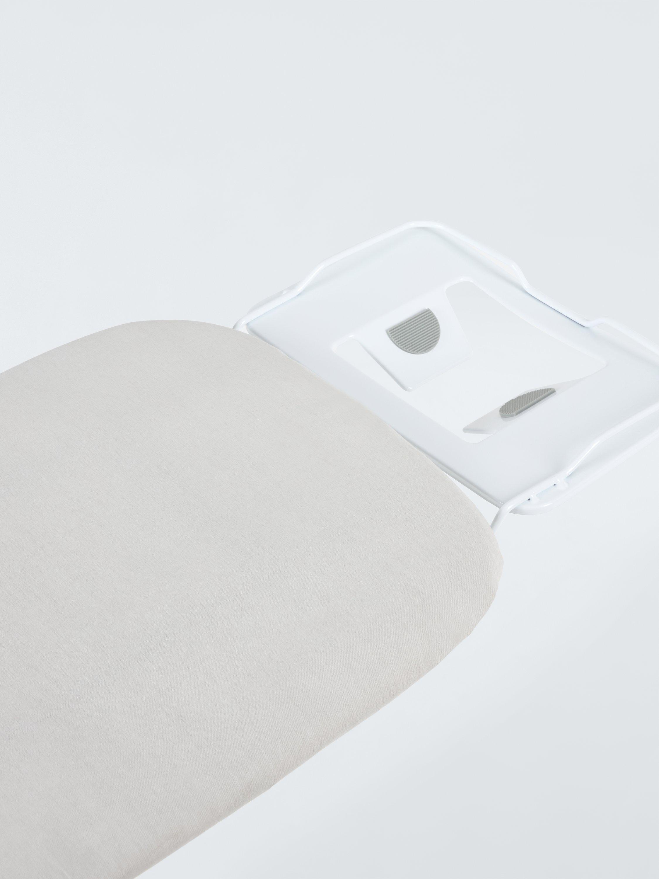 This ironing board is compact, lightweight and easy to carry and store. Adjustable through 4 different heights, it includes 7mm felt padding for smooth ironing and a cotton cover.