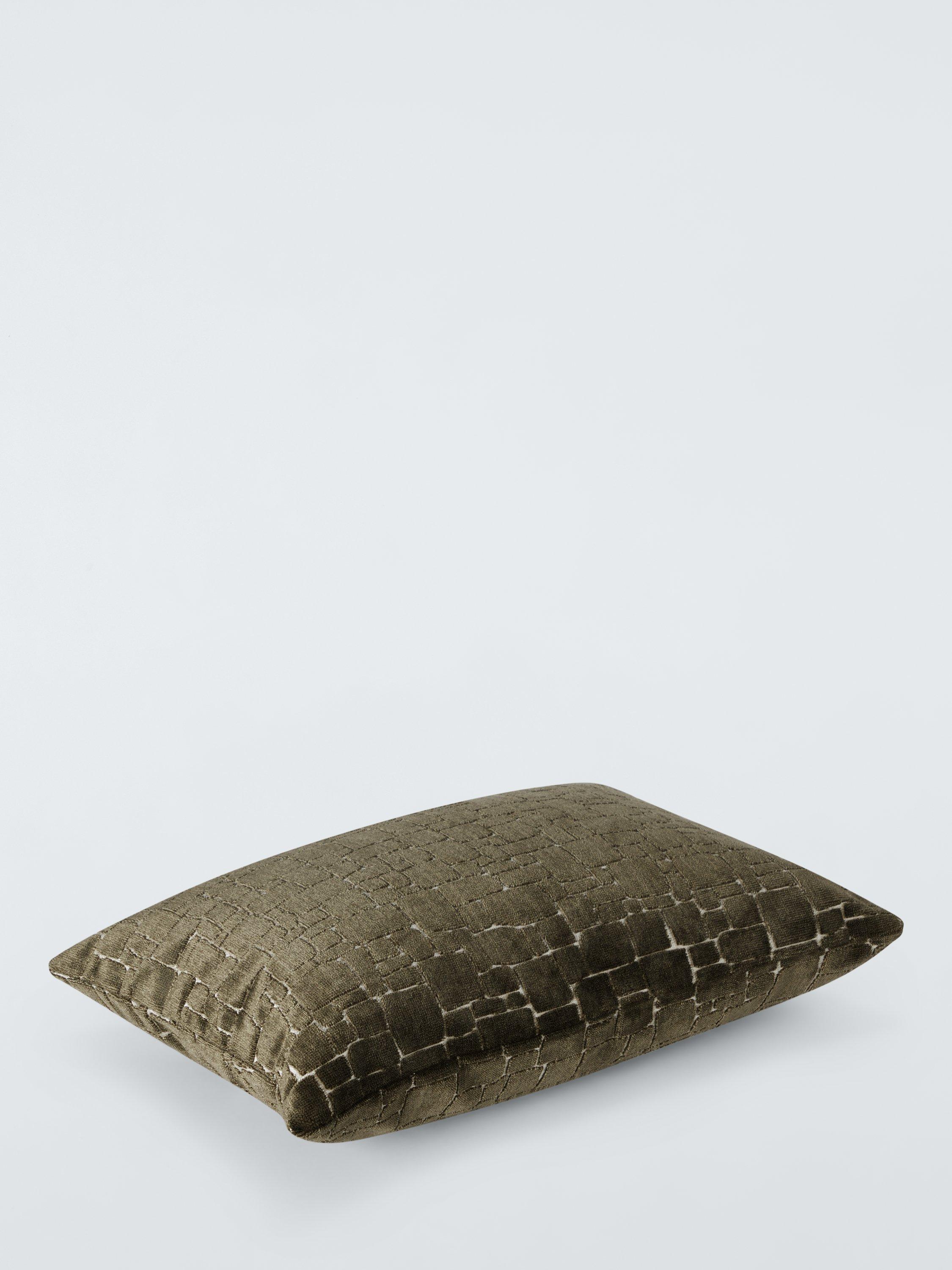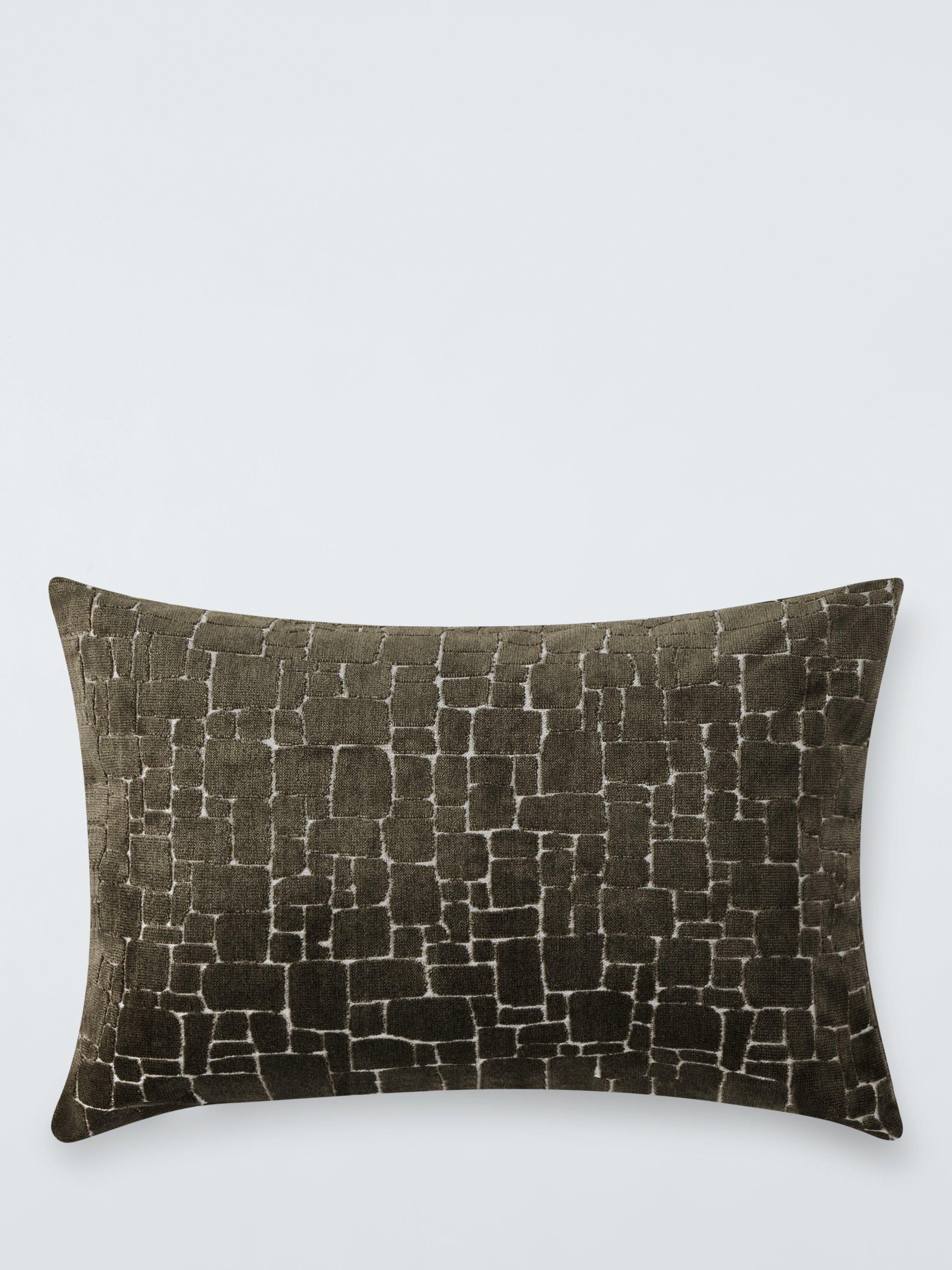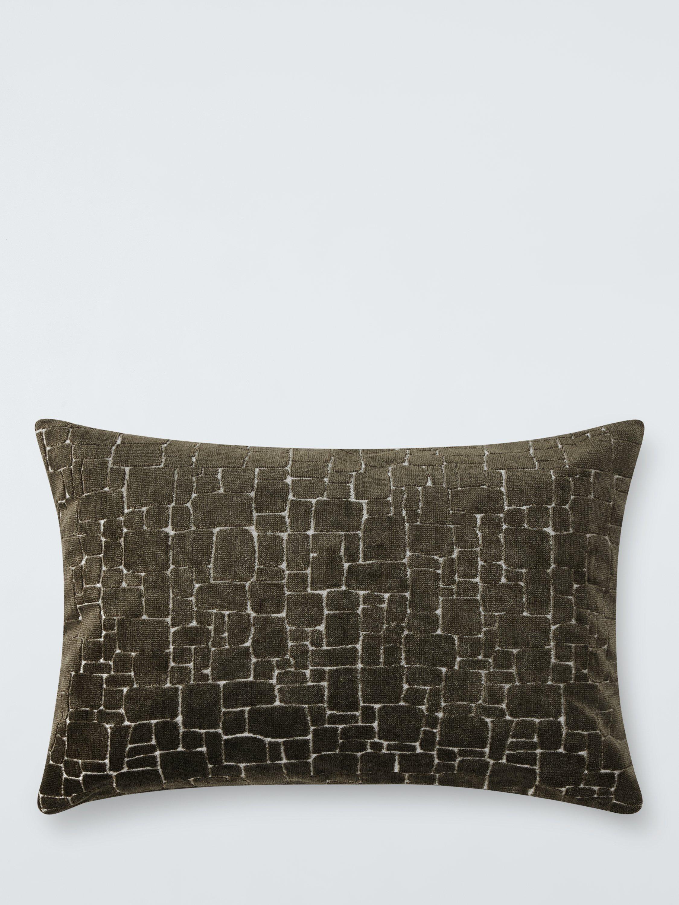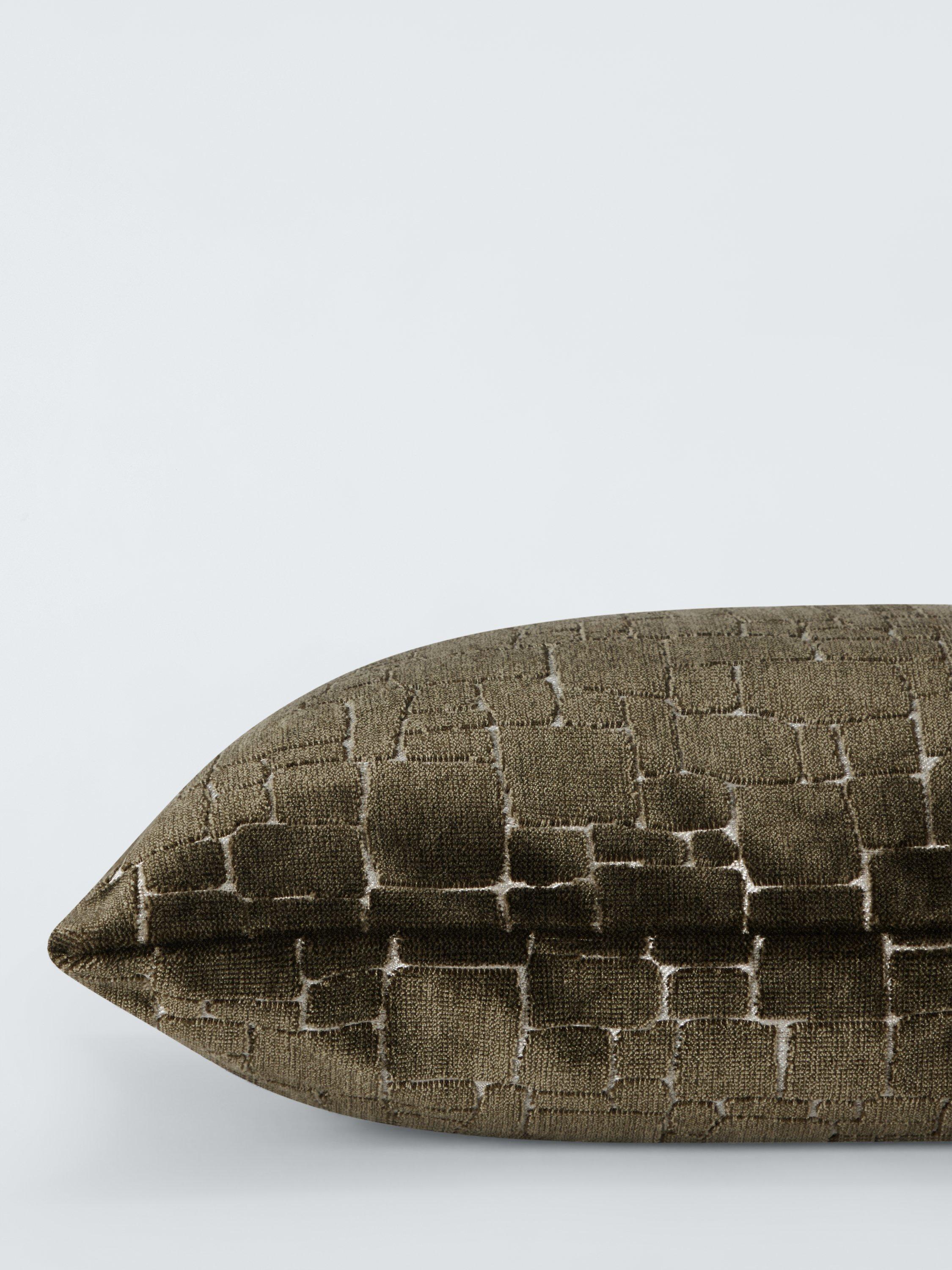 This plush polyester velvet cushion has a wonderfully tactile design of irregular block shapes cut into the pile.
