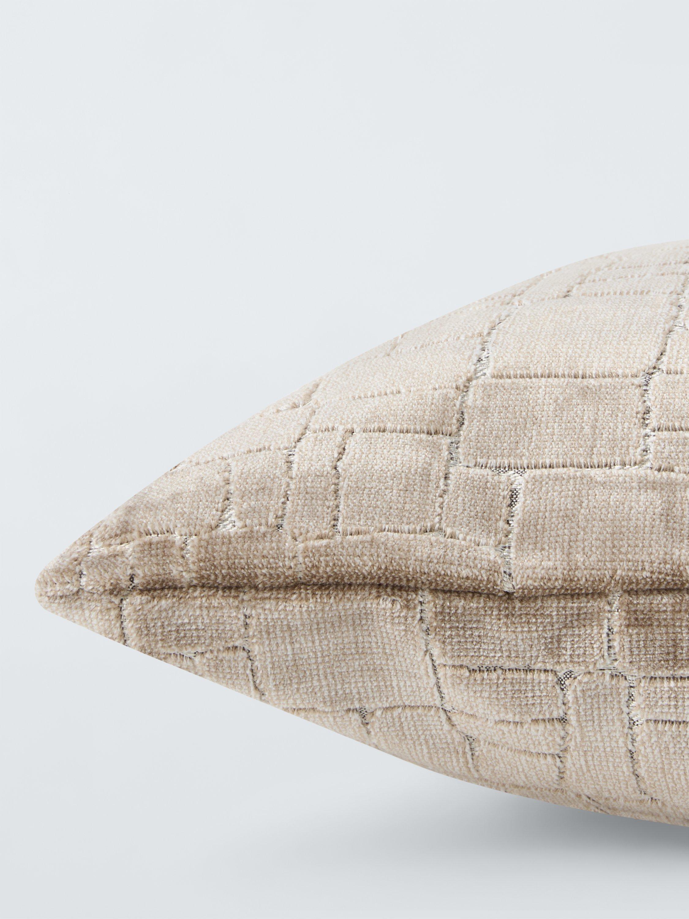 This plush polyester velvet cushion has a wonderfully tactile design of irregular block shapes cut into the pile.