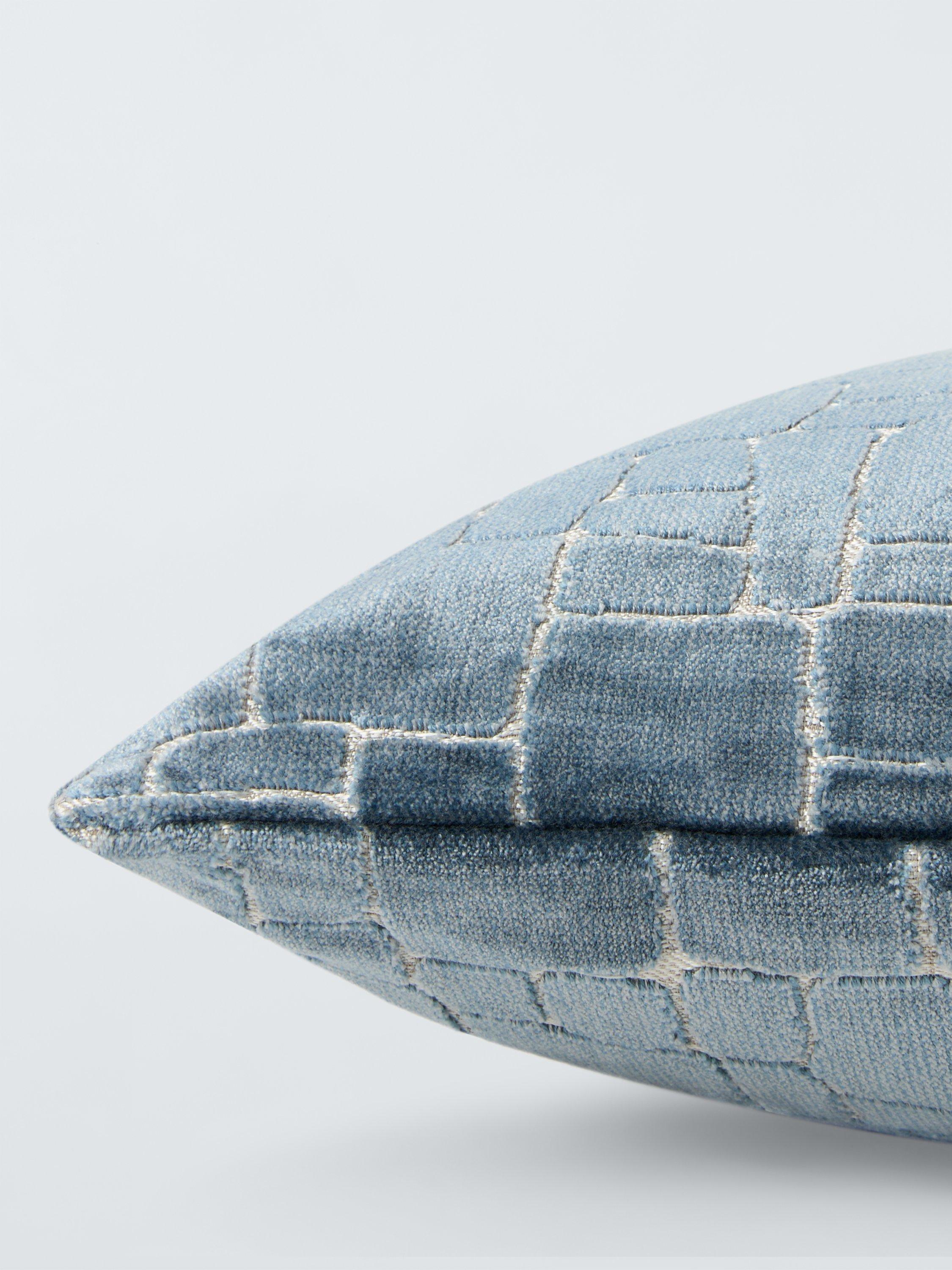 This plush polyester velvet cushion has a wonderfully tactile design of irregular block shapes cut into the pile.