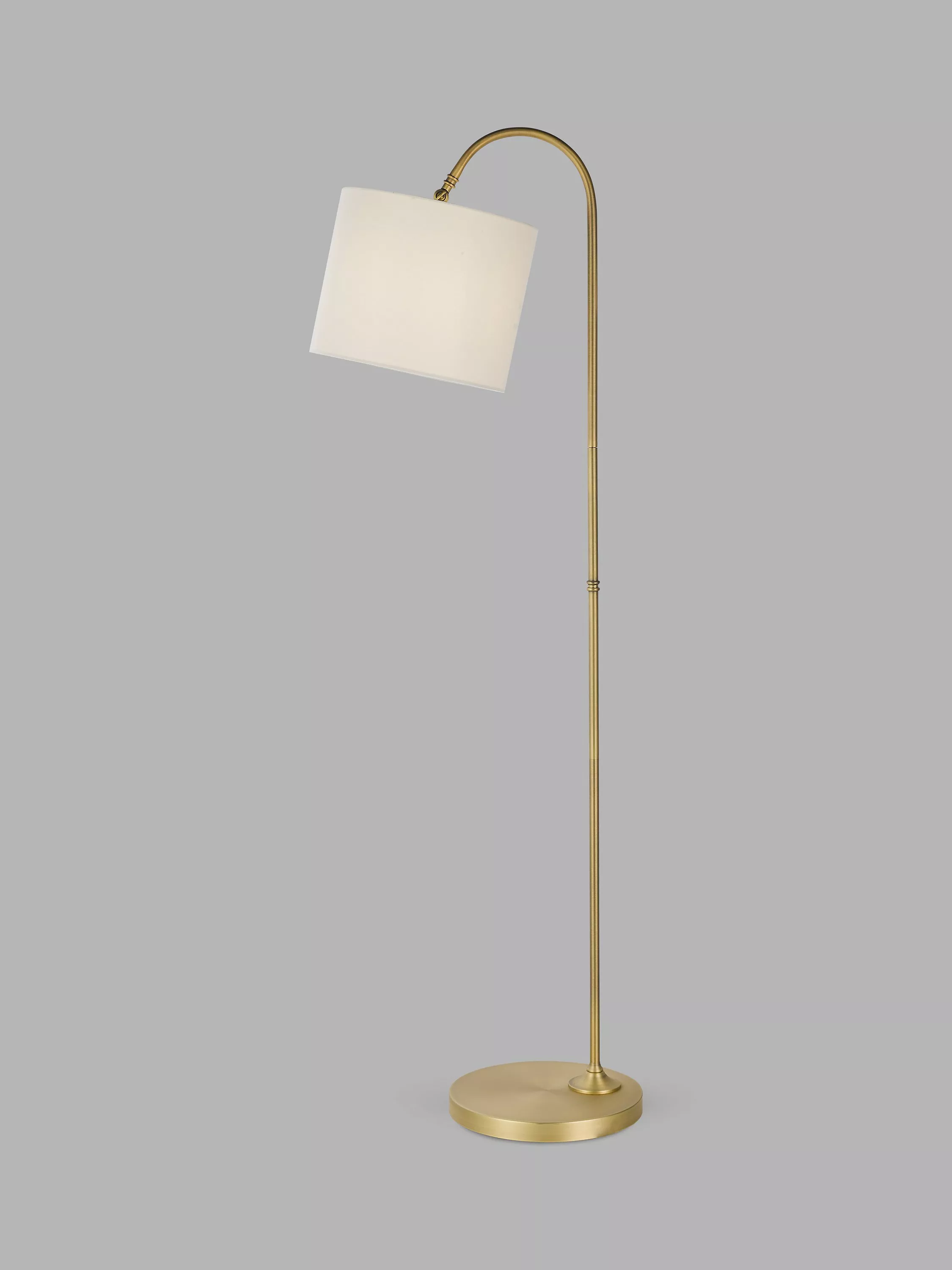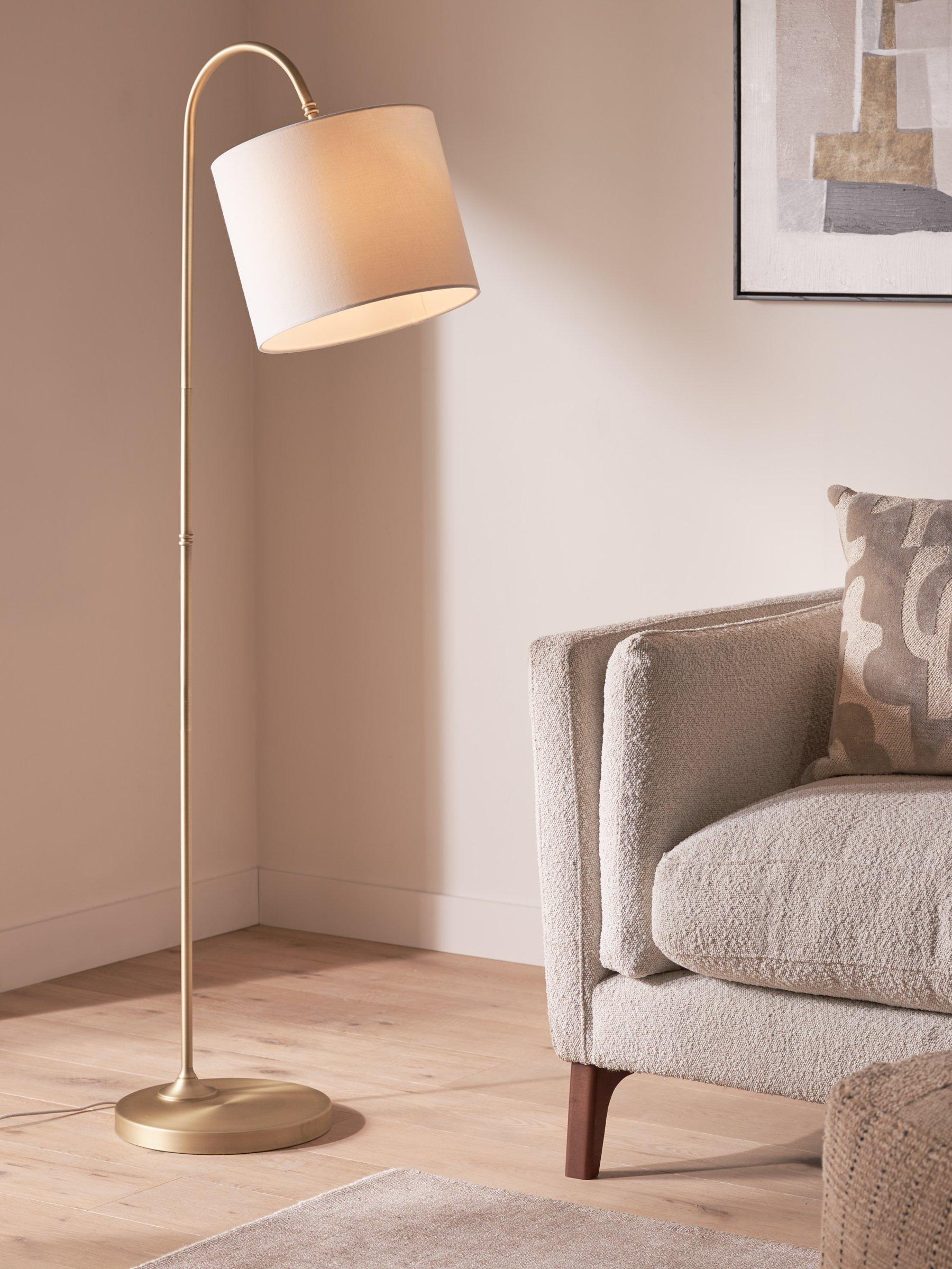 A sleek addition to your home, the Isabel's curved design means it's positioned perfectly to cast light where you need it. The round base and the soft metal finish enhances its modern look. A drum shaped shade makes this floor lamp a versatile and timeless option for your home.