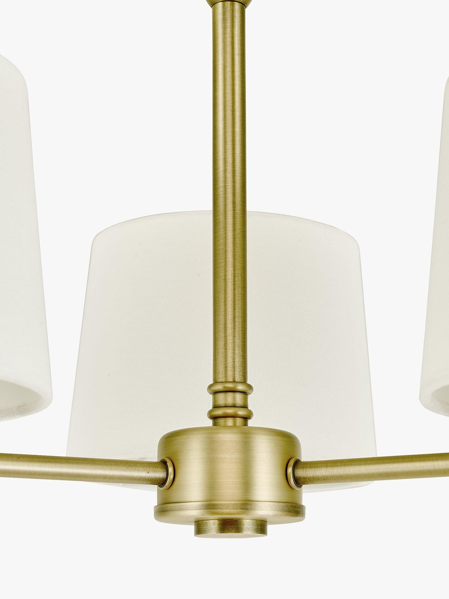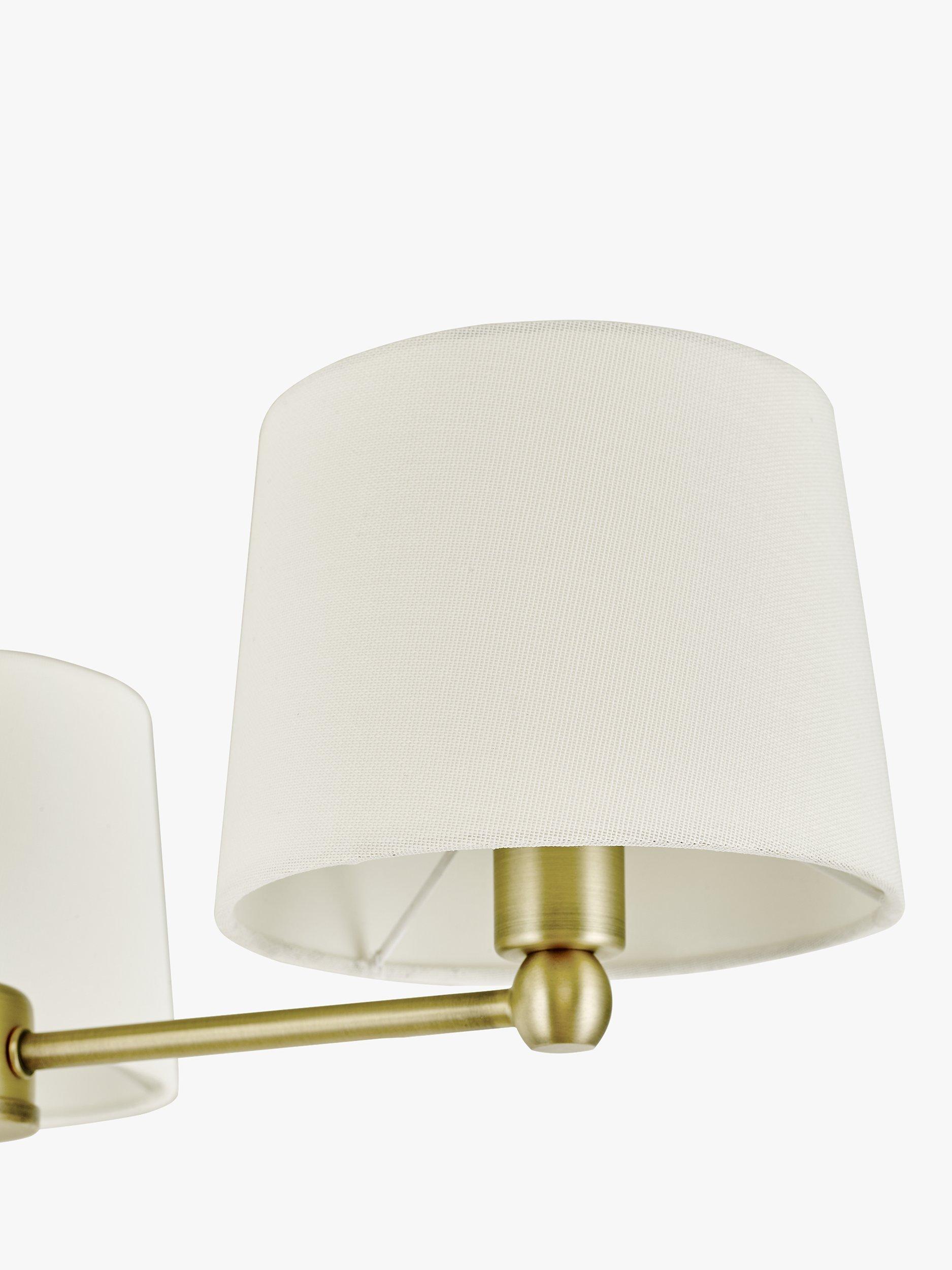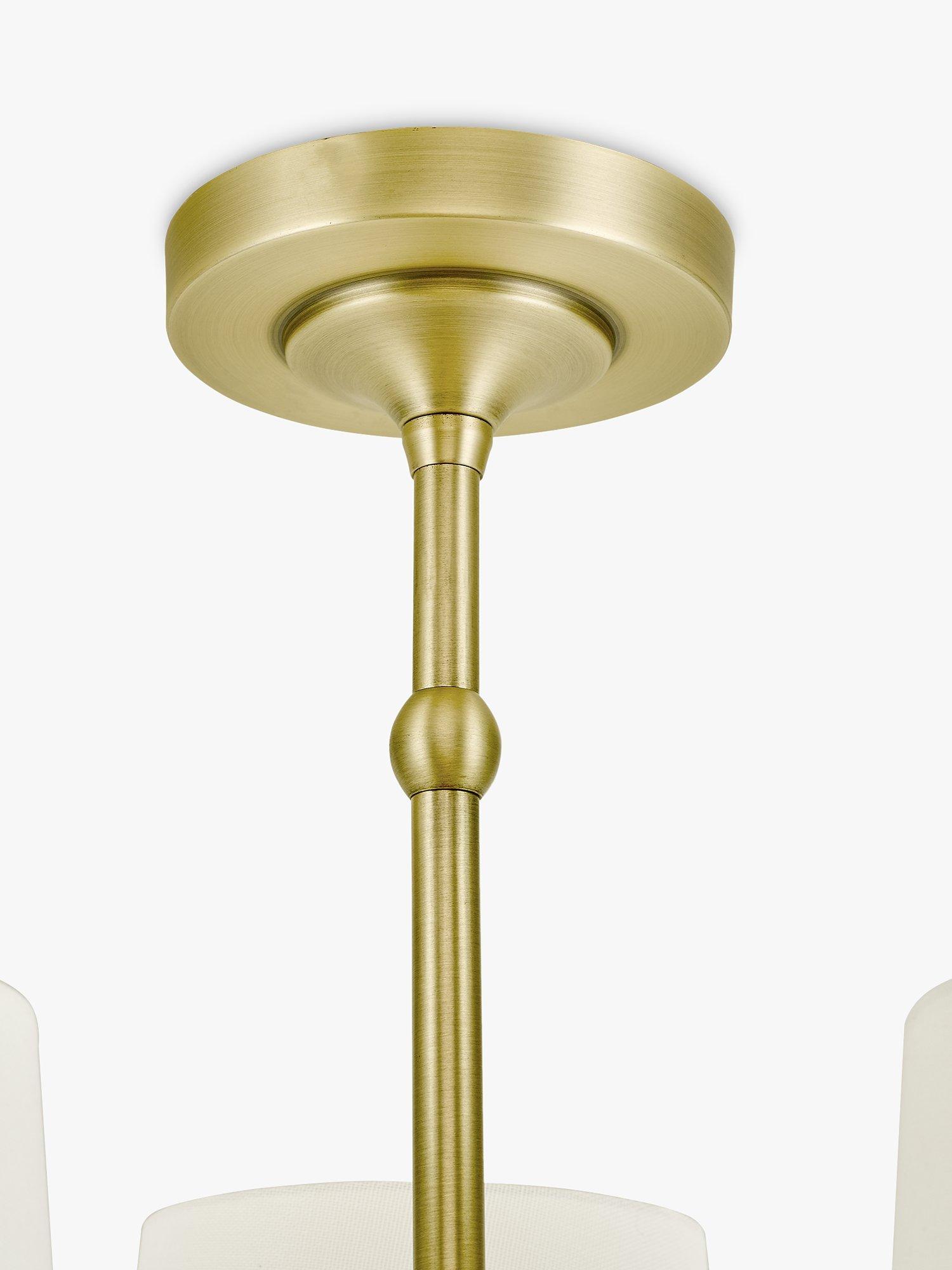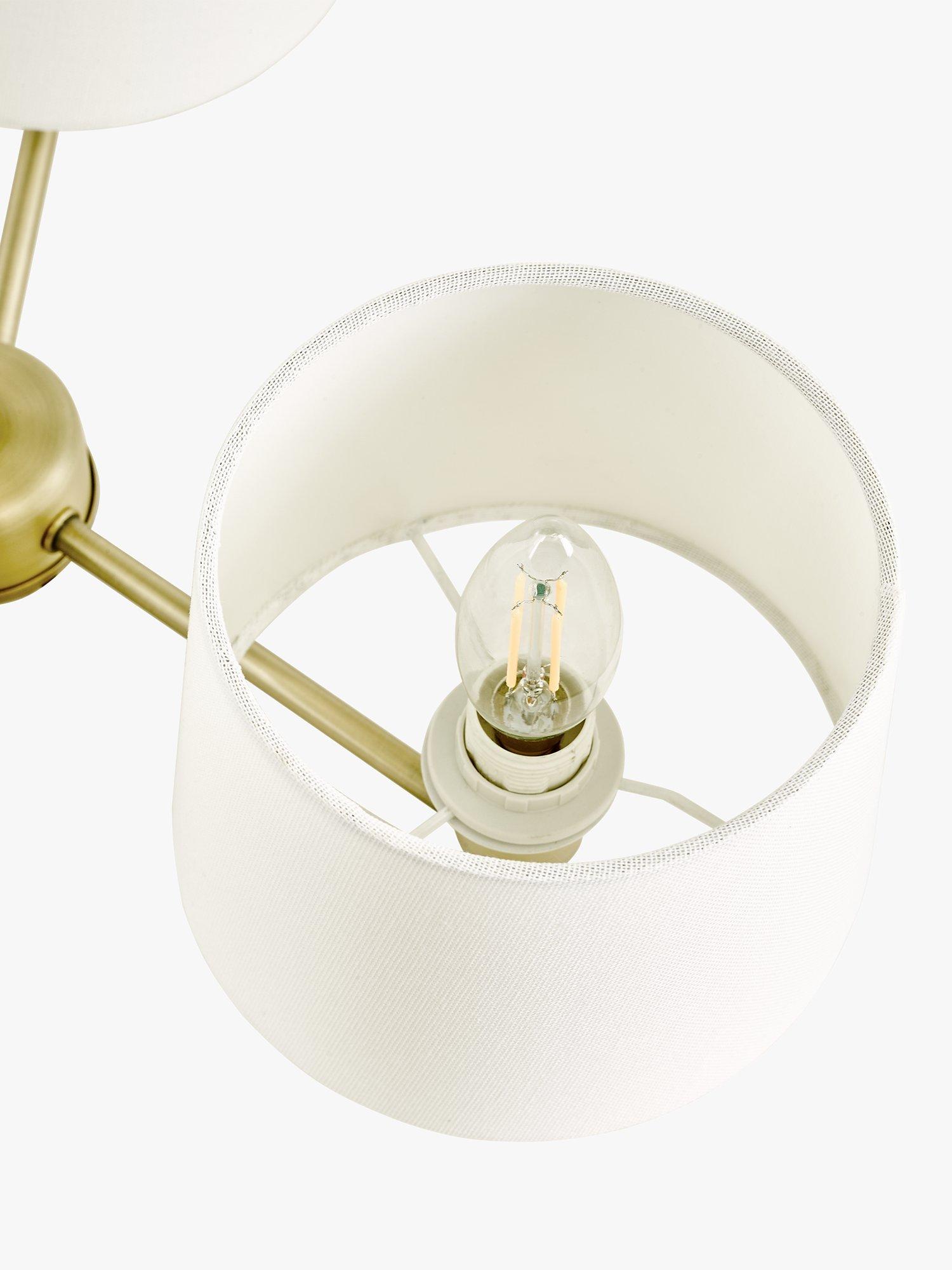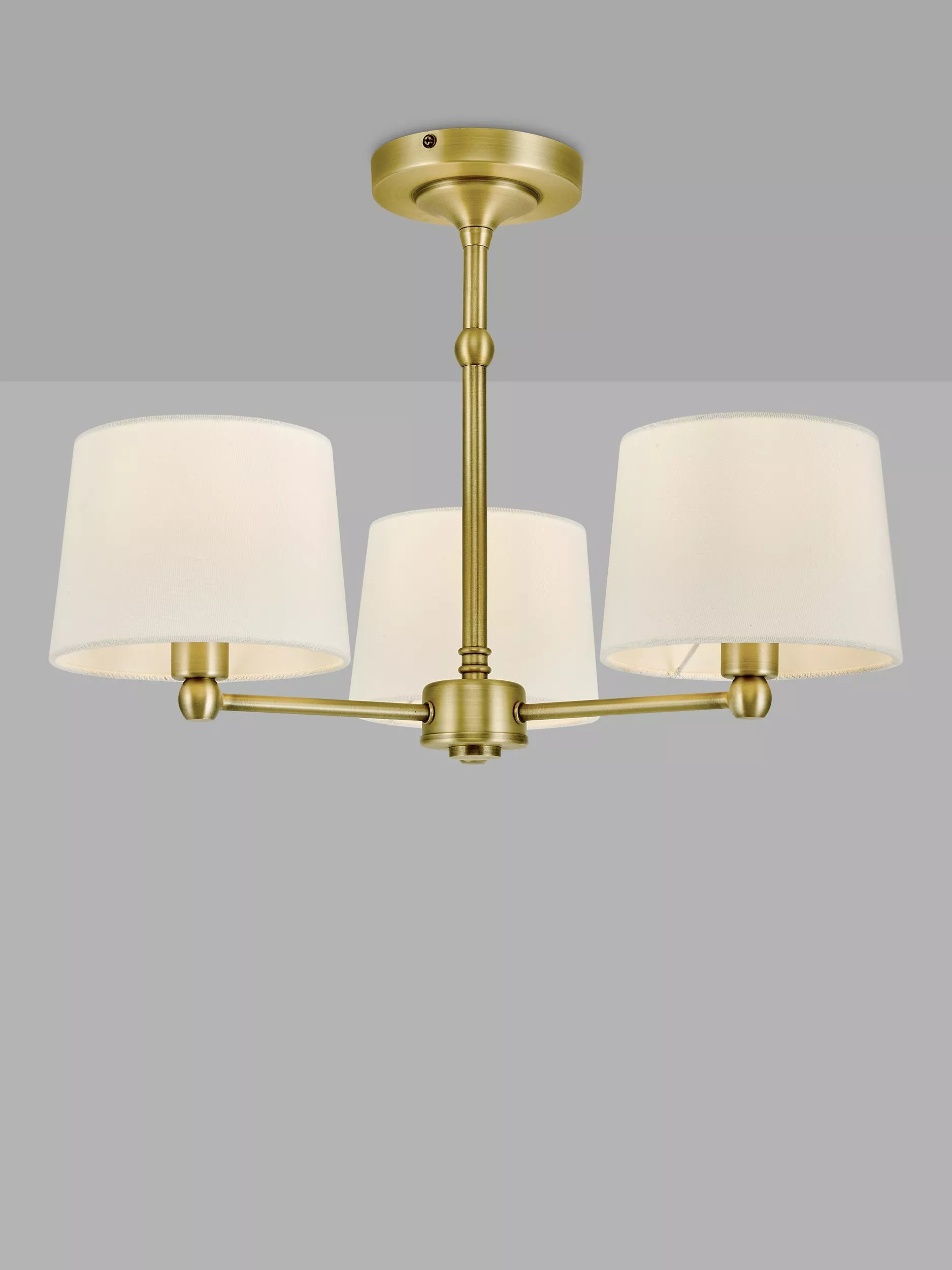 With a traditional design that won't date, this semi-flush ceiling light is a great option in rooms where low ceiling height may be an issue. Designed with three arms to cast light around your space, its natural linen lampshades add texture, charm and help to diffuse the light. Three LED bulbs are required.