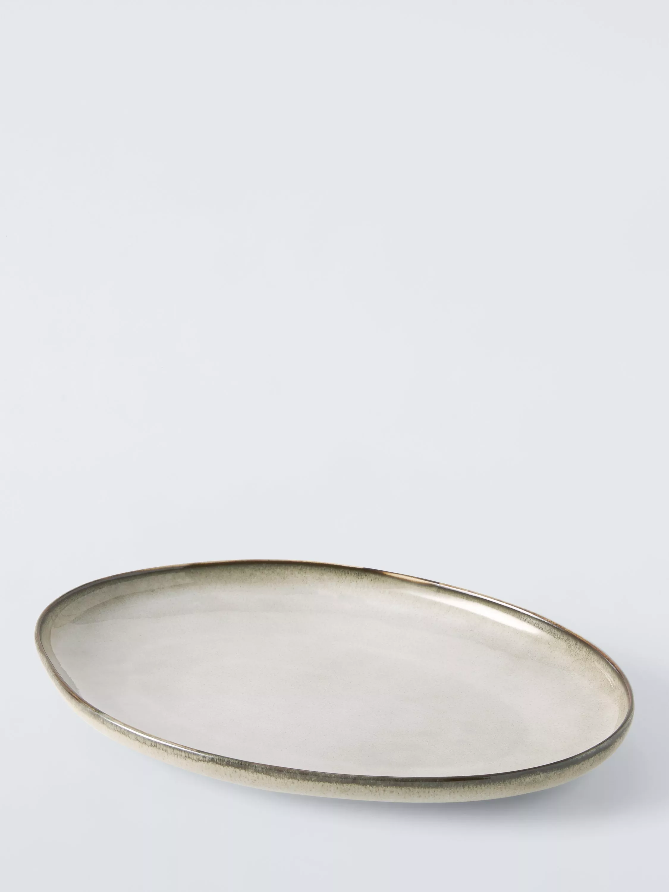 John LewisIver Reactive Glaze Oval Stoneware Platter, 33cm, Moonlight