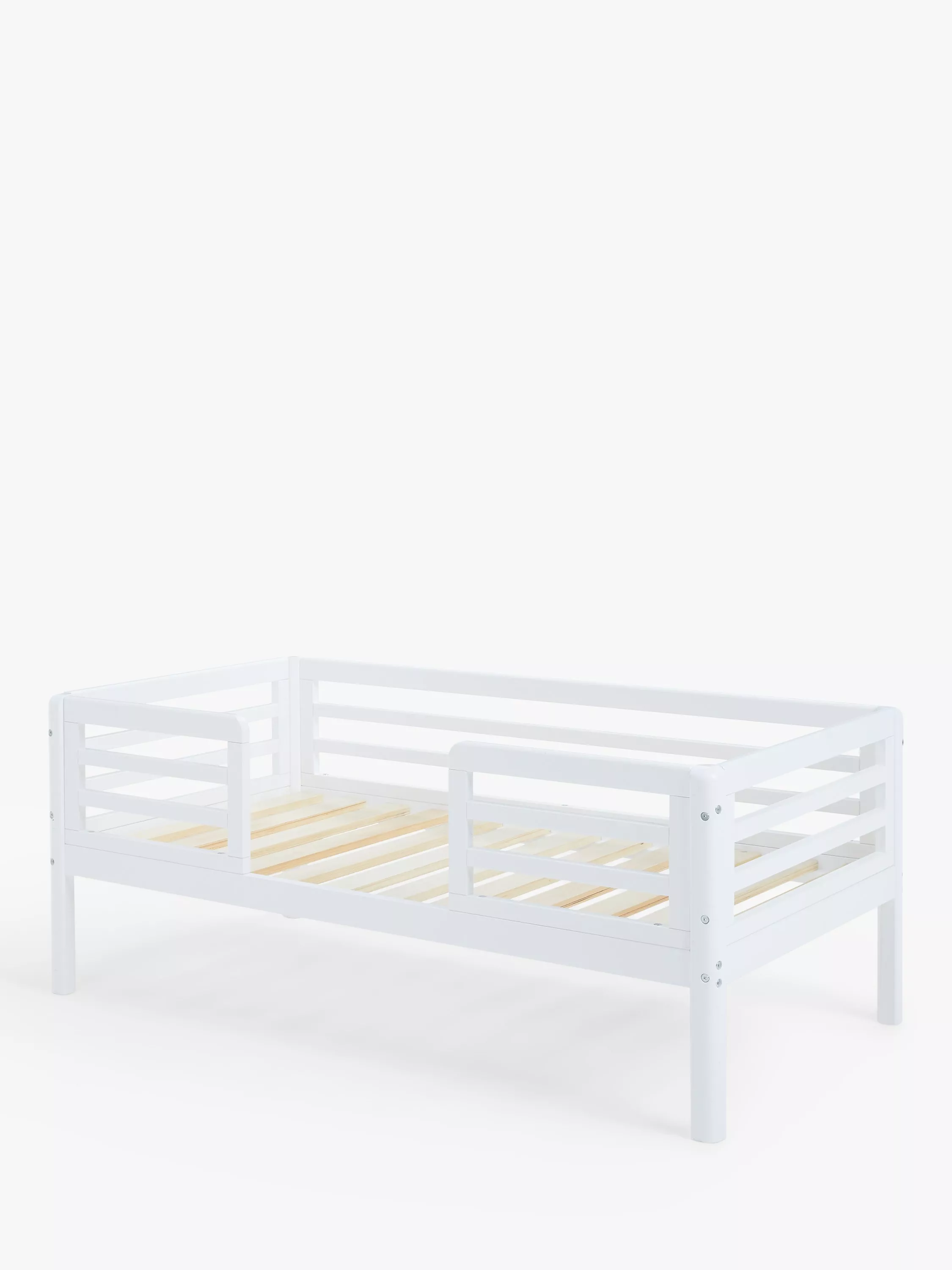 Made with traditional slats, this toddler bed makes a great addition to any bedroom. Thoughtfully designed with little rollers in mind, the bed has elevated sides to ensure there are no accidental falls out of bed. The combination of natural wood and painted finish makes this bed attractive and as well as practical.