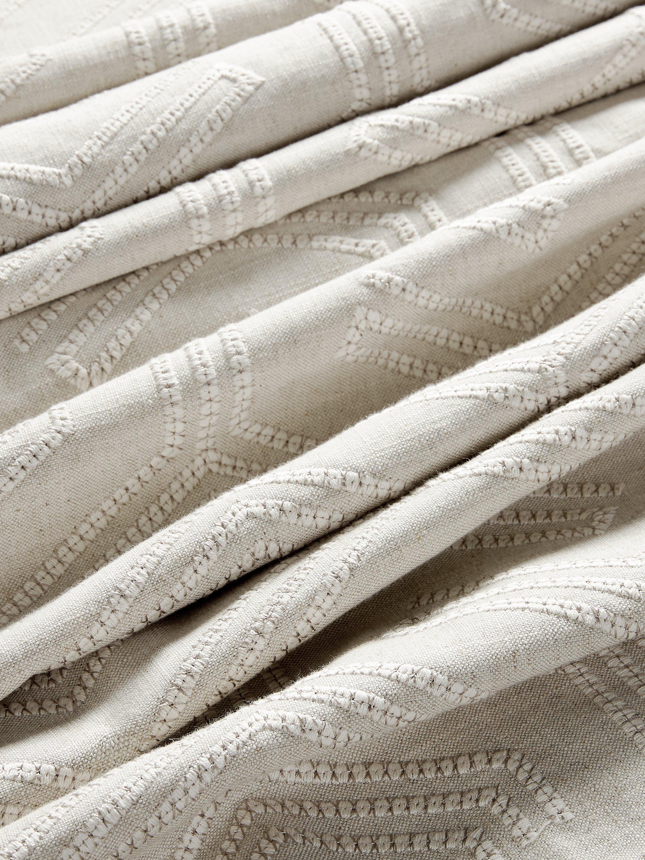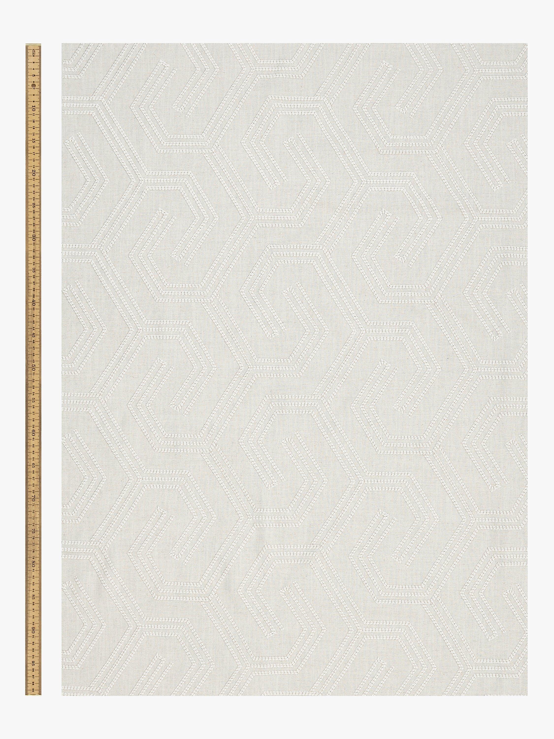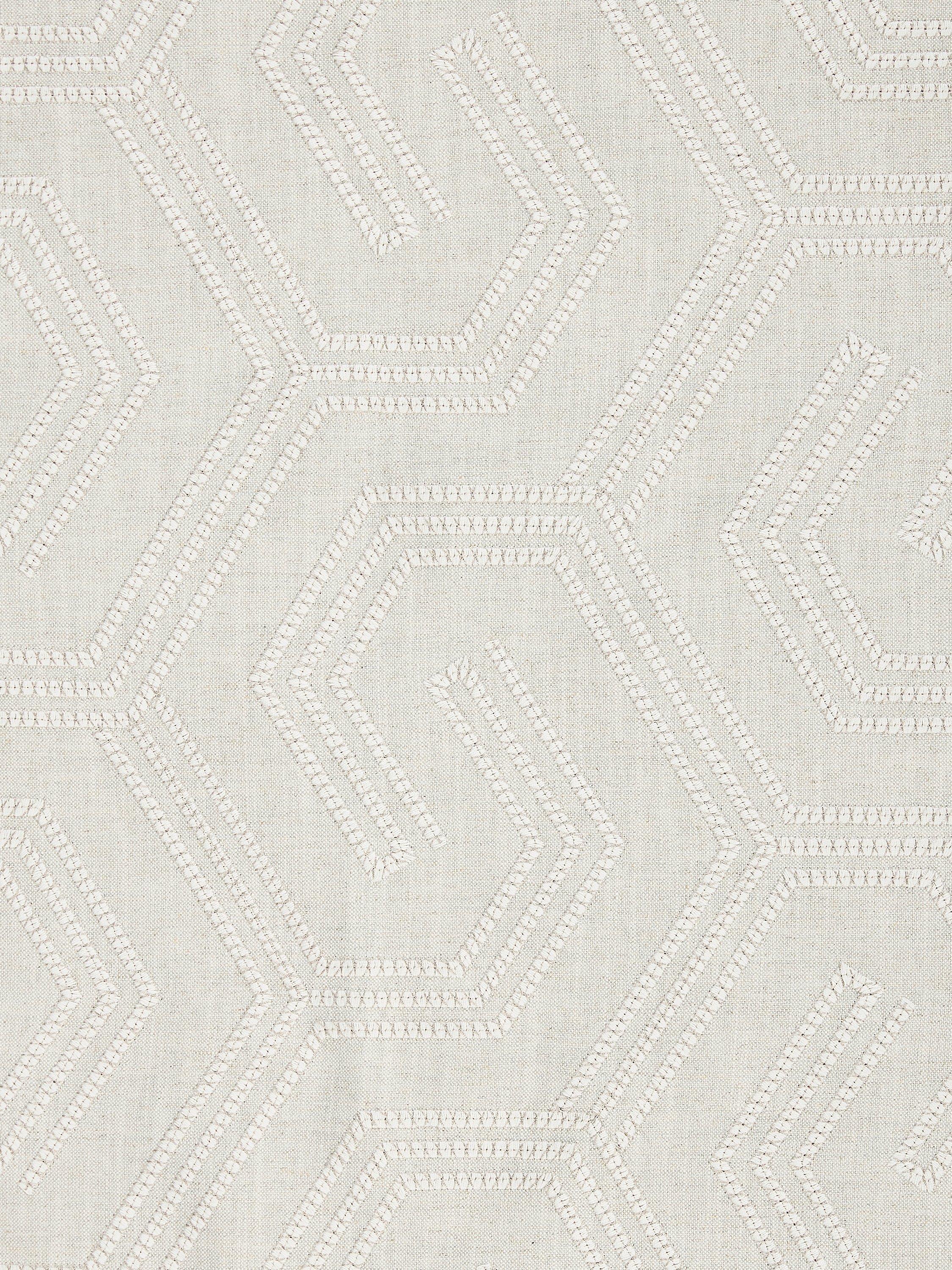 Our Izel Embroidery fabric adds subtle texture with its mazy geometric design.