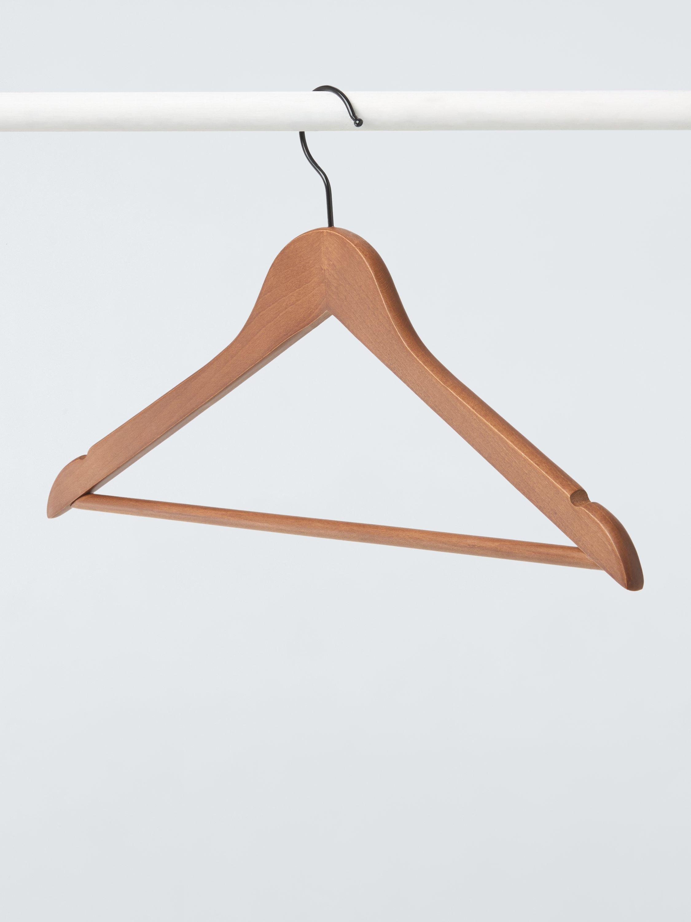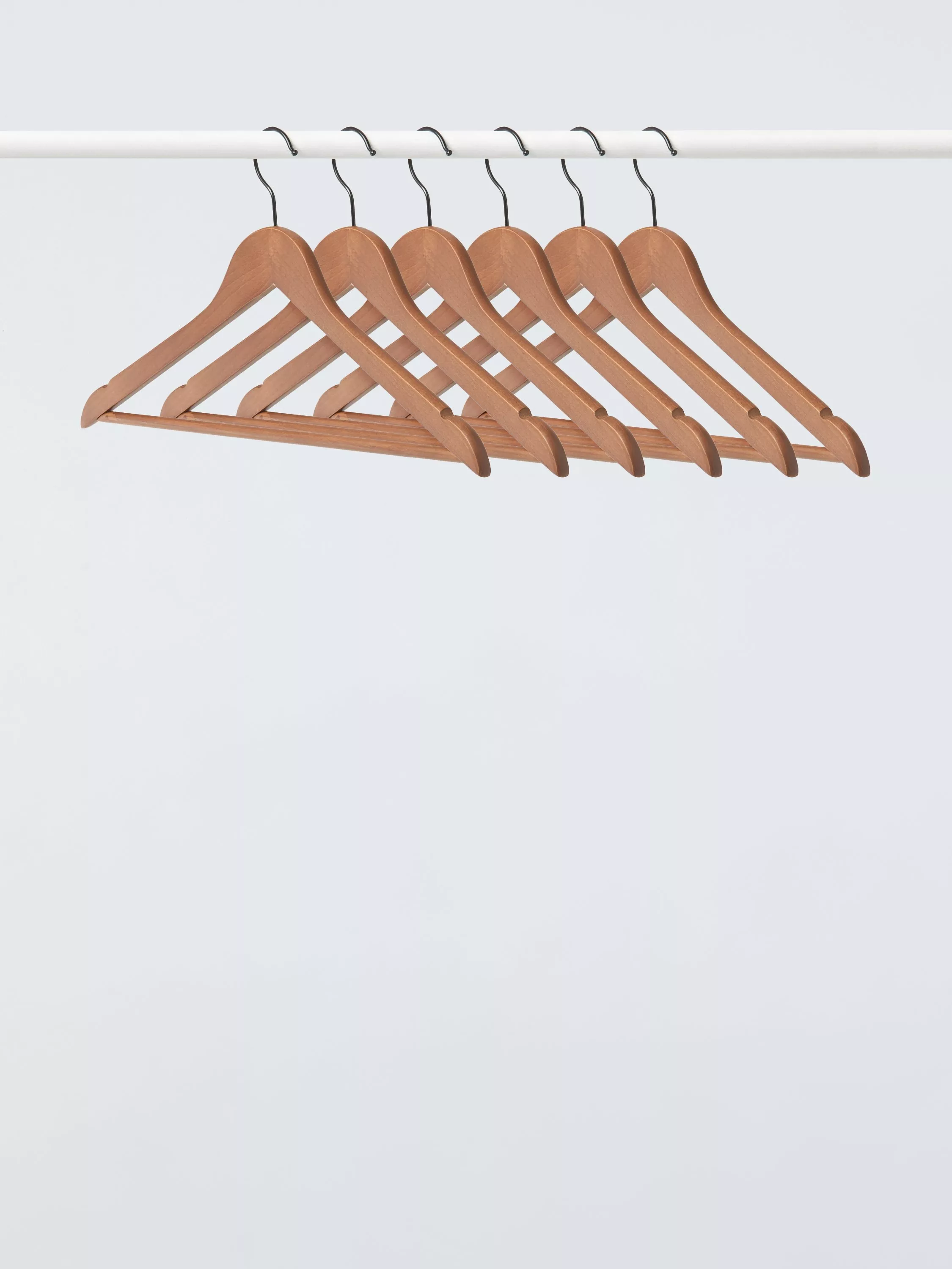 A pack of 6 jacket or suit hangers made from FSC beech wood with a dark stain.