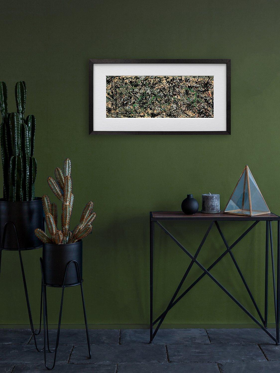 With a fervent energy and inventiveness, this abstract artwork by Jackson Pollock features bold shapes and colours intermingling to create an image that is as thought-provoking as it is dramatic. An eye-catching reminder of the power and vitality of the work of one of the 20th century's great abstract artists. This print comes presented in a black wood frame that perfectly complements the black colours of the picture within.
