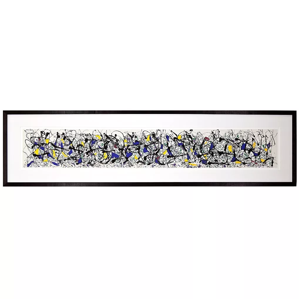 Bursting with colour and energy, this Jackson Pollock print is an eye-catching reminder of the power and vitality of the work of one of the 20th century's great abstract artists. This captivating picture comes presented in a black wood frame that perfectly complements the colour palette of the image within.