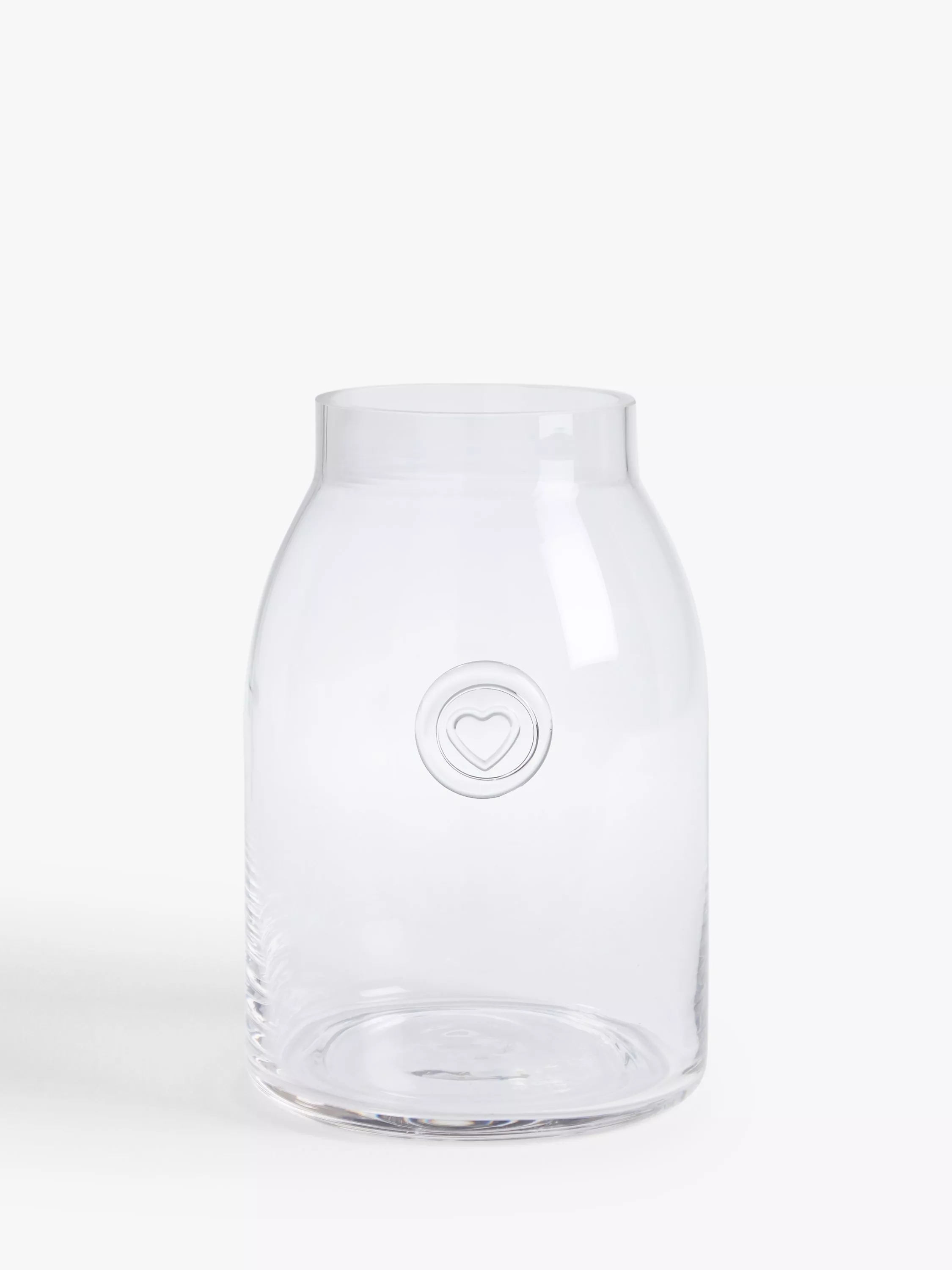 Our simple Jam Jar vase is made from hand-blown glass and has a heart seal decoration for a sweet touch.