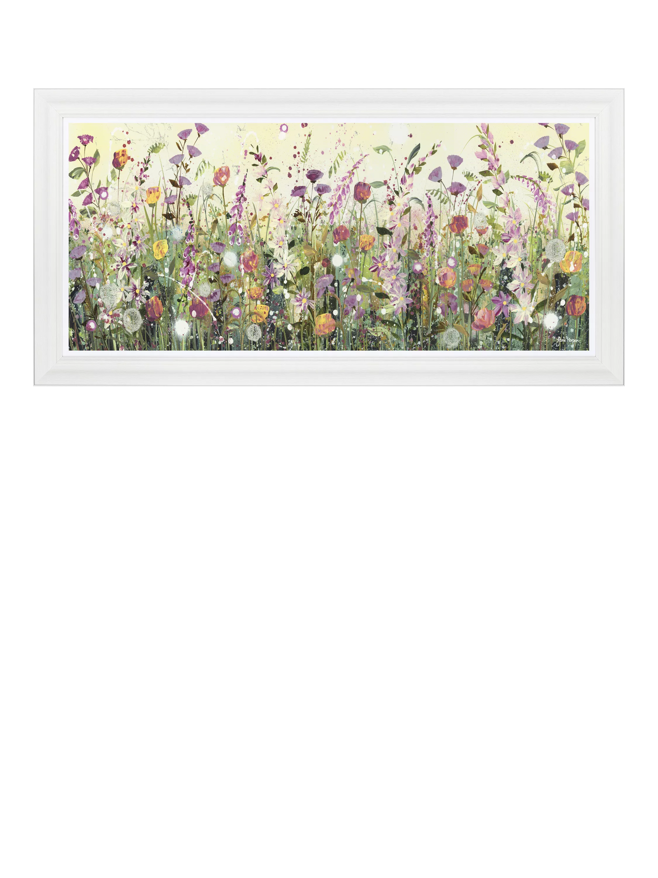 Colourful florals by artist Jane Morgan. Made in the UK, framed, unglazed and finished with an artist's acrylic texturing medium, creating a subtle texture on the surface. Arrives ready to hang on your wall.