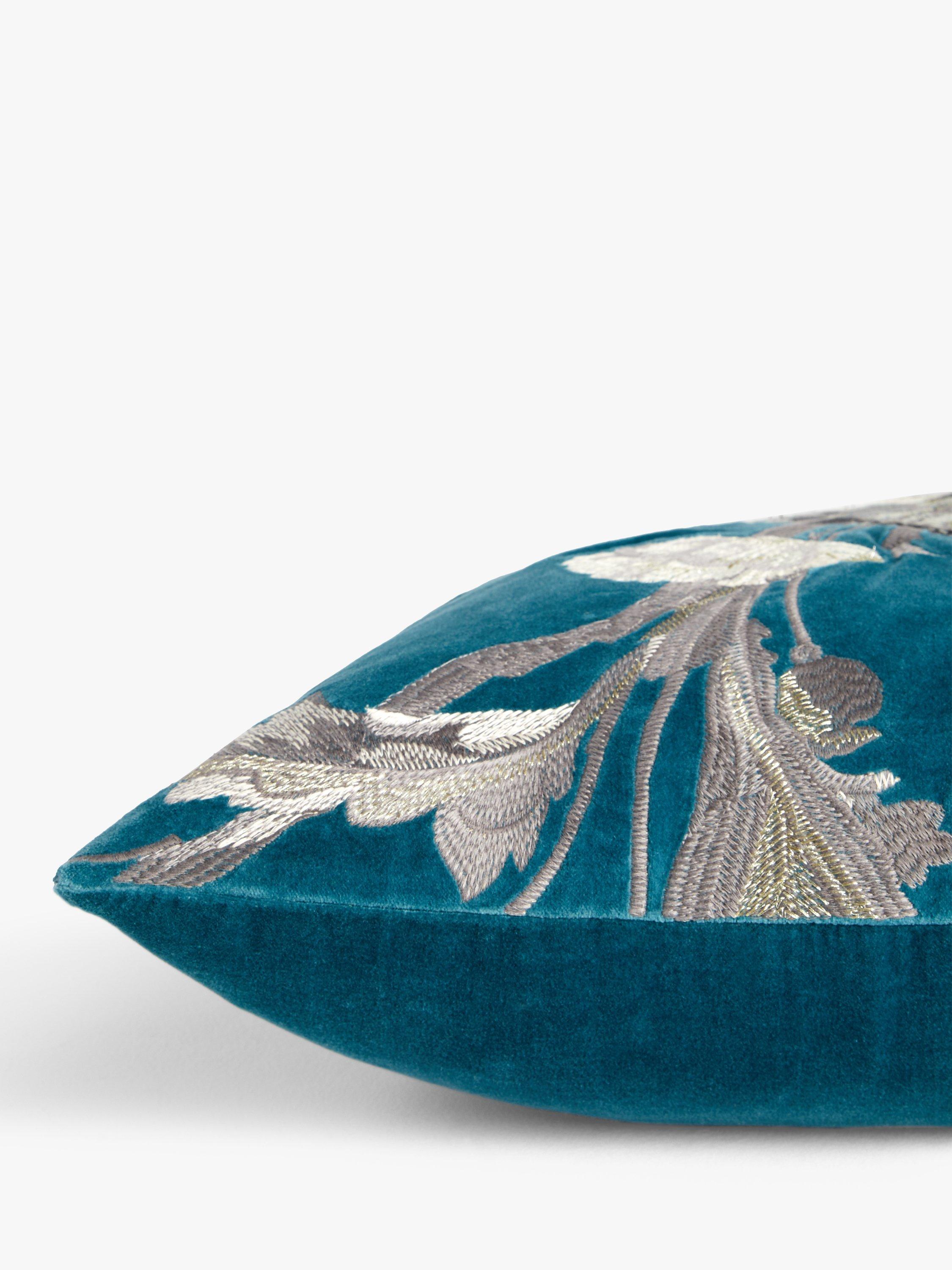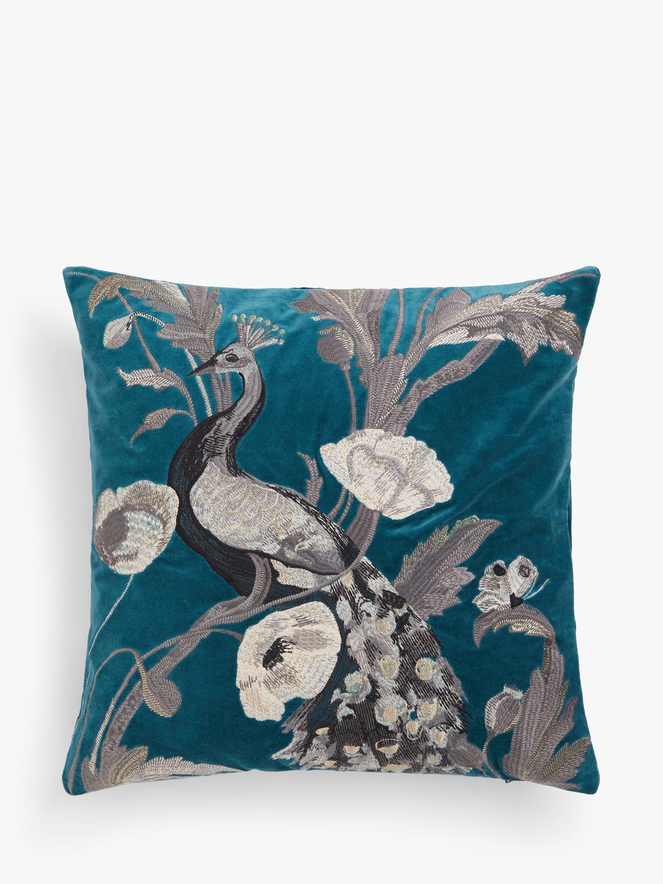 This exotic poppy and peacock design is machine embroidered onto luxurious cotton velvet fabric using accents of metallic gold thread.
