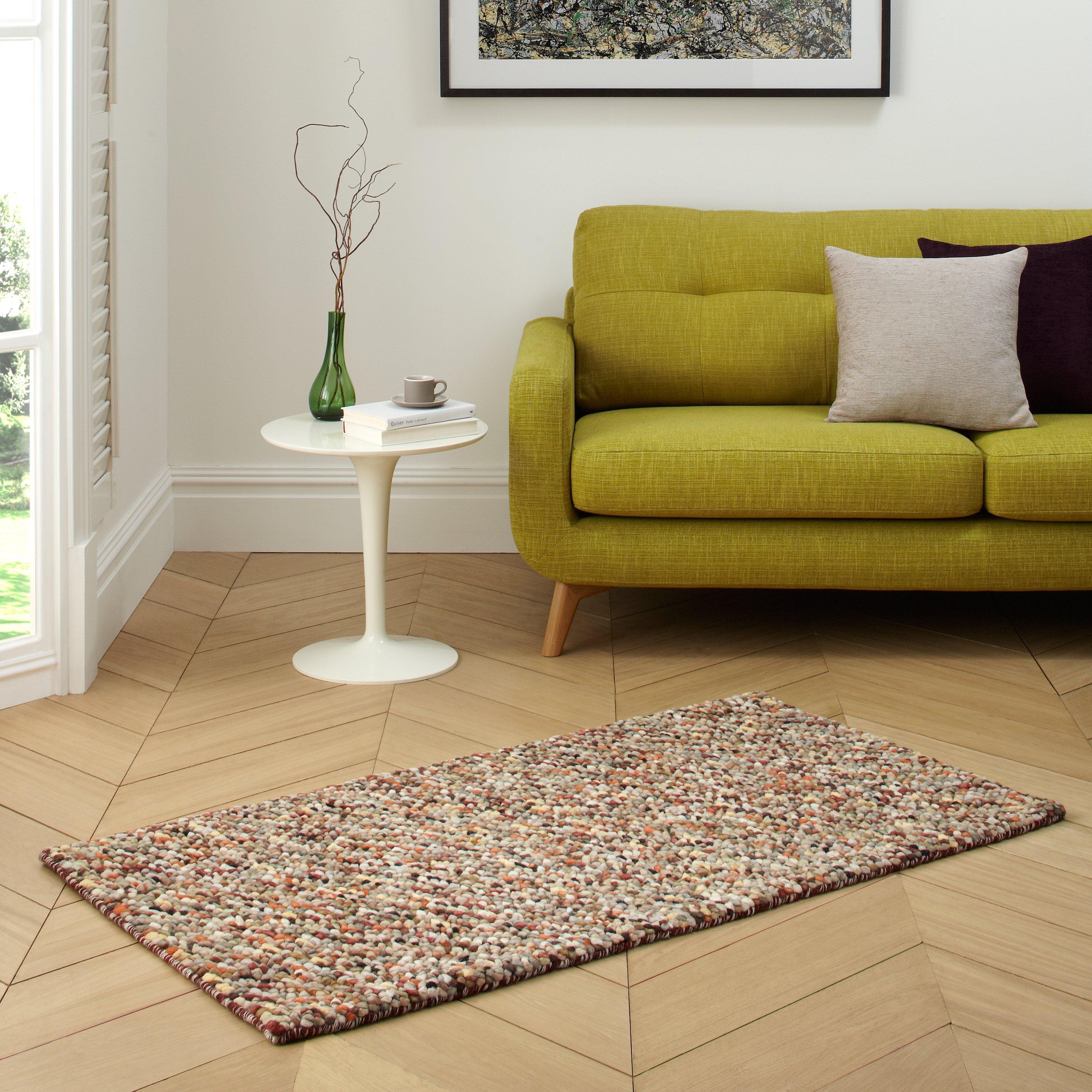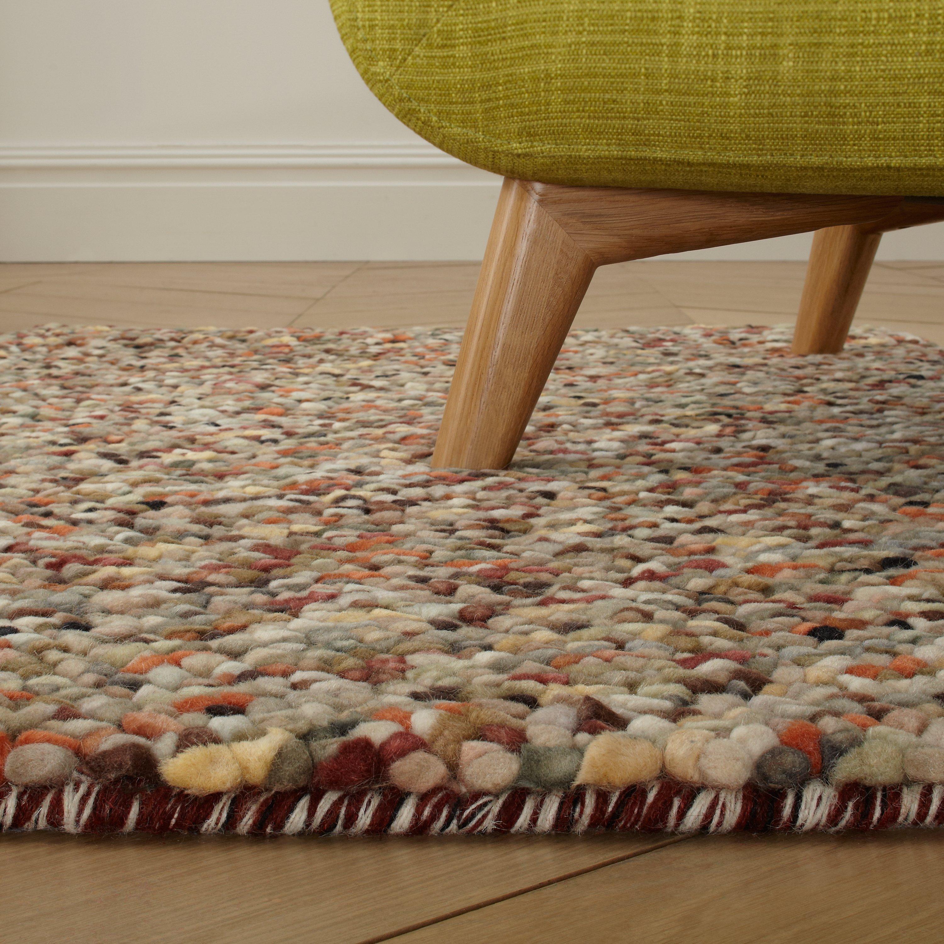 This decorative wool rug is bursting with colour and will make a striking addition to your home décor. It’s hand-knotted to create a unique bobbled texture and dappled with a variety of jewel-rich hues. Perfect for interiors with neutral tones to add a splash of colour or it can be paired with similar shades for a unique and eclectic look.