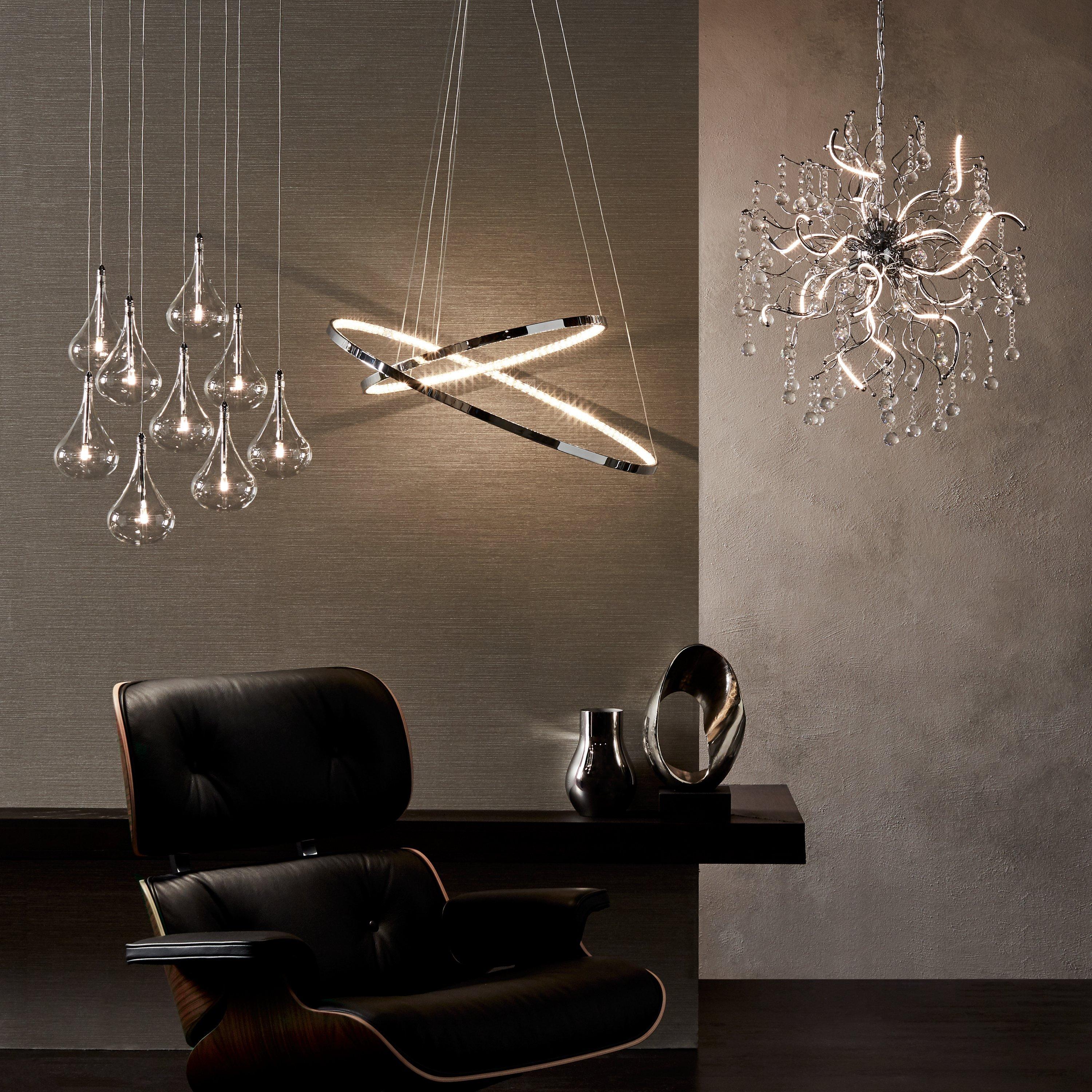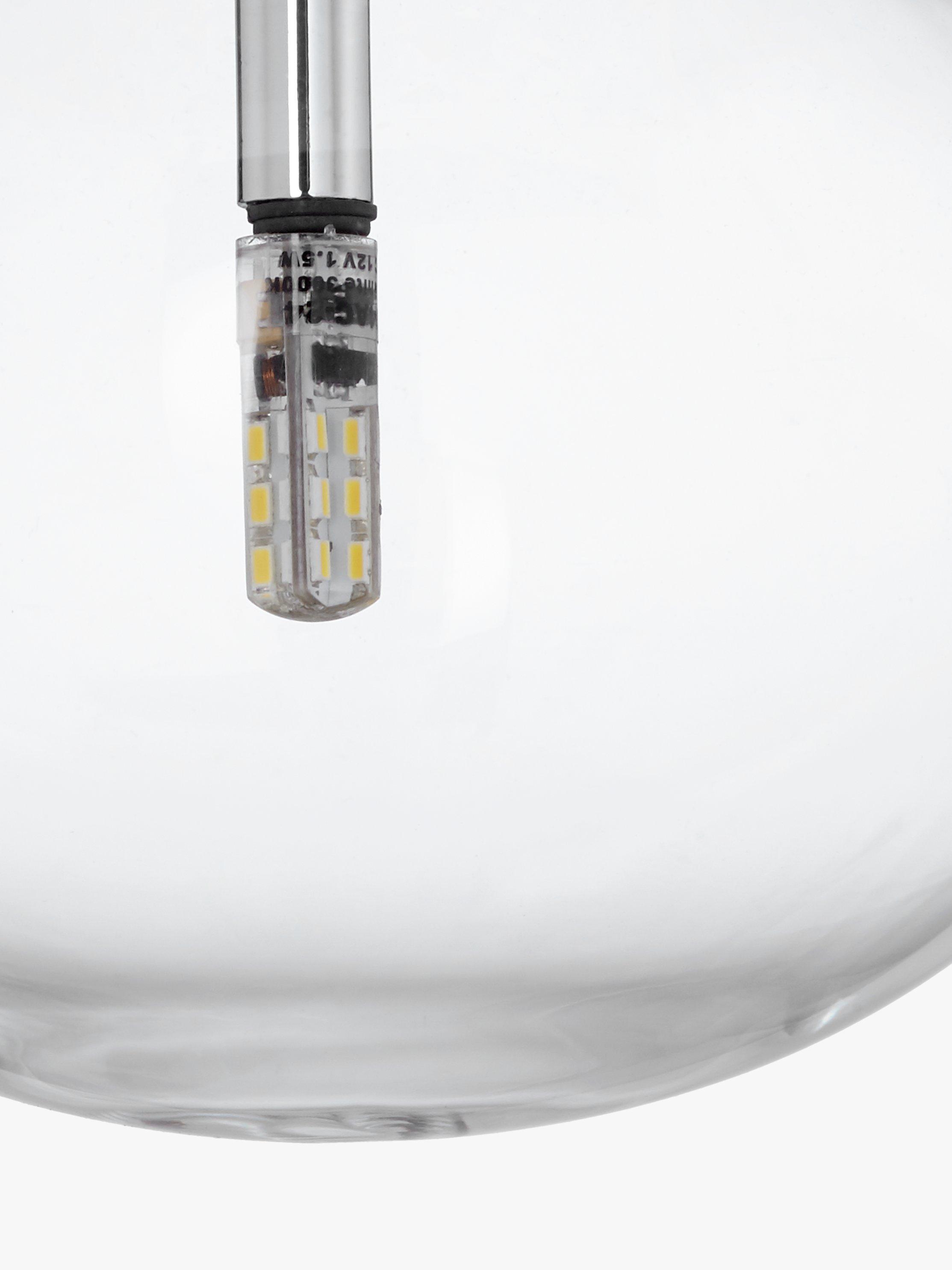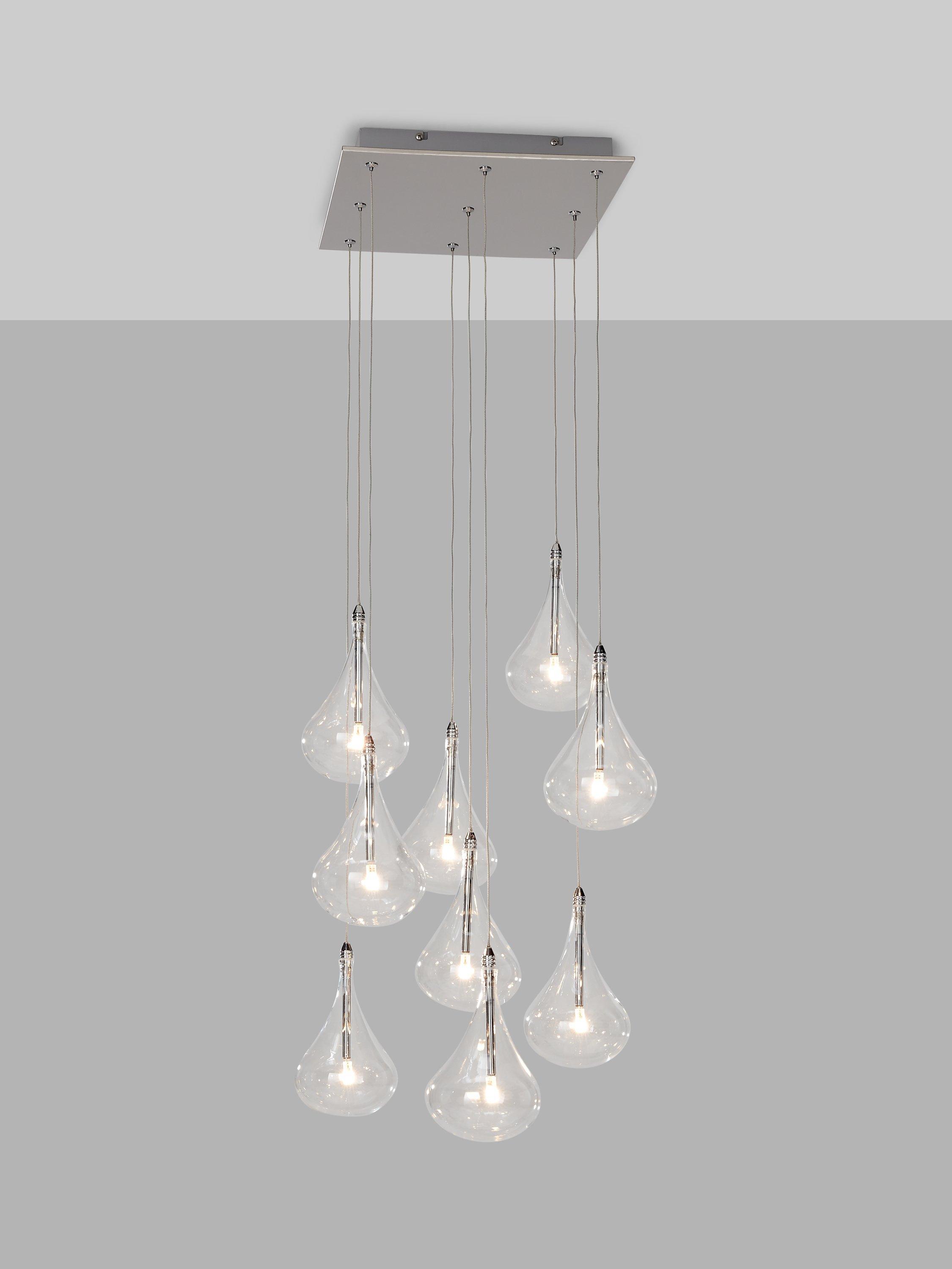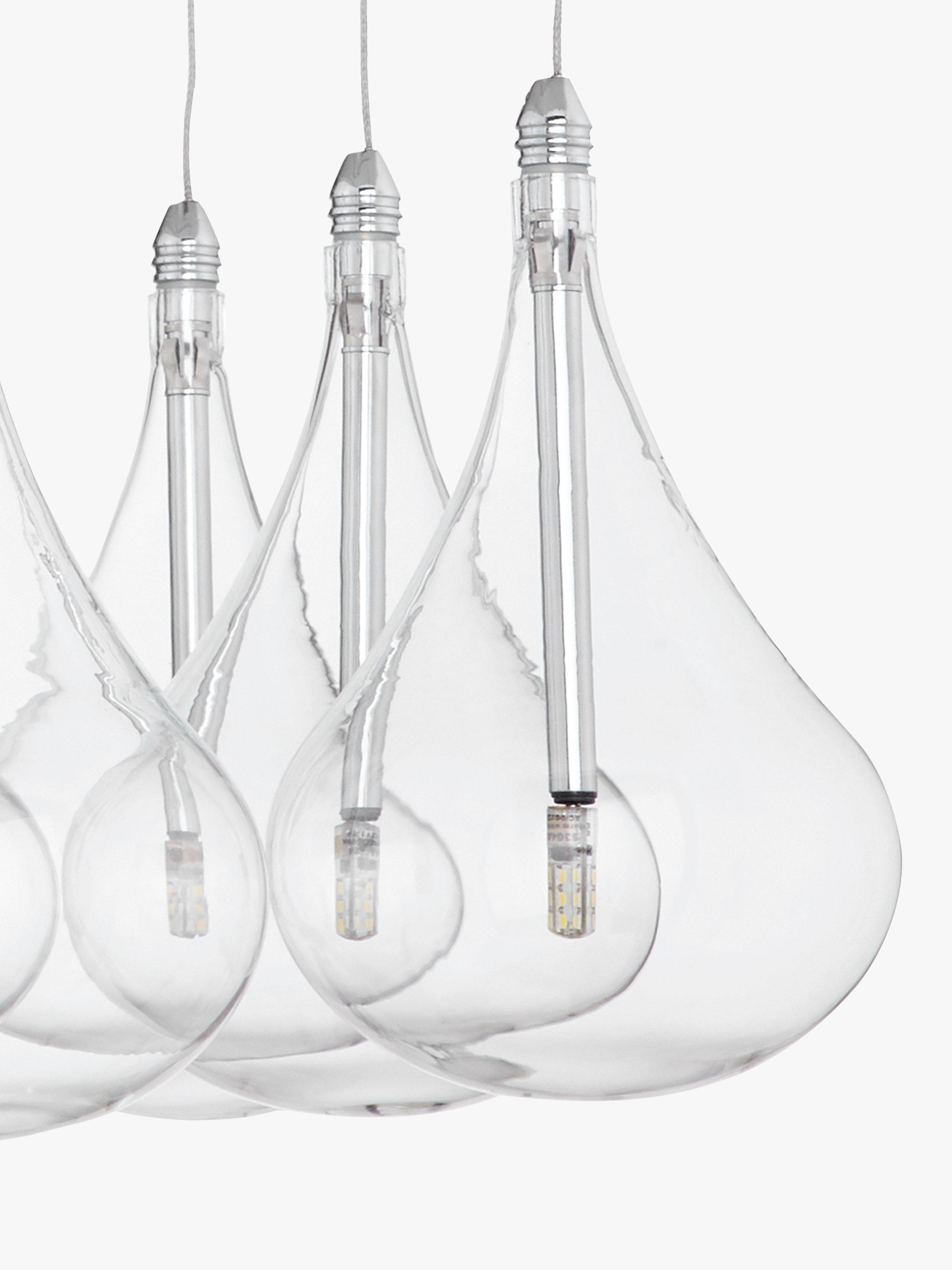 Transform your room with these exquisite glass bauble droplet LED lights. These light pendants hang on adjustable wires from a chrome-finished square ceiling plate.