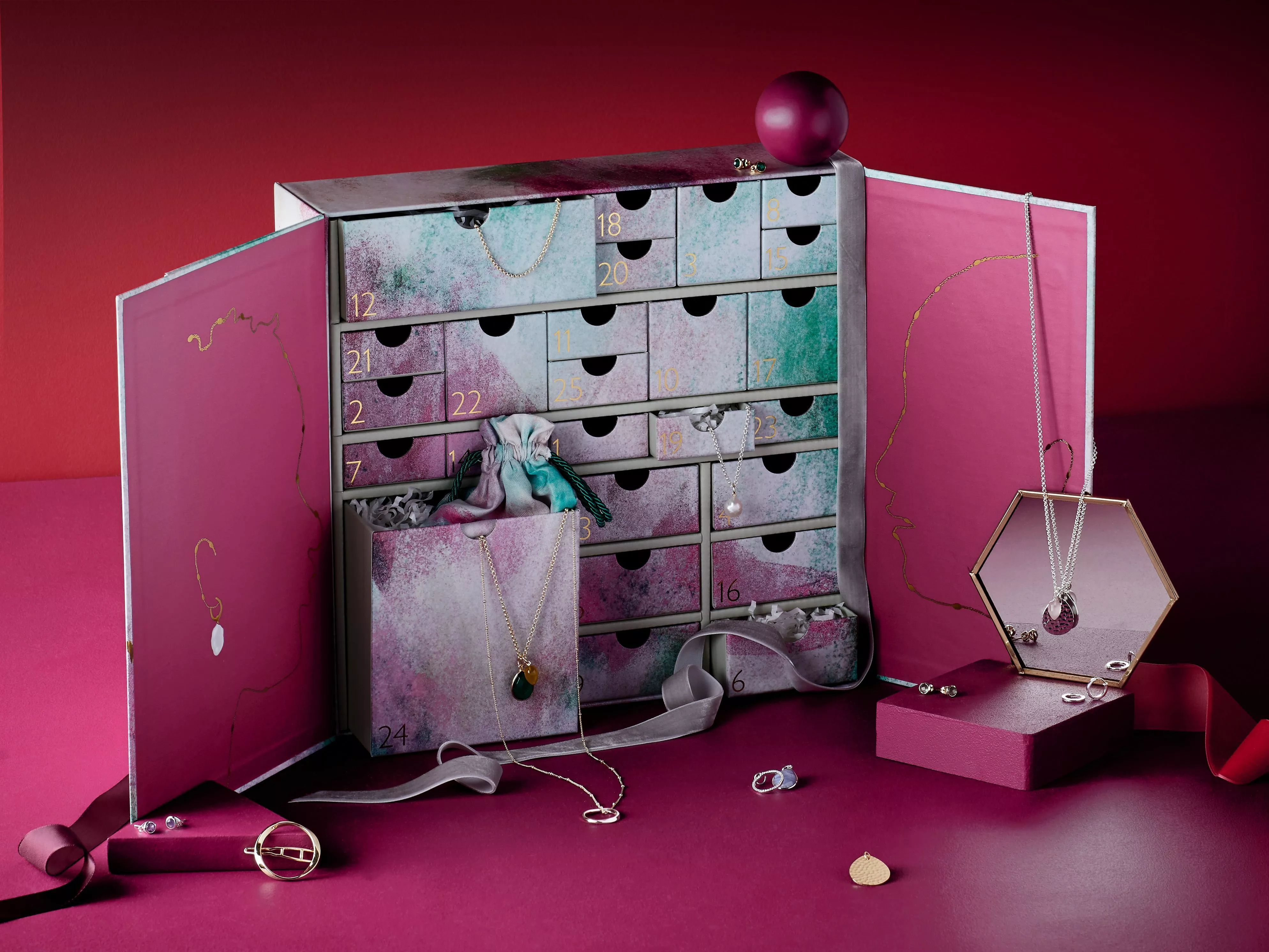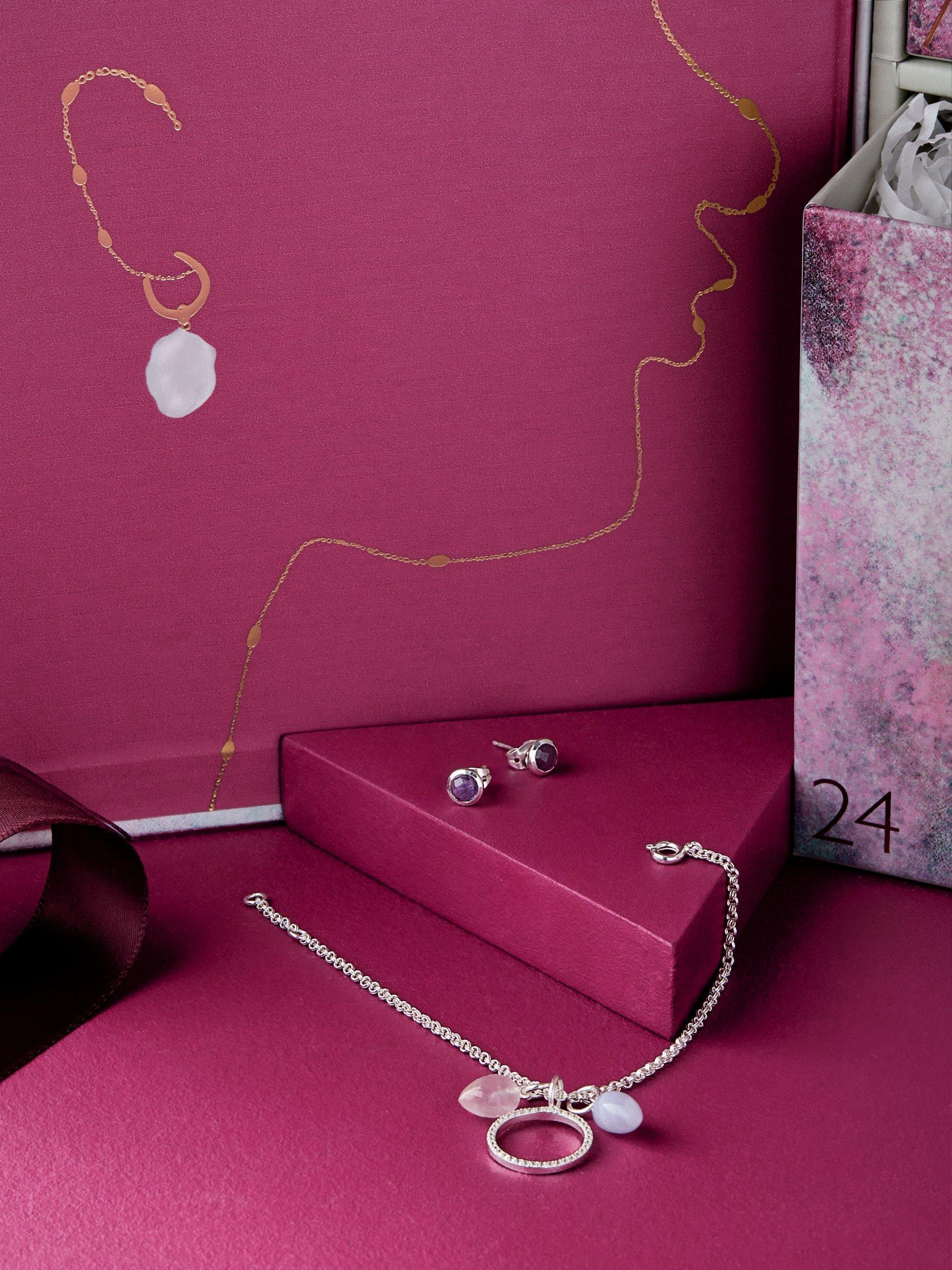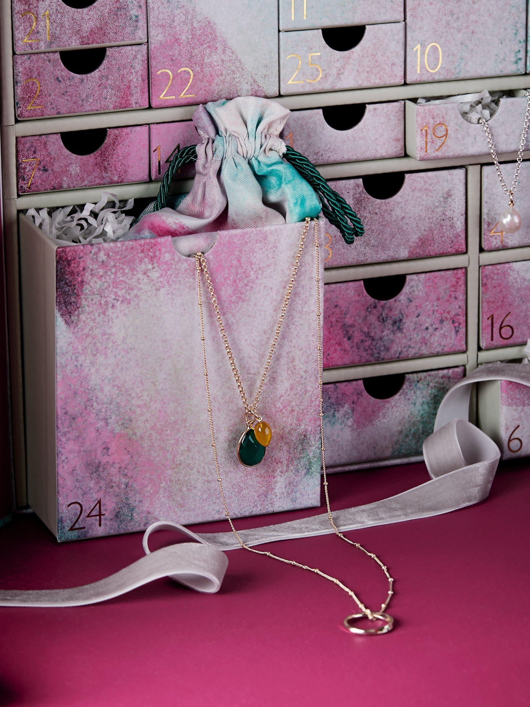 Our John Lewis & Partners 25 day jewellery advent calendar includes 22 items of gold and silver-plated jewellery that can be mixed and matched, layered and worn in a multitude of ways. The set also features 7 different semi-precious stones and other beautiful pendants which can be interchanged across the necklaces, earrings and bracelets, depending on your mood or to update your look.