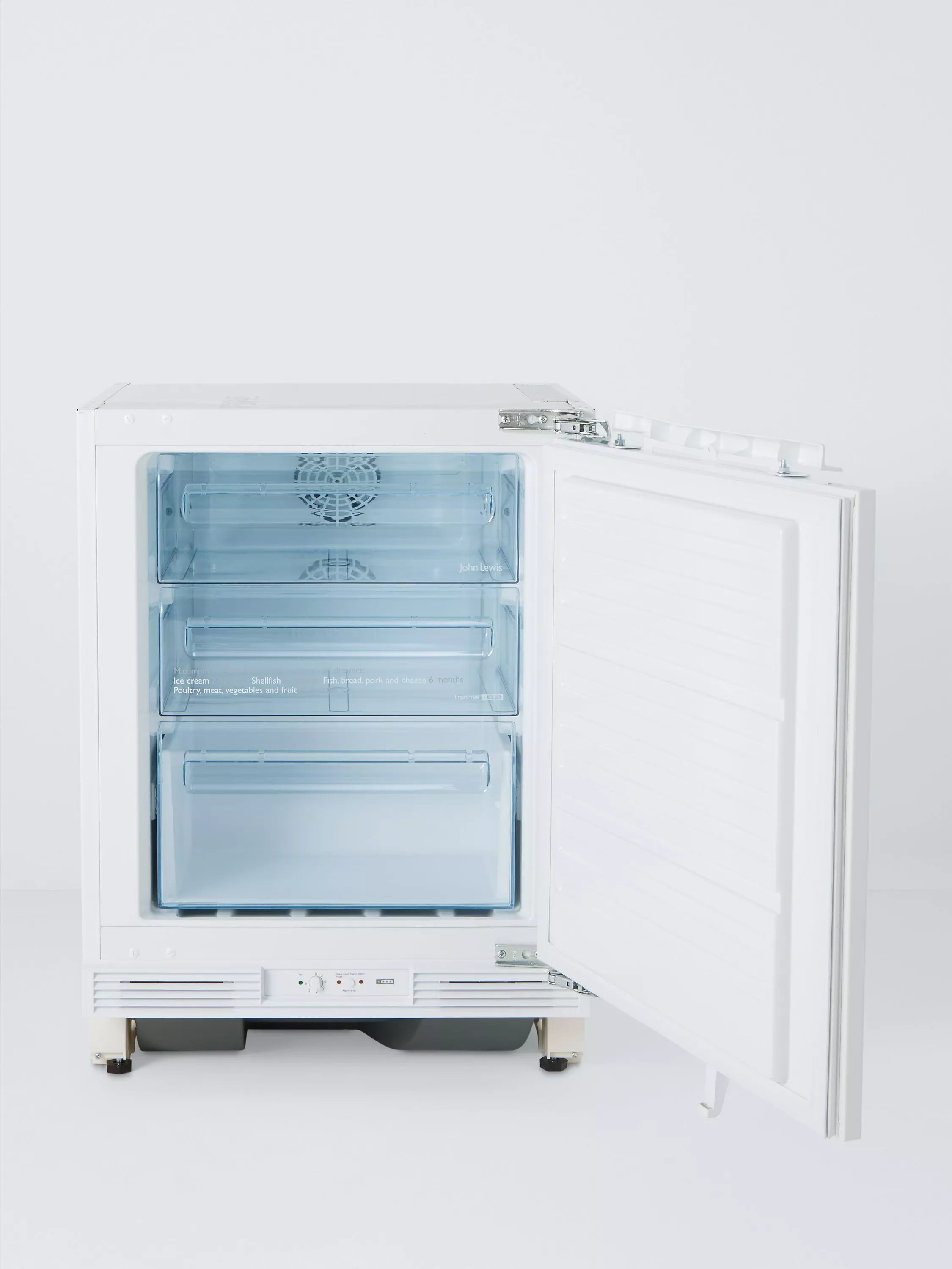 This freezer has 85L of capacity with full-width drawers; handy if you want to stay organised and keep meat, fish and veg separate from one another. And don't worry about having to dig around to find the ice cream after dinner; the transparent freezer drawers make locating groceries easy.